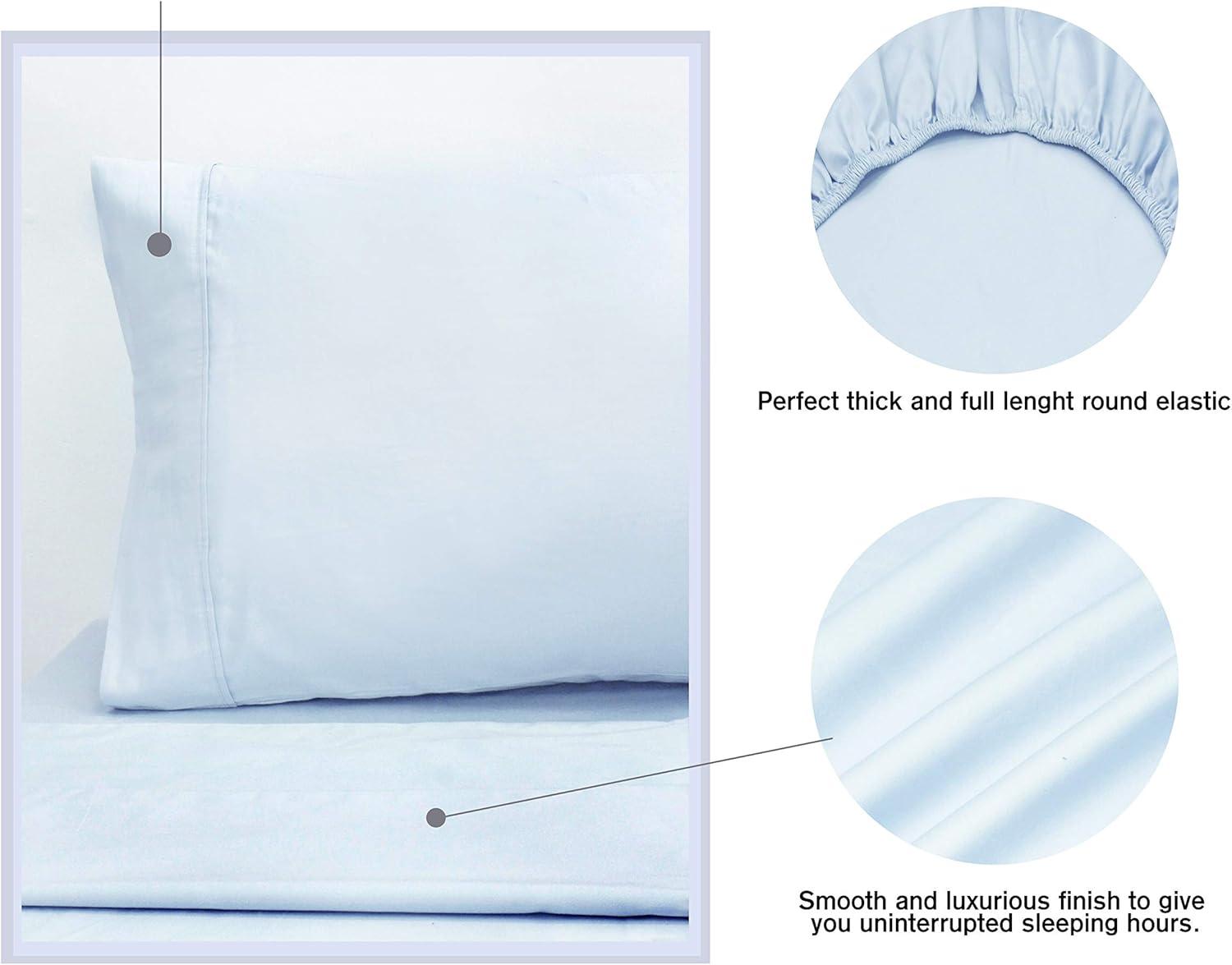 COTTON CRAFT Premium Sheet Set – King Size 400 Thread Count – Super Soft Cotton Deep Pocket – 4 Piece Set Includes Flat Sheet, Fitted Sheet and 2 Pillowcases – Grey(Light Blue)