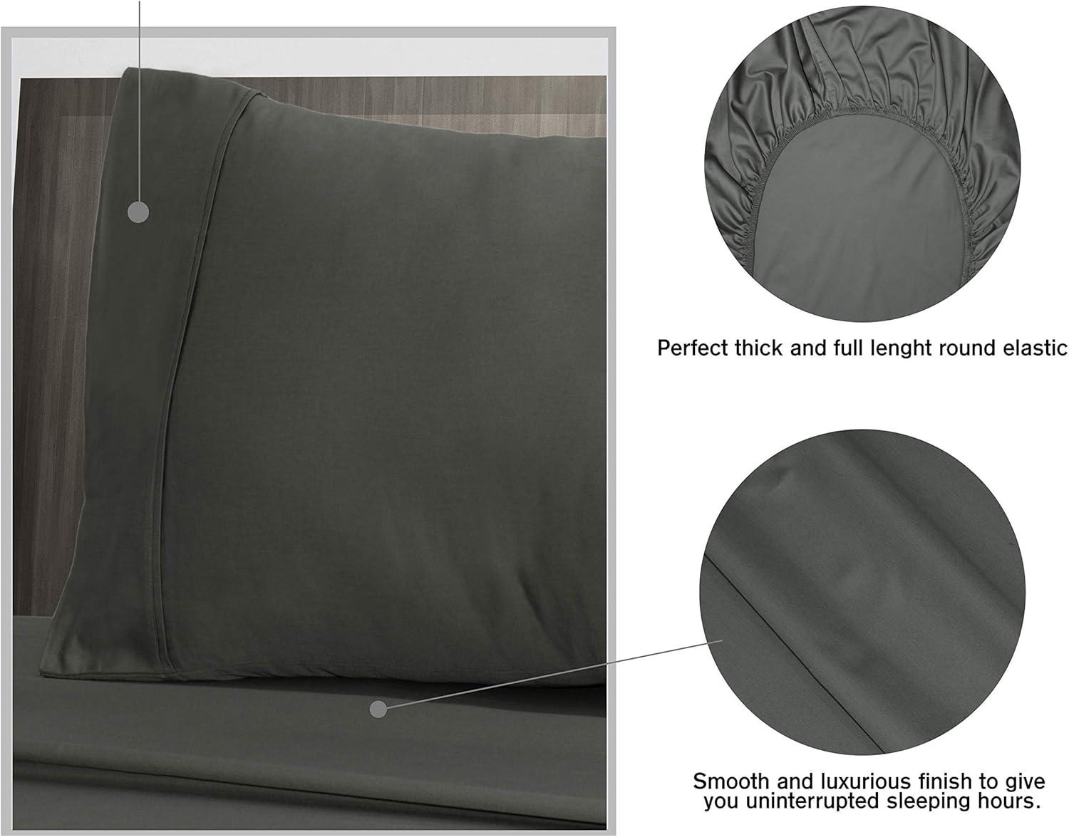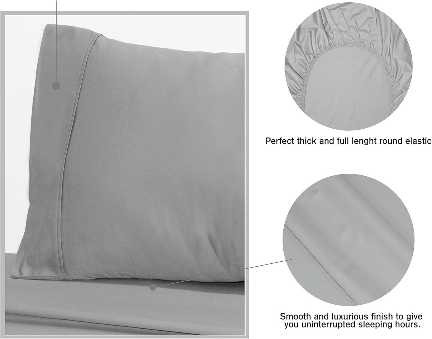 COTTON CRAFT Premium Sheet Set – King Size 400 Thread Count – Super Soft Cotton Deep Pocket – 4 Piece Set Includes Flat Sheet, Fitted Sheet and 2 Pillowcases – Grey(Grey)