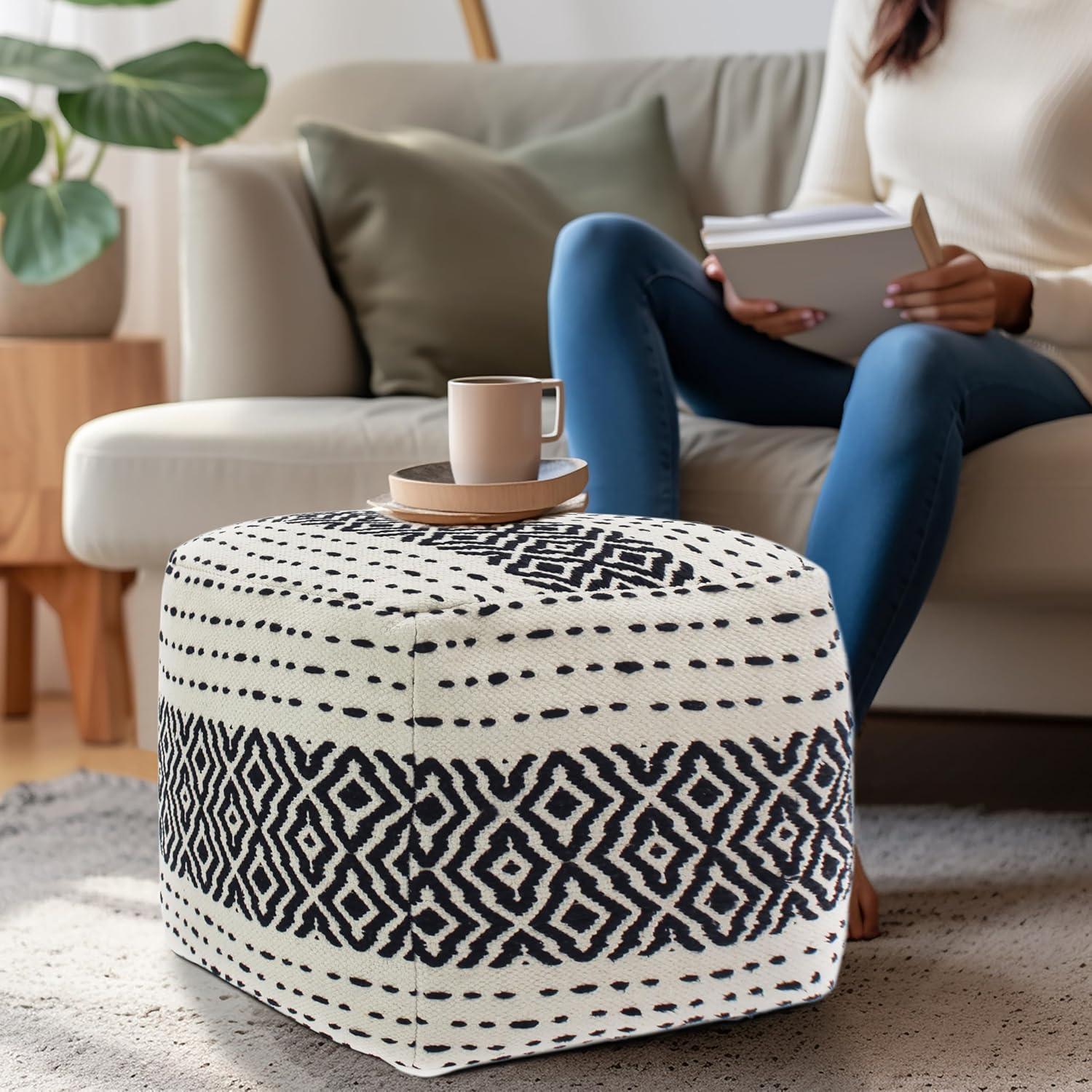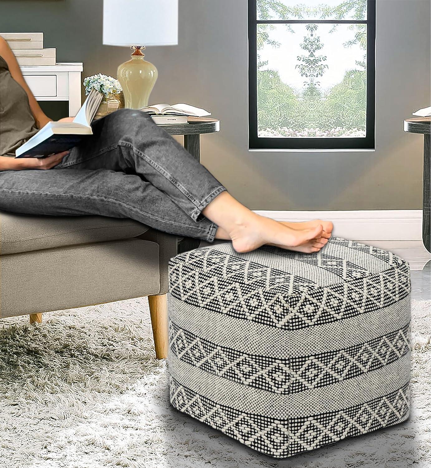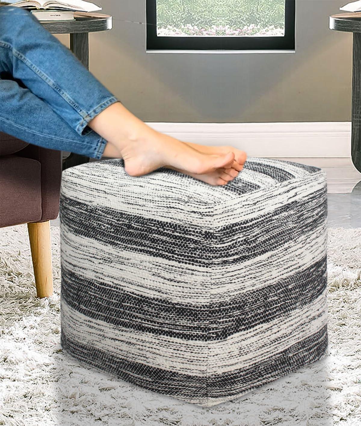 - Save up to 40% on COTTON CRAFT Hand Tufted Pouf - Bedroom Dorm Home Accent - Foot Stool - Ottoman - Bean Bag - Versatile Modern Comfortable Prefilled Woven Cotton Square Pouf Footrest - 16x16x16 inches - Ivory(Black Dhurrie) styles during our end-of-season sale.