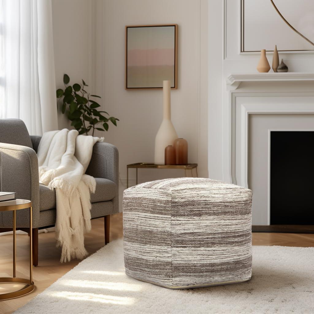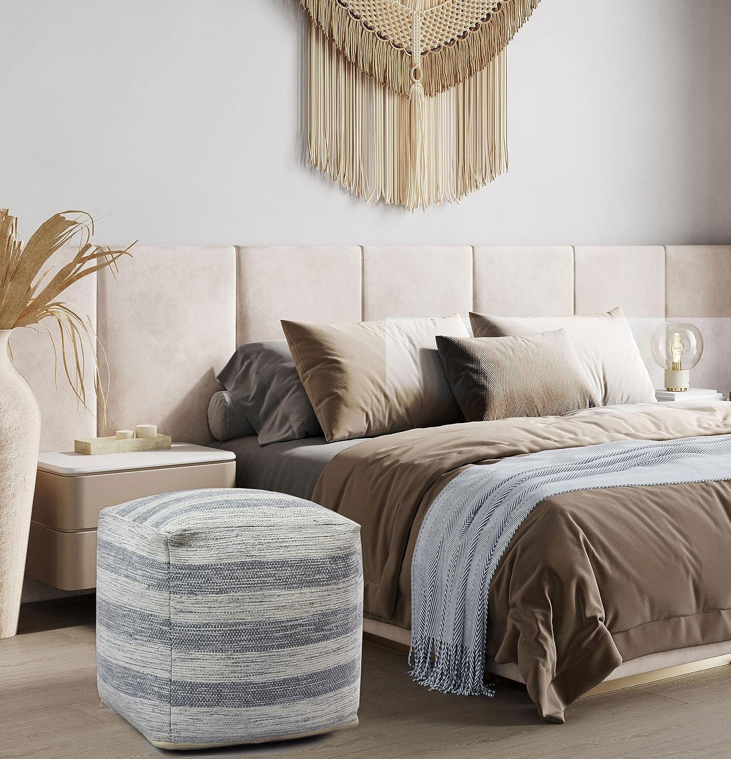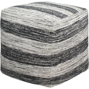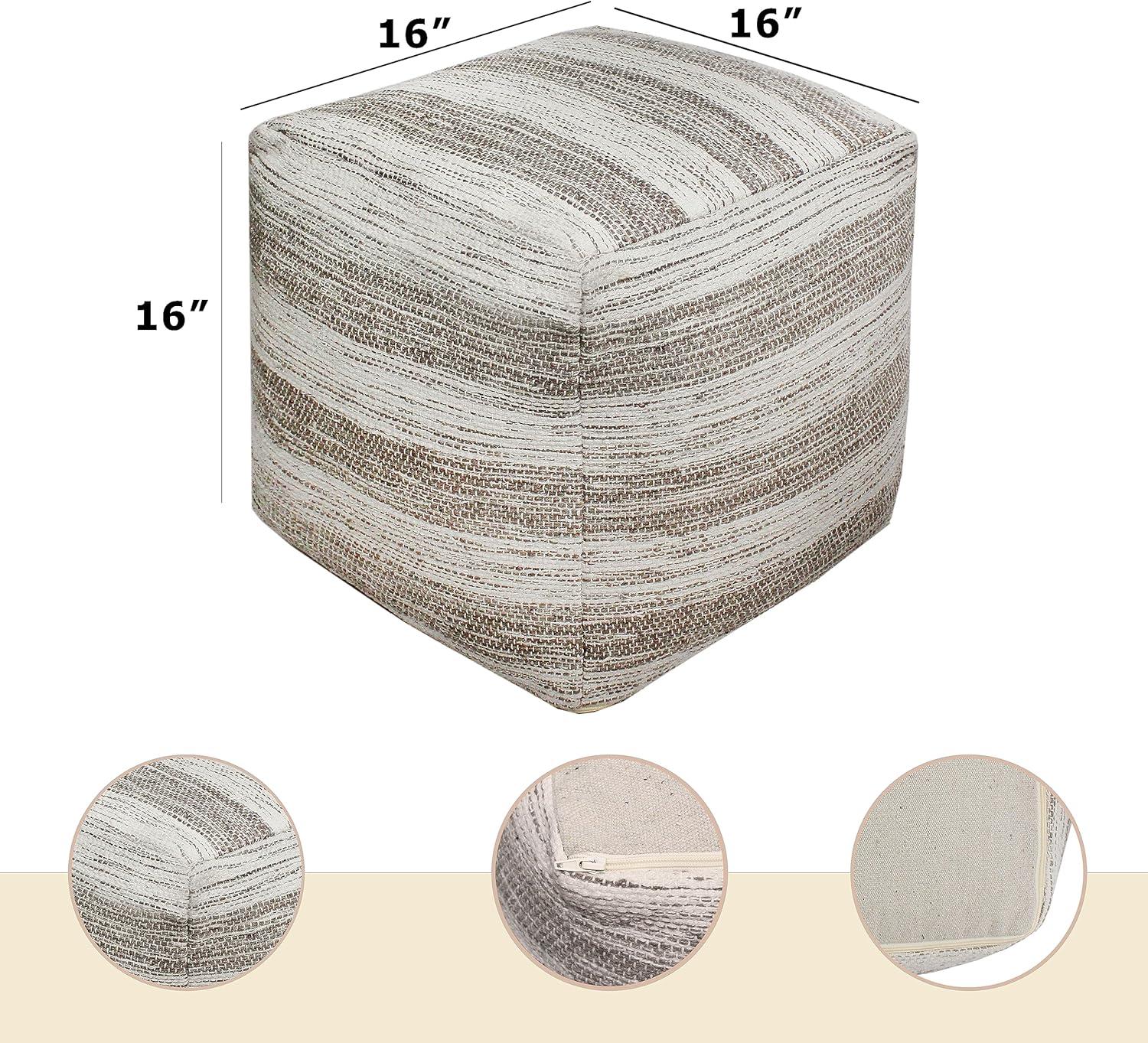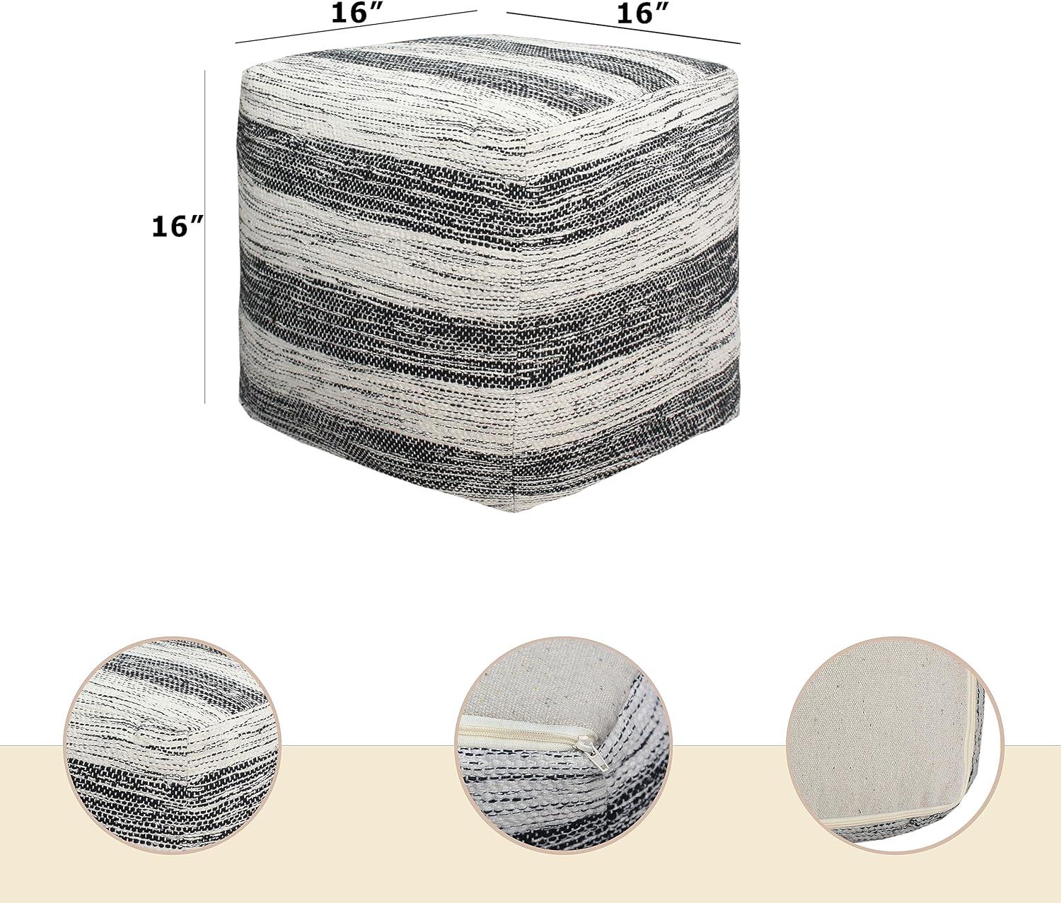 COTTON CRAFT Hand Tufted Pouf – Bedroom Dorm Home Accent – Foot Stool – Ottoman – Bean Bag – Versatile Modern Comfortable Prefilled Woven Cotton Square Pouf Footrest – 16x16x16 inches – Ivory(Ivory Black Stripe)