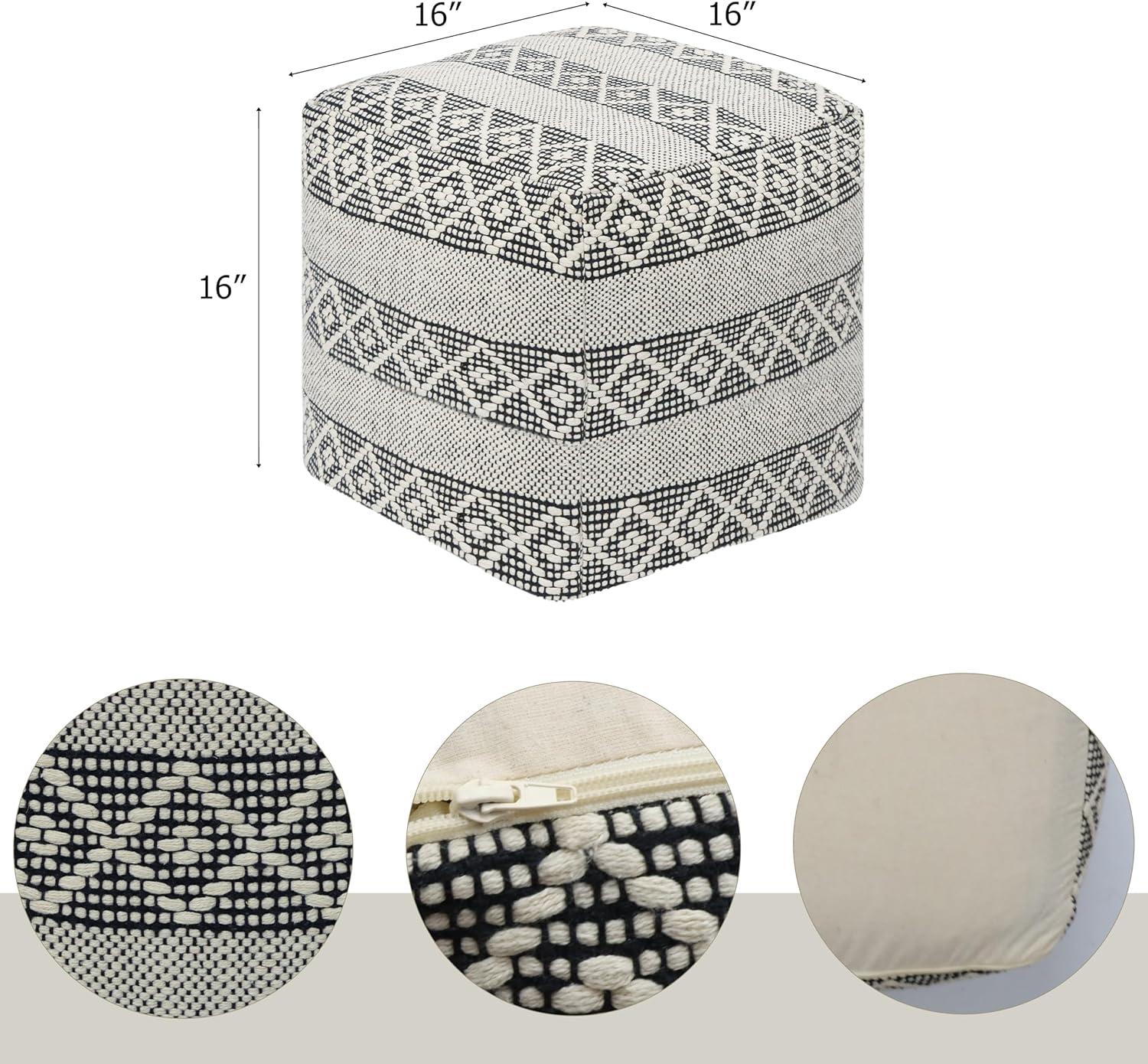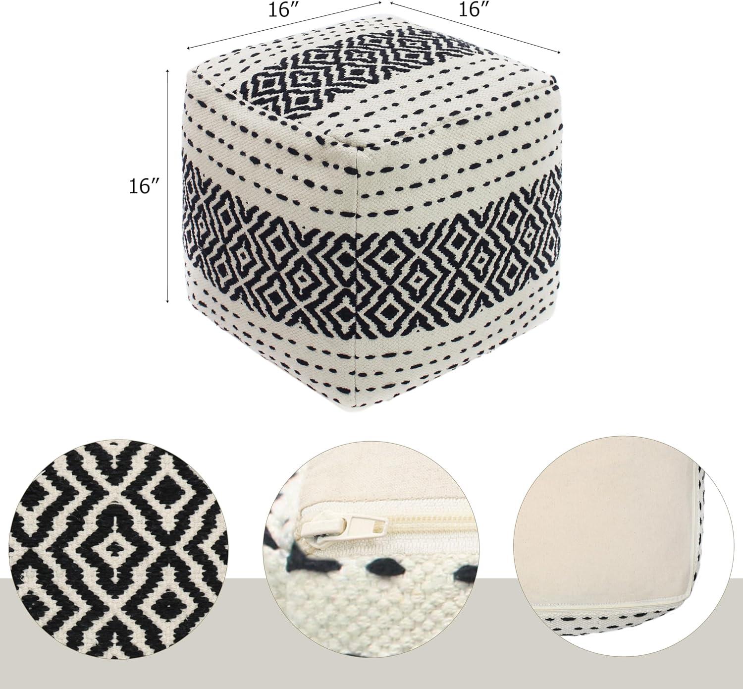 COTTON CRAFT Hand Tufted Pouf – Bedroom Dorm Home Accent – Foot Stool – Ottoman – Bean Bag – Versatile Modern Comfortable Prefilled Woven Cotton Square Pouf Footrest – 16x16x16 inches – Ivory(Ivory Black Aztec)