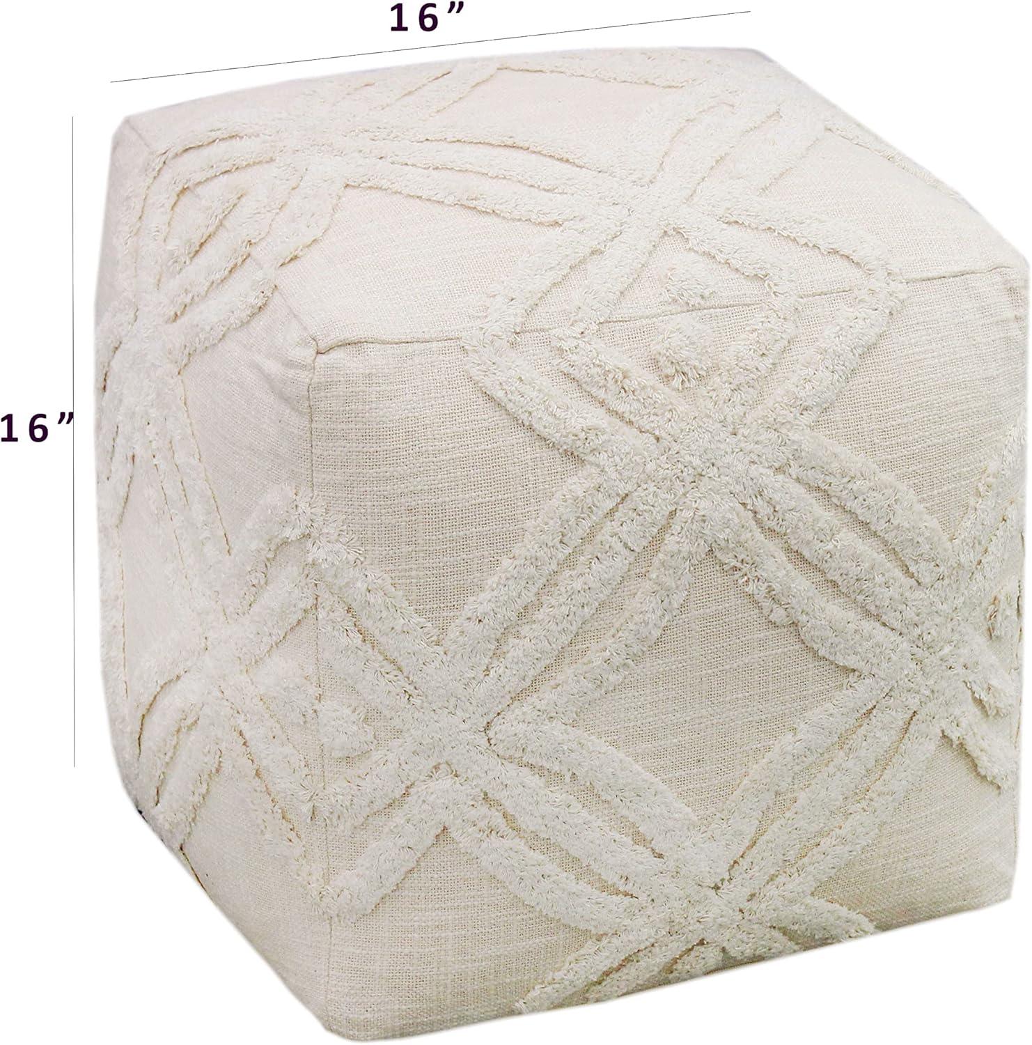 COTTON CRAFT Hand Tufted Pouf – Bedroom Dorm Home Accent – Foot Stool – Ottoman – Bean Bag – Versatile Modern Comfortable Prefilled Woven Cotton Square Pouf Footrest – 16x16x16 inches – Ivory(Ivory Tufted)