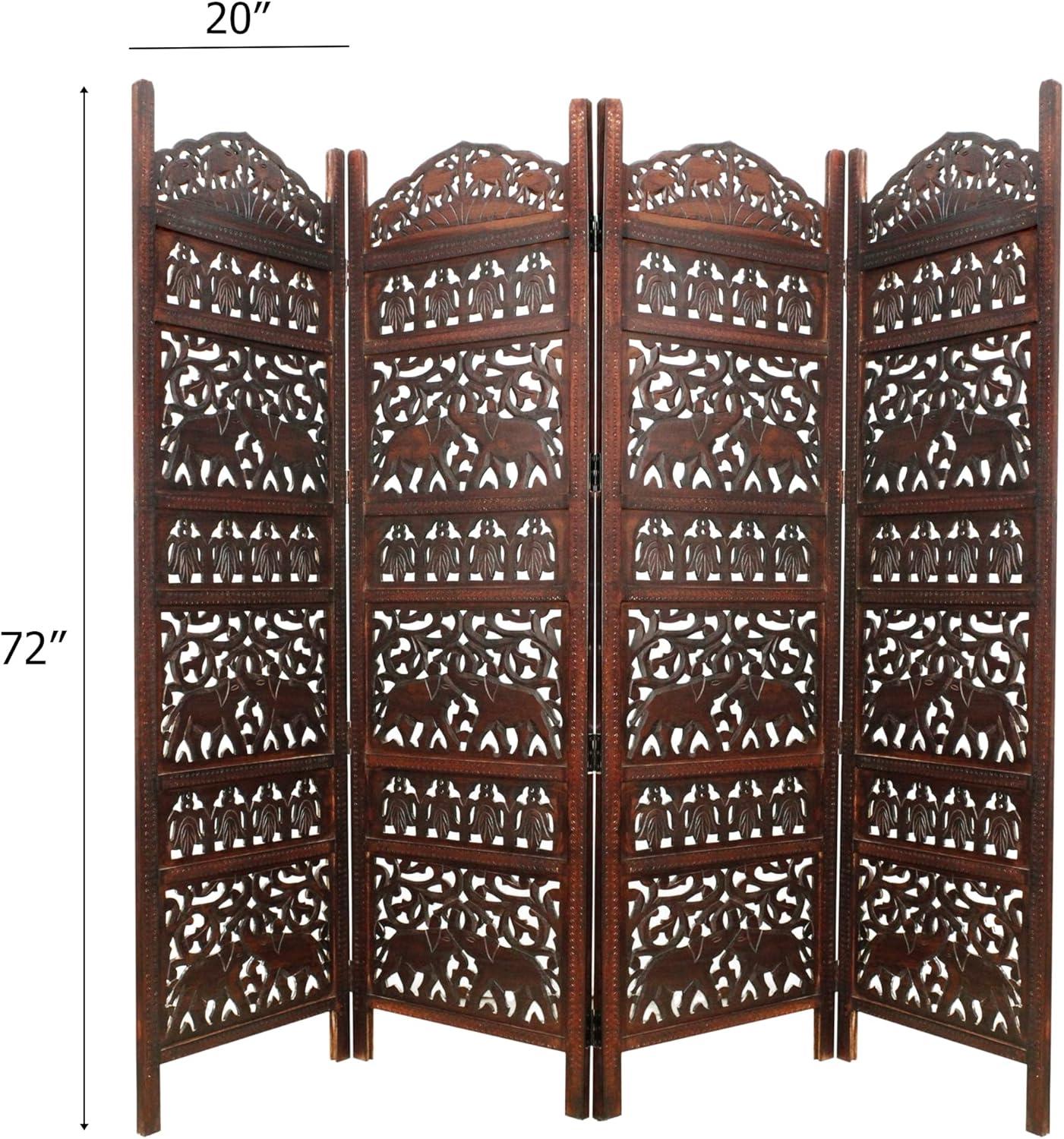 COTTON CRAFT Room Divider Wood Floor Screen – Kamal Antique White 4 Folding Panel 72×80 – Portable Reversible Functional Decorative Partition – Reversible Boho Freestanding Small Spaces Privacy(Hathi – Walnut Brown)