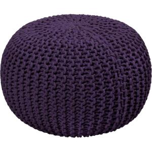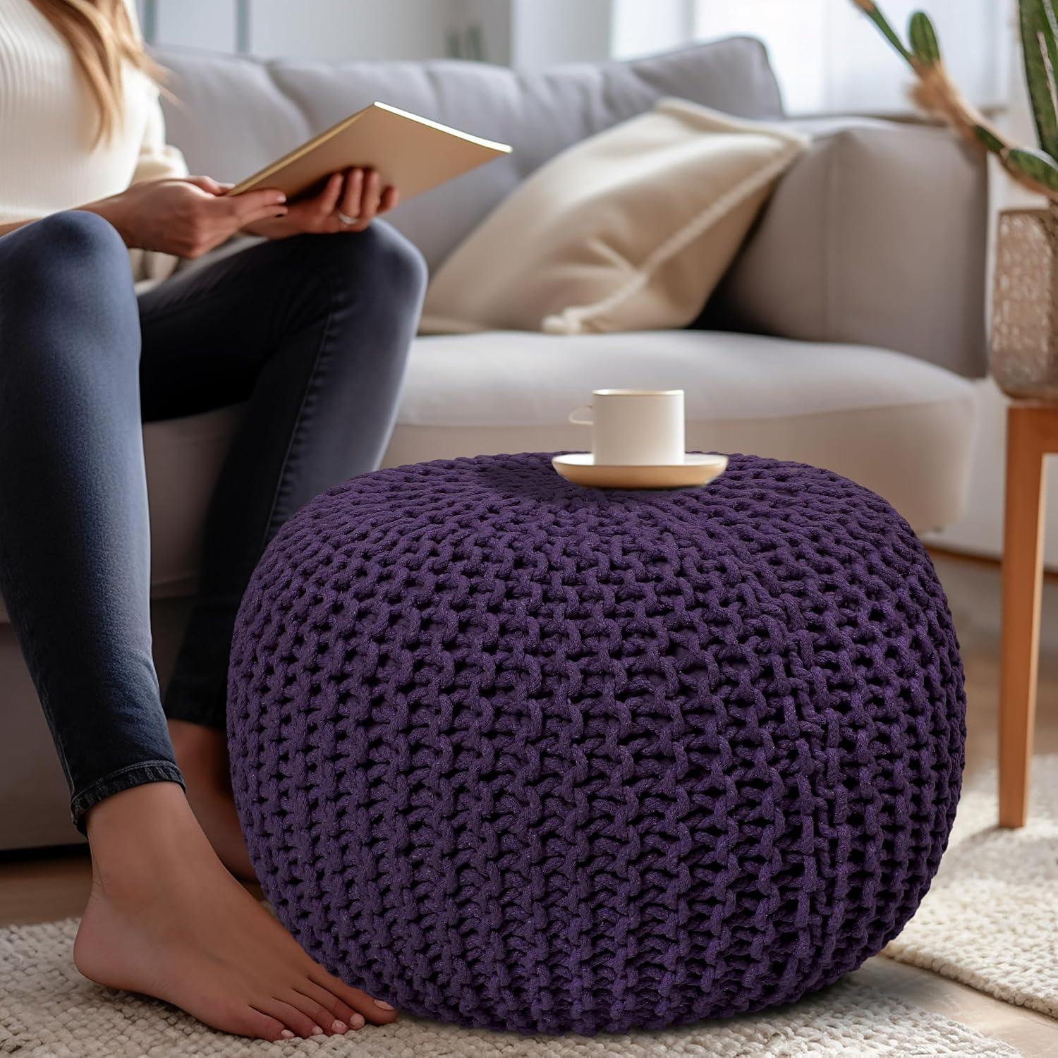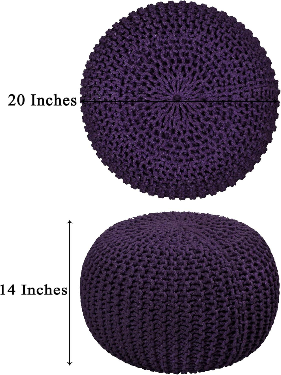 COTTON CRAFT Round Dori Pouf – Cotton Braid Cord Cable Knitted Ottoman – Foot Stool Footrest Floor Pouf Accent Furniture Bean Bag – Living Room Dorm Décor – 20.5 Dia x 13.5 High – Round Ivory Cream(Deep Plum – Round)