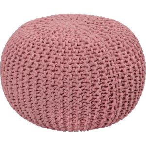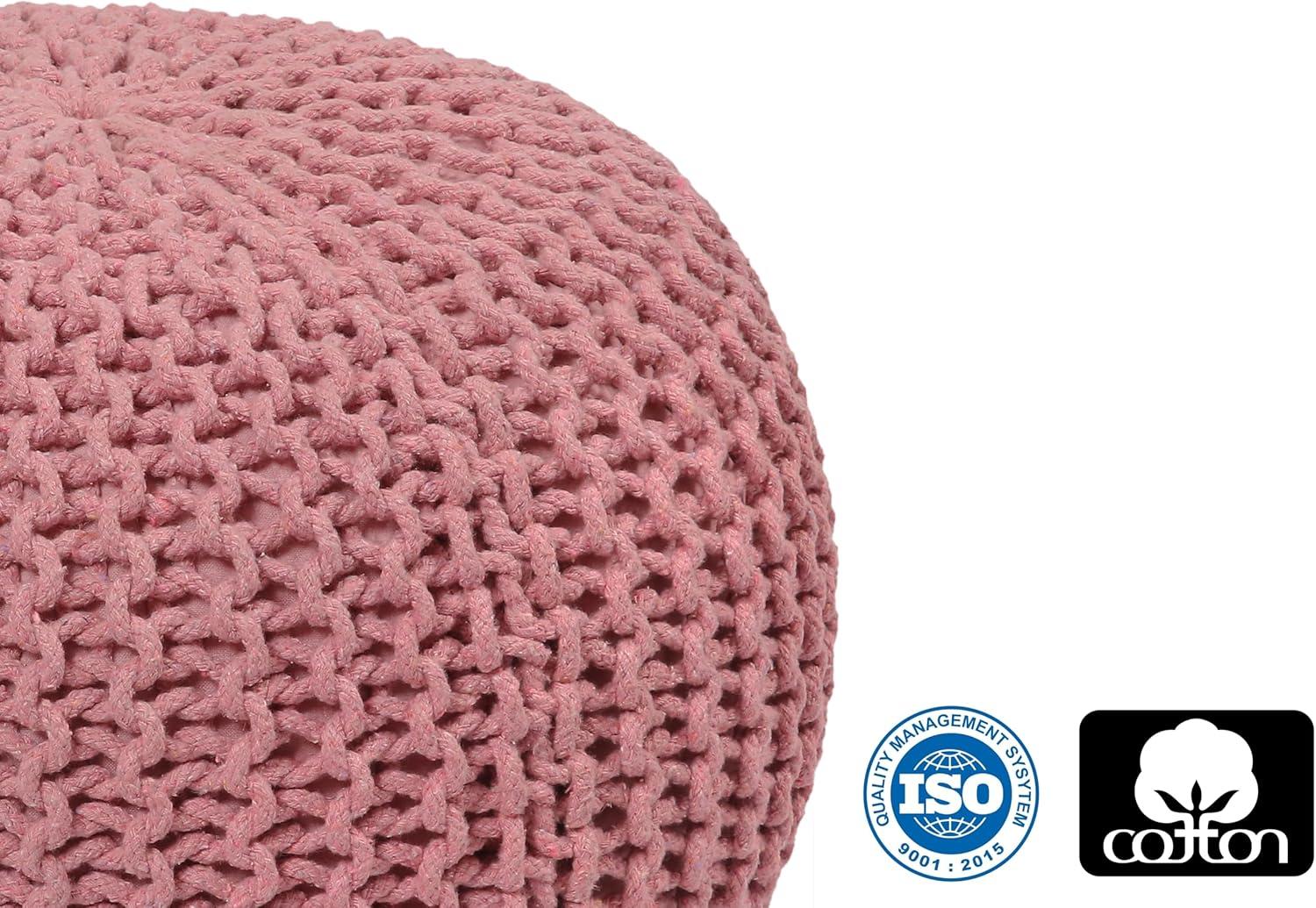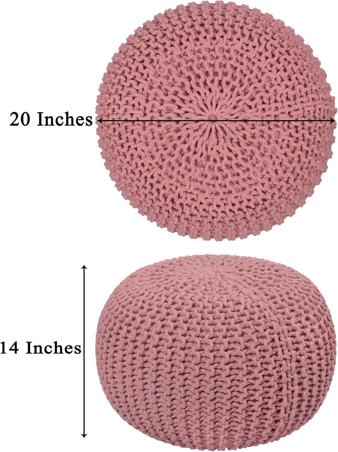 COTTON CRAFT Round Dori Pouf – Cotton Braid Cord Cable Knitted Ottoman – Foot Stool Footrest Floor Pouf Accent Furniture Bean Bag – Living Room Dorm Décor – 20.5 Dia x 13.5 High – Round Ivory Cream(Blush Pink – Round)