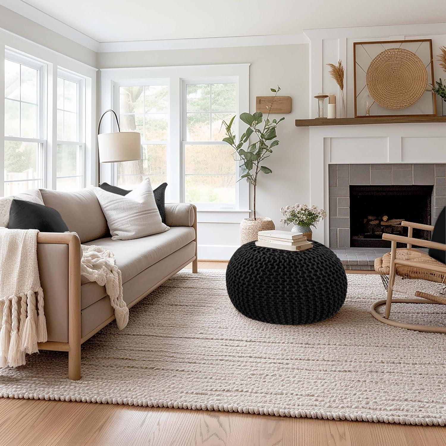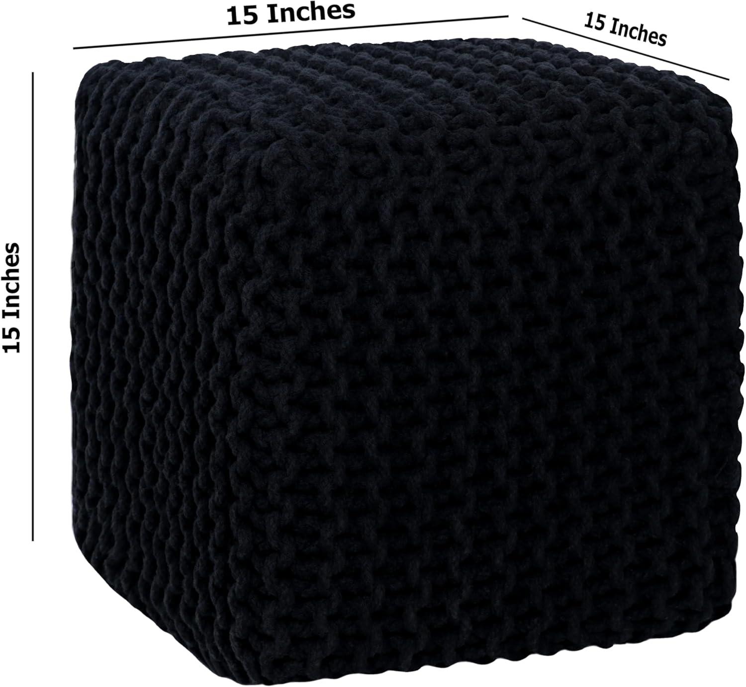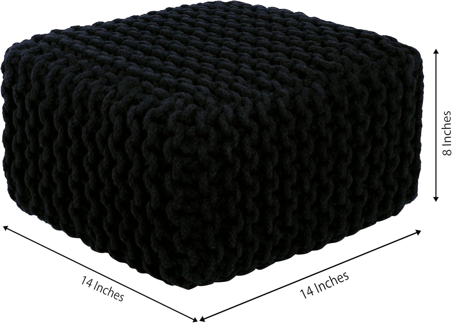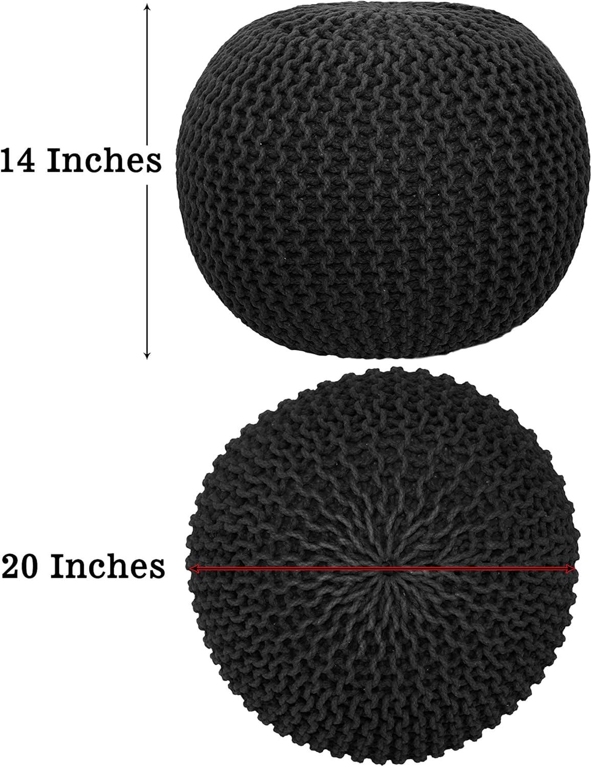 COTTON CRAFT Round Dori Pouf – Cotton Braid Cord Cable Knitted Ottoman – Foot Stool Footrest Floor Pouf Accent Furniture Bean Bag – Living Room Dorm Décor – 20.5 Dia x 13.5 High – Round Ivory Cream(Black – Cube Large)
