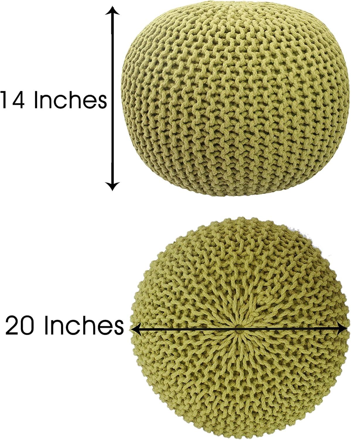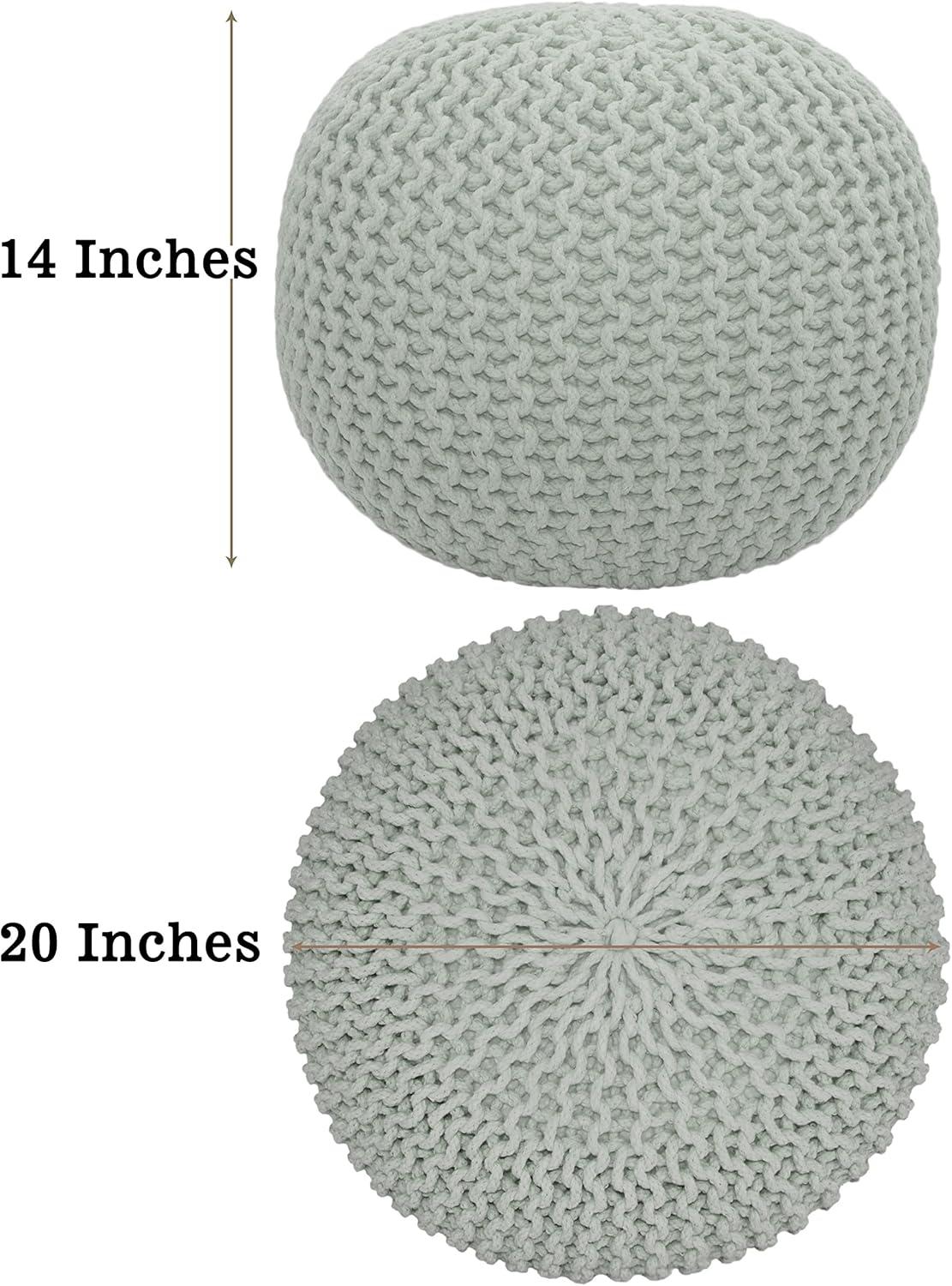 COTTON CRAFT Round Dori Pouf – Cotton Braid Cord Cable Knitted Ottoman – Foot Stool Footrest Floor Pouf Accent Furniture Bean Bag – Living Room Dorm Décor – 20.5 Dia x 13.5 High – Round Ivory Cream(Green – Round)