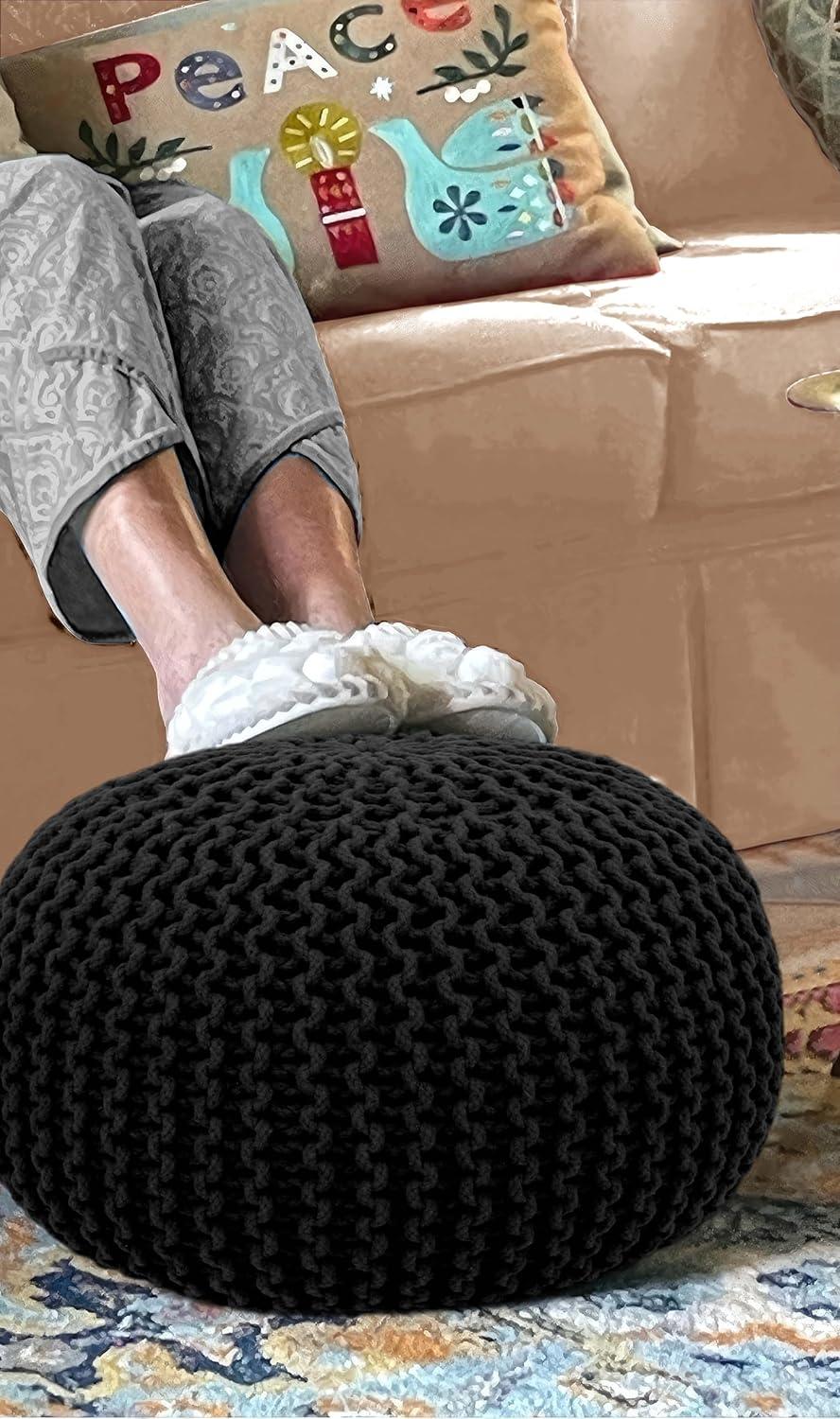 - Don't miss out on our limited-time offer: get a free {accessory} with your purchase of COTTON CRAFT Round Dori Pouf - Cotton Braid Cord Cable Knitted Ottoman - Foot Stool Footrest Floor Pouf Accent Furniture Bean Bag - Living Room Dorm Décor - 20.5 Dia x 13.5 High - Round Ivory Cream(Blue - Round).