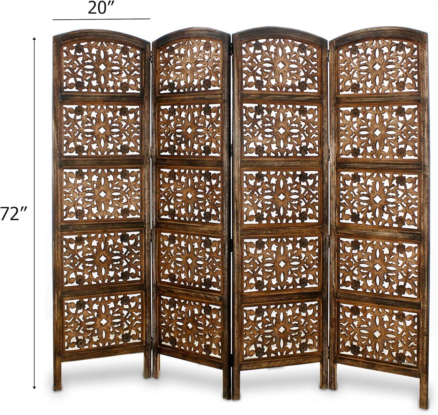 COTTON CRAFT Room Divider Wood Floor Screen – Kamal Antique White 4 Folding Panel 72×80 – Portable Reversible Functional Decorative Partition – Reversible Boho Freestanding Small Spaces Privacy(Mahanadi – Antique Brown)