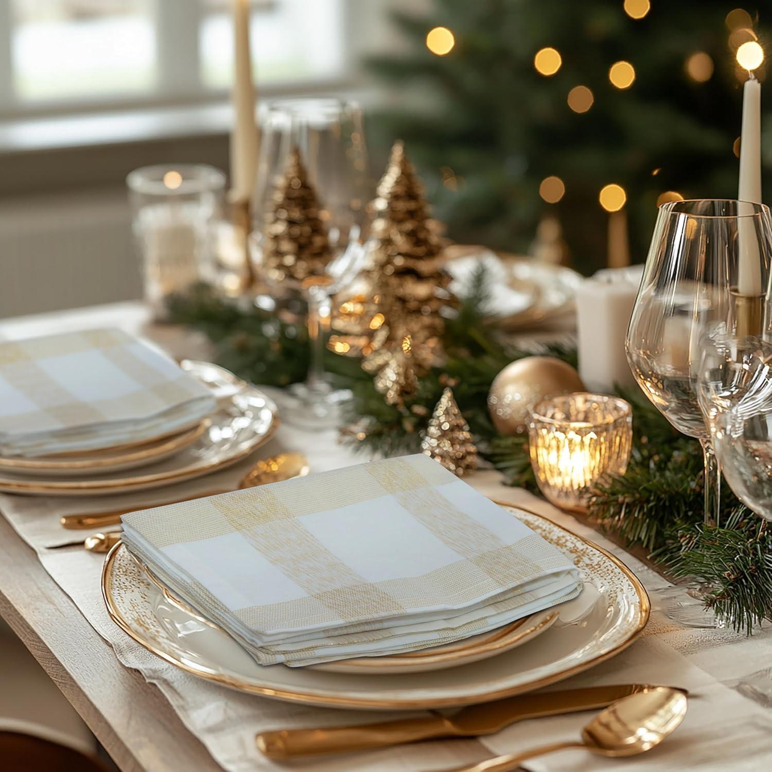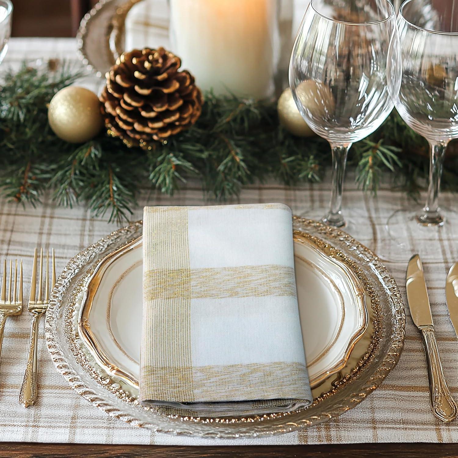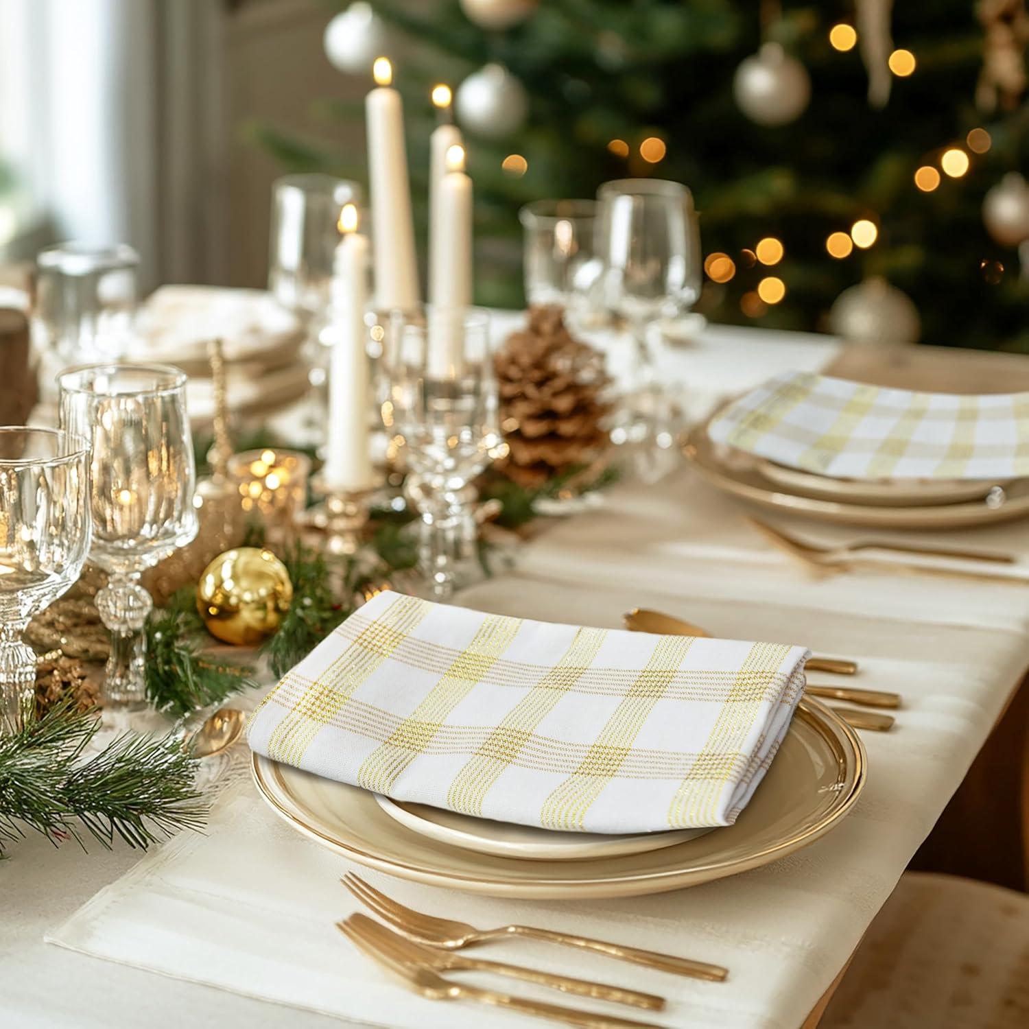 COTTON CRAFT Christmas Red Napkins -12 Pack 100% Cotton Dinner Napkins – All Year Xmas Fall Thanksgiving Celebration Party Gift Holiday Table Napkin – Soft Washable Reusable Cloth Napkin -18×18(White Gold Large Plaid)