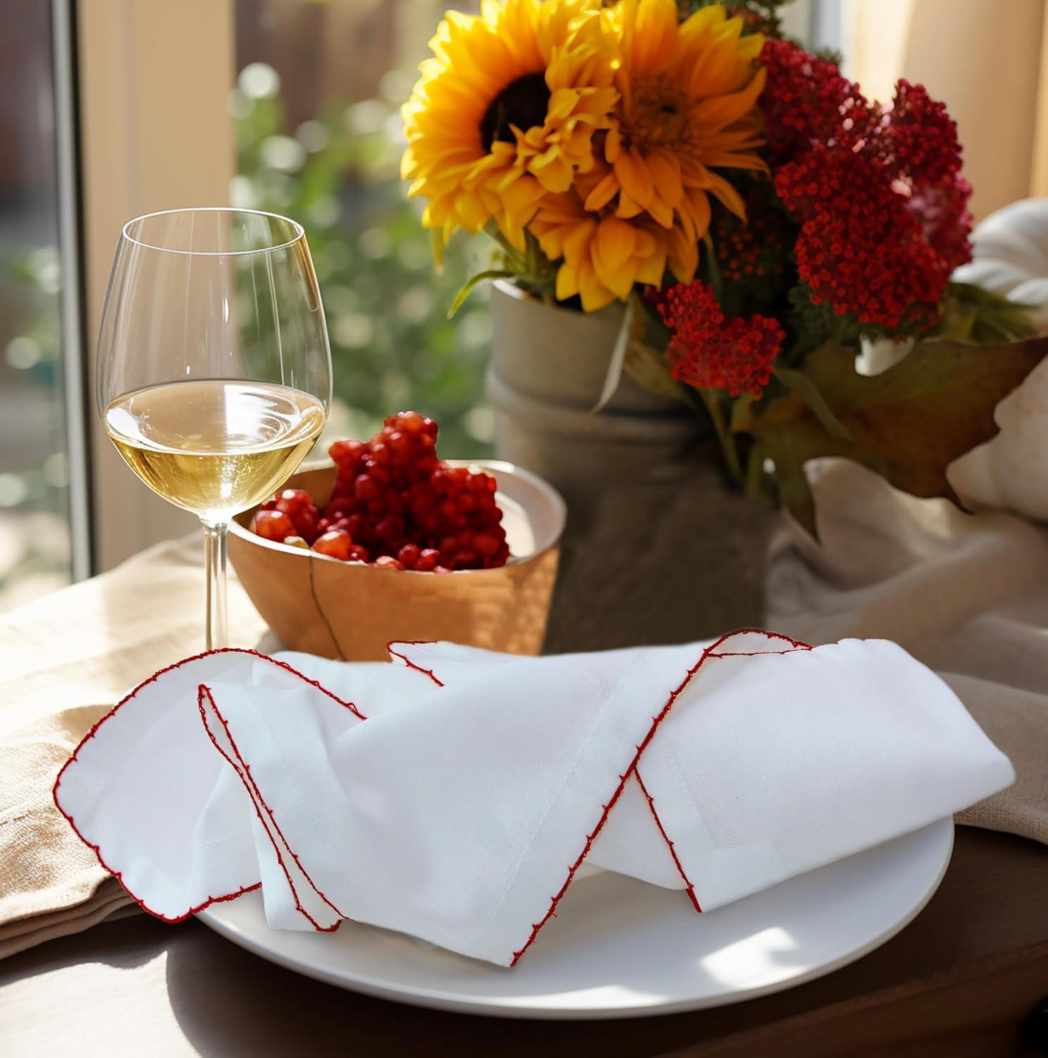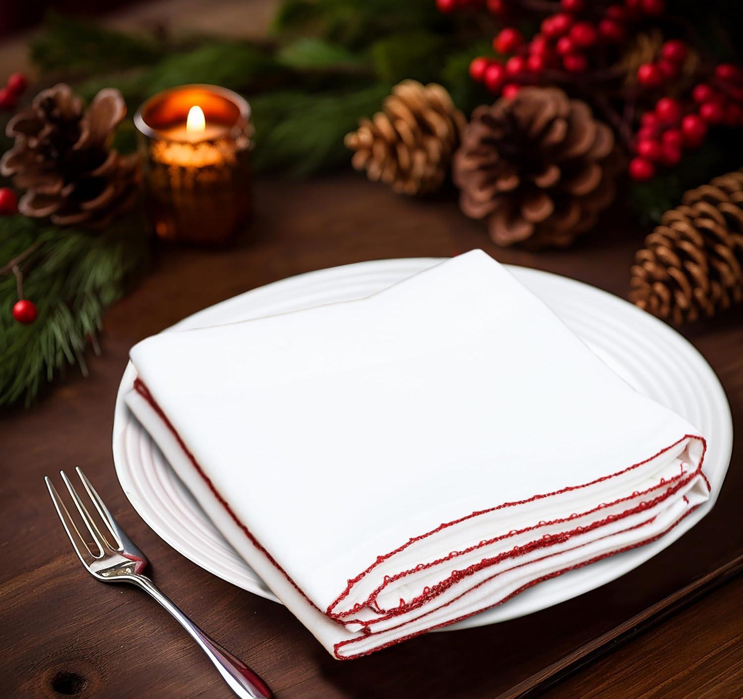 COTTON CRAFT Christmas Red Napkins -12 Pack 100% Cotton Dinner Napkins – All Year Xmas Fall Thanksgiving Celebration Party Gift Holiday Table Napkin – Soft Washable Reusable Cloth Napkin -18×18(White Red Lace)