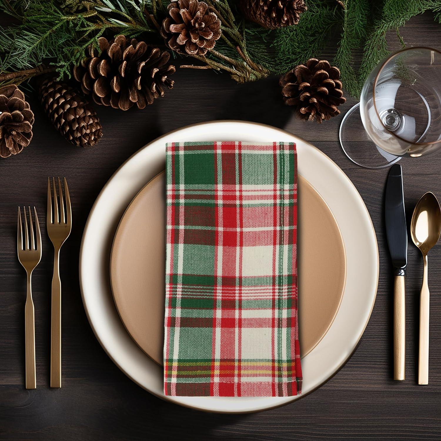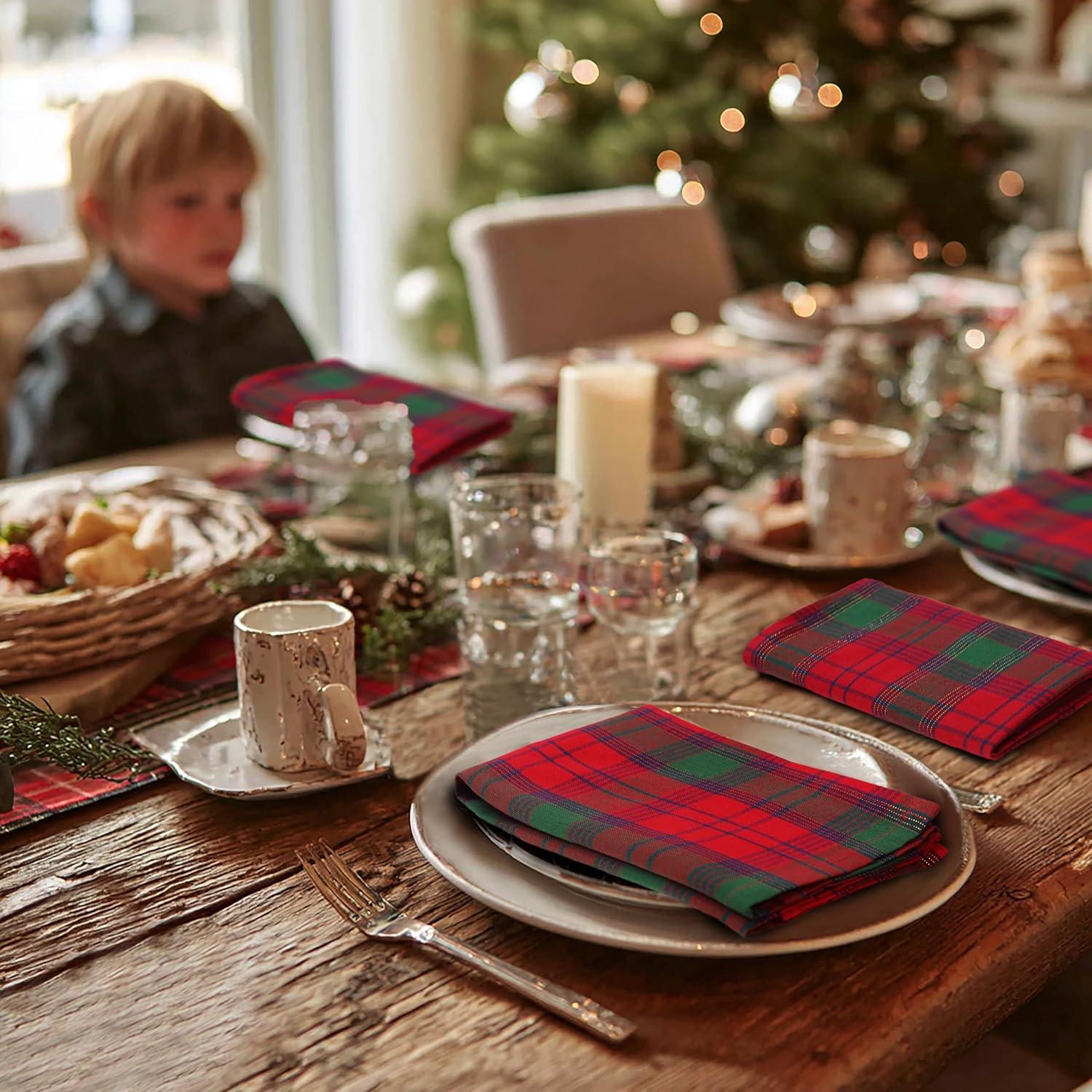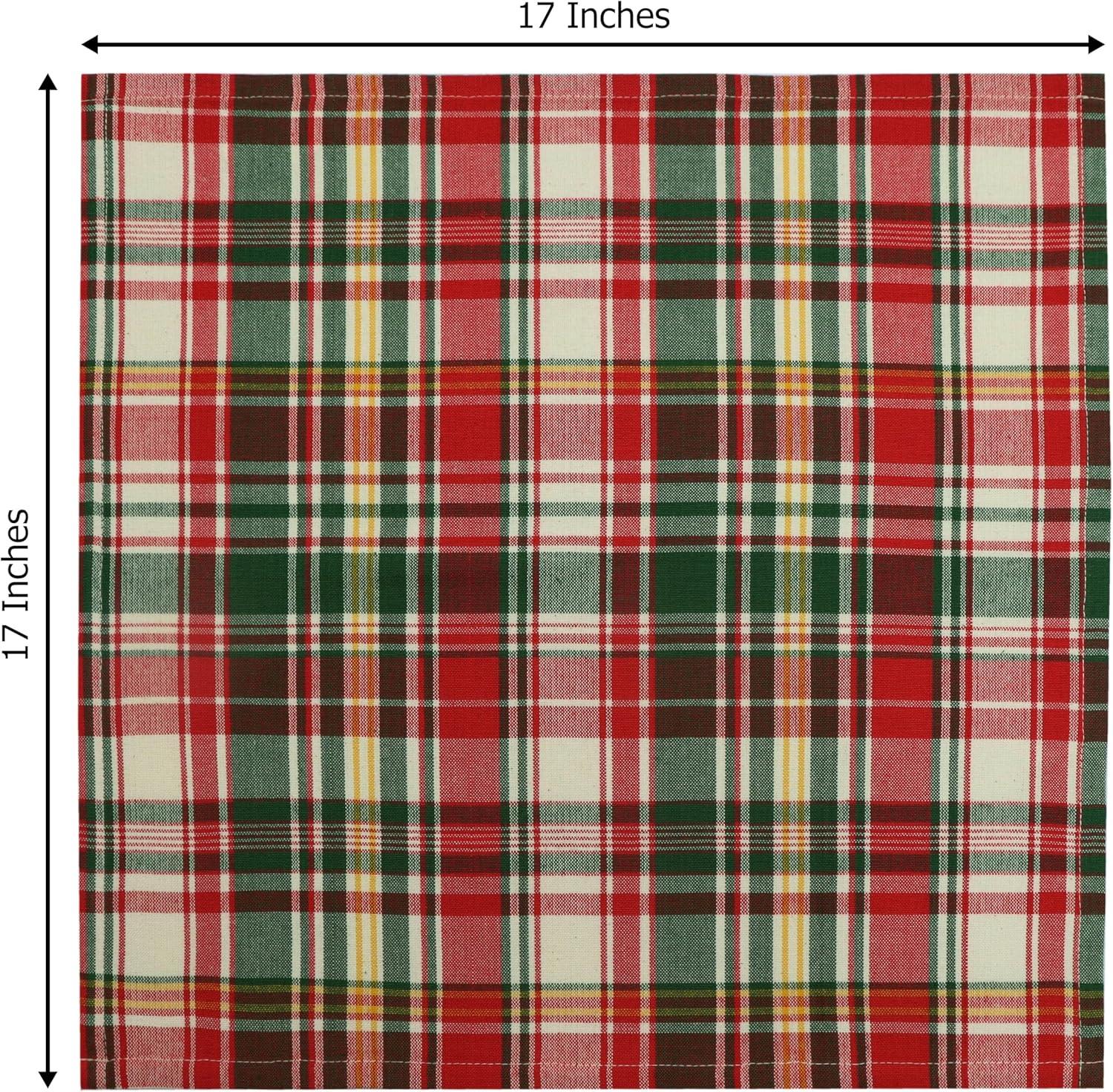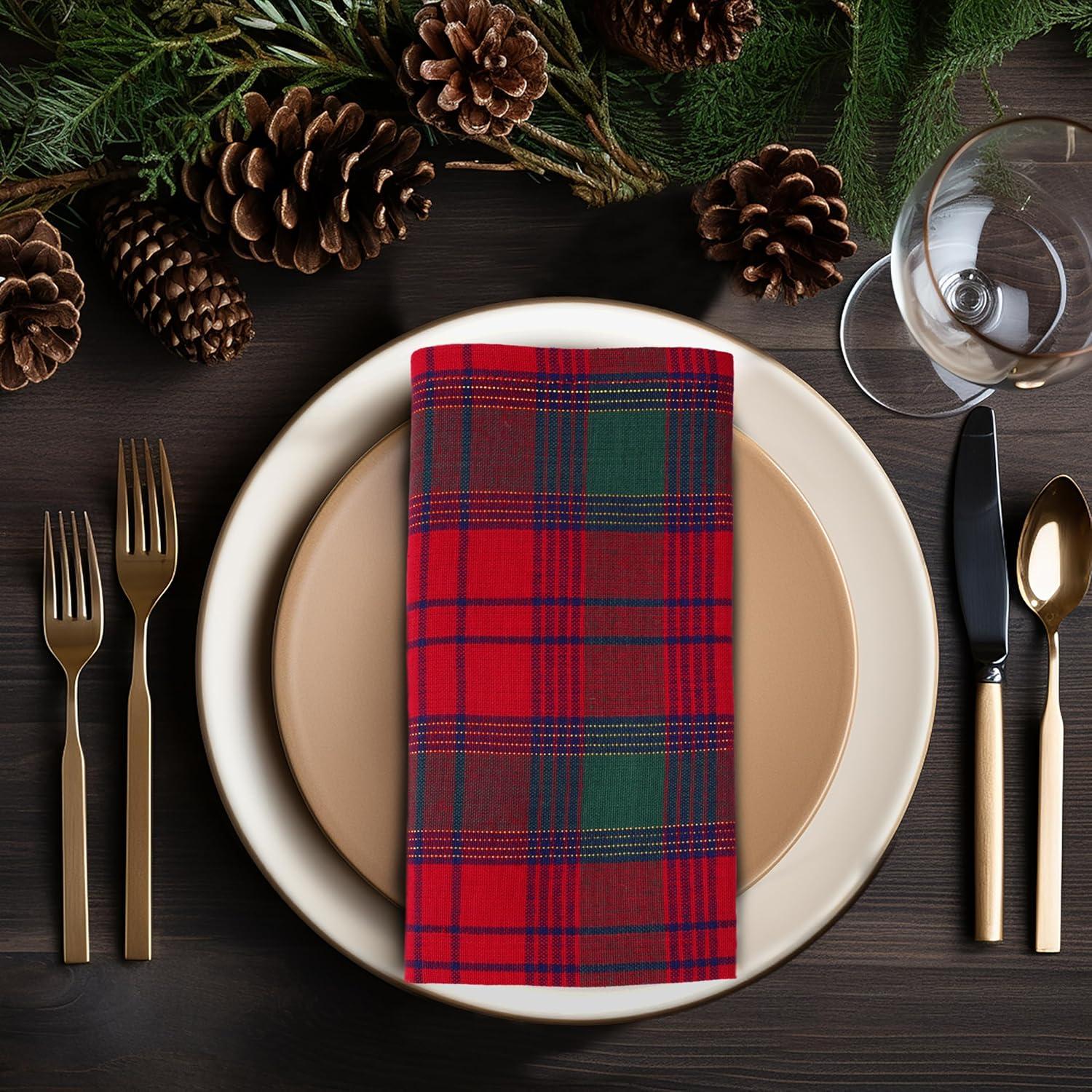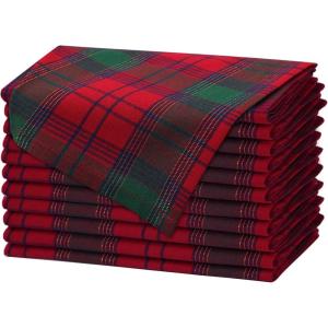 COTTON CRAFT Christmas Red Napkins -12 Pack 100% Cotton Dinner Napkins – All Year Xmas Fall Thanksgiving Celebration Party Gift Holiday Table Napkin – Soft Washable Reusable Cloth Napkin -18×18(Red Green Plaid)
