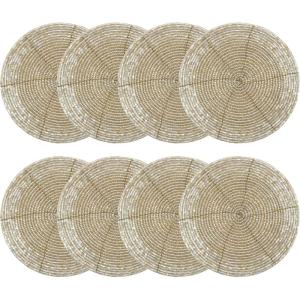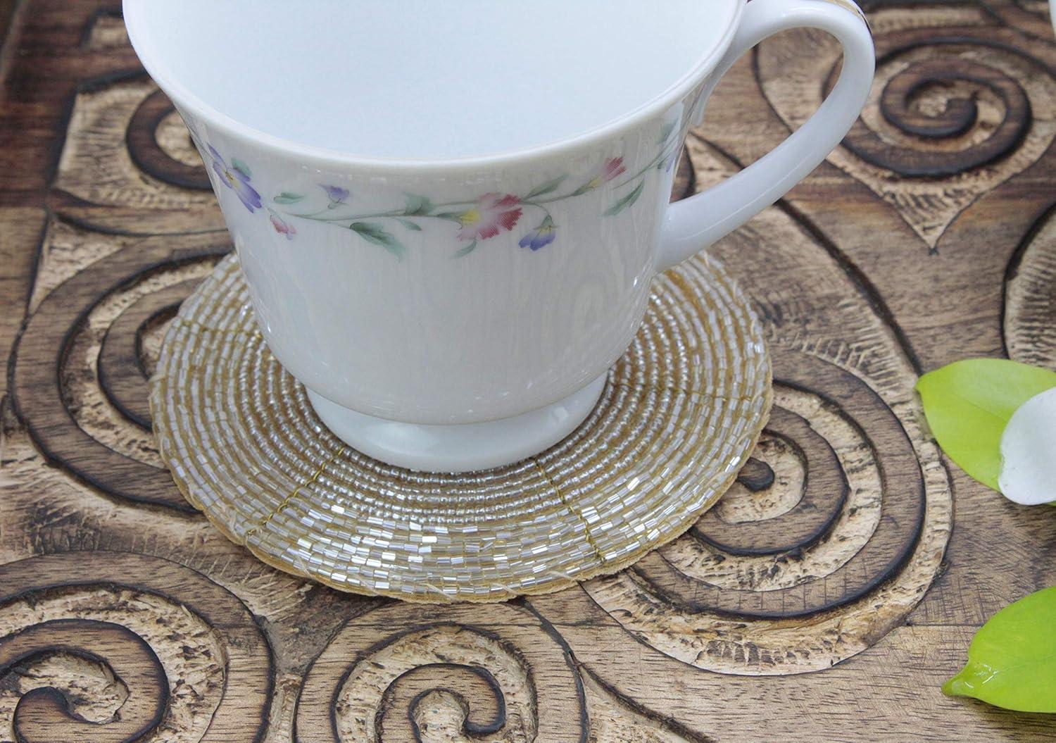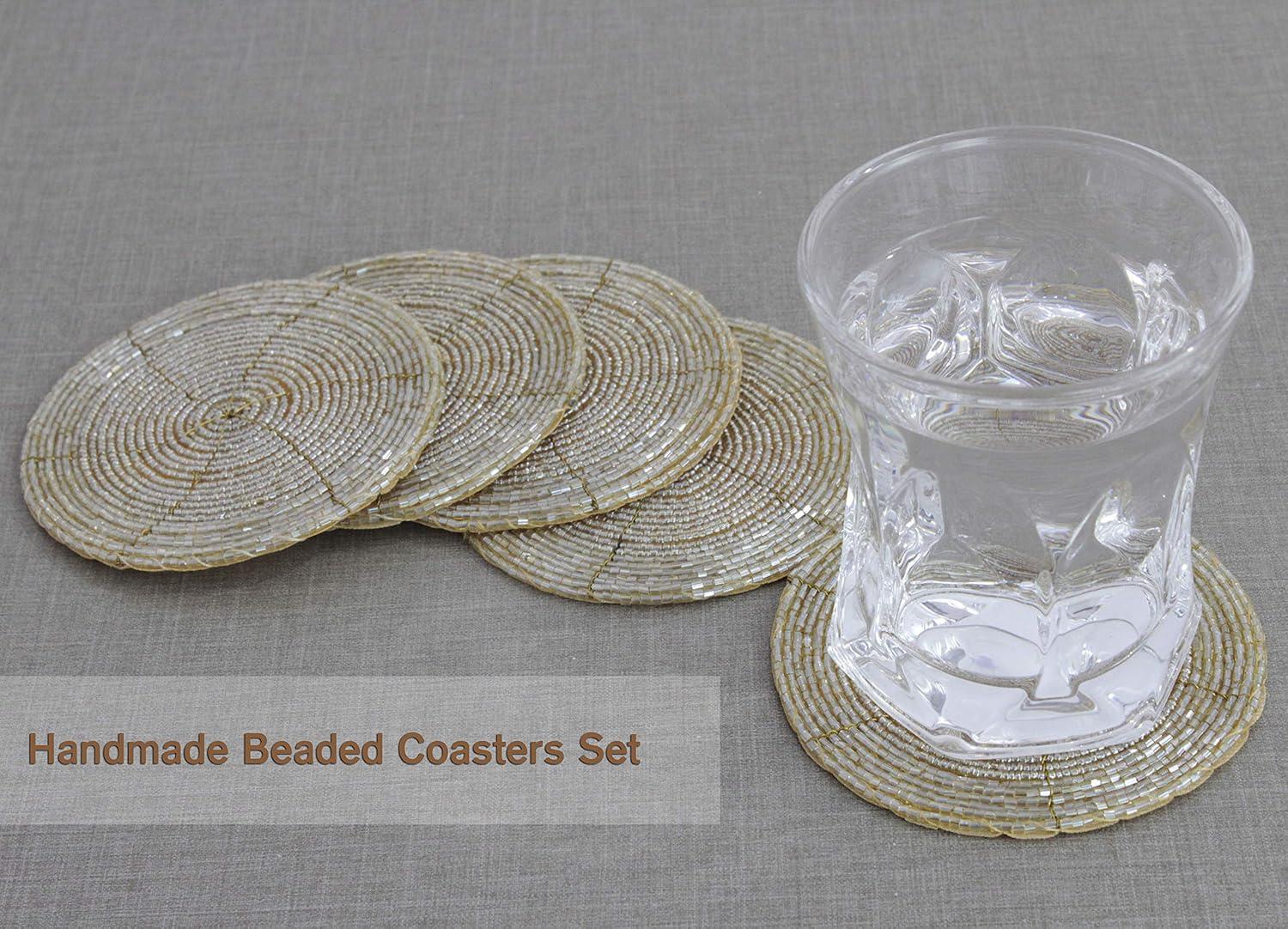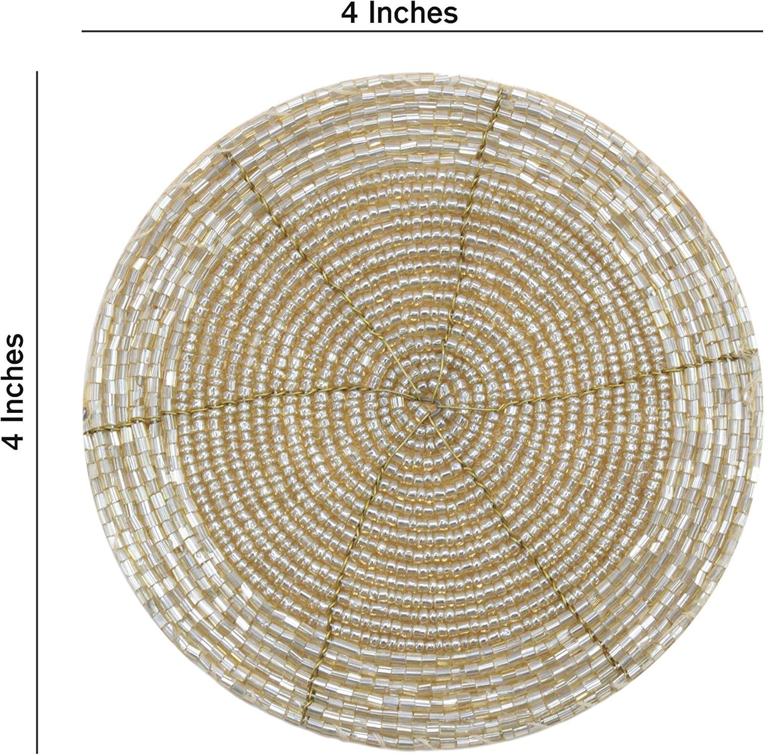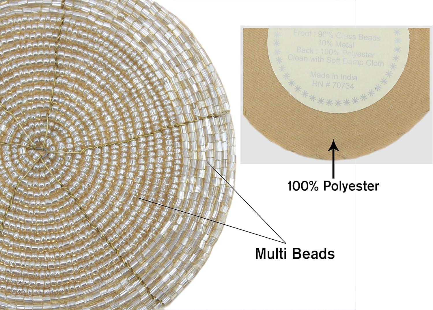 COTTON CRAFT Glitz Handmade Beaded Bar Drink Tabletop Protection Coasters – Set of 8 – Halloween Harvest Autumn Fall Thanksgiving Holiday Christmas Xmas Celebration Party – 4 in Round – Champagne