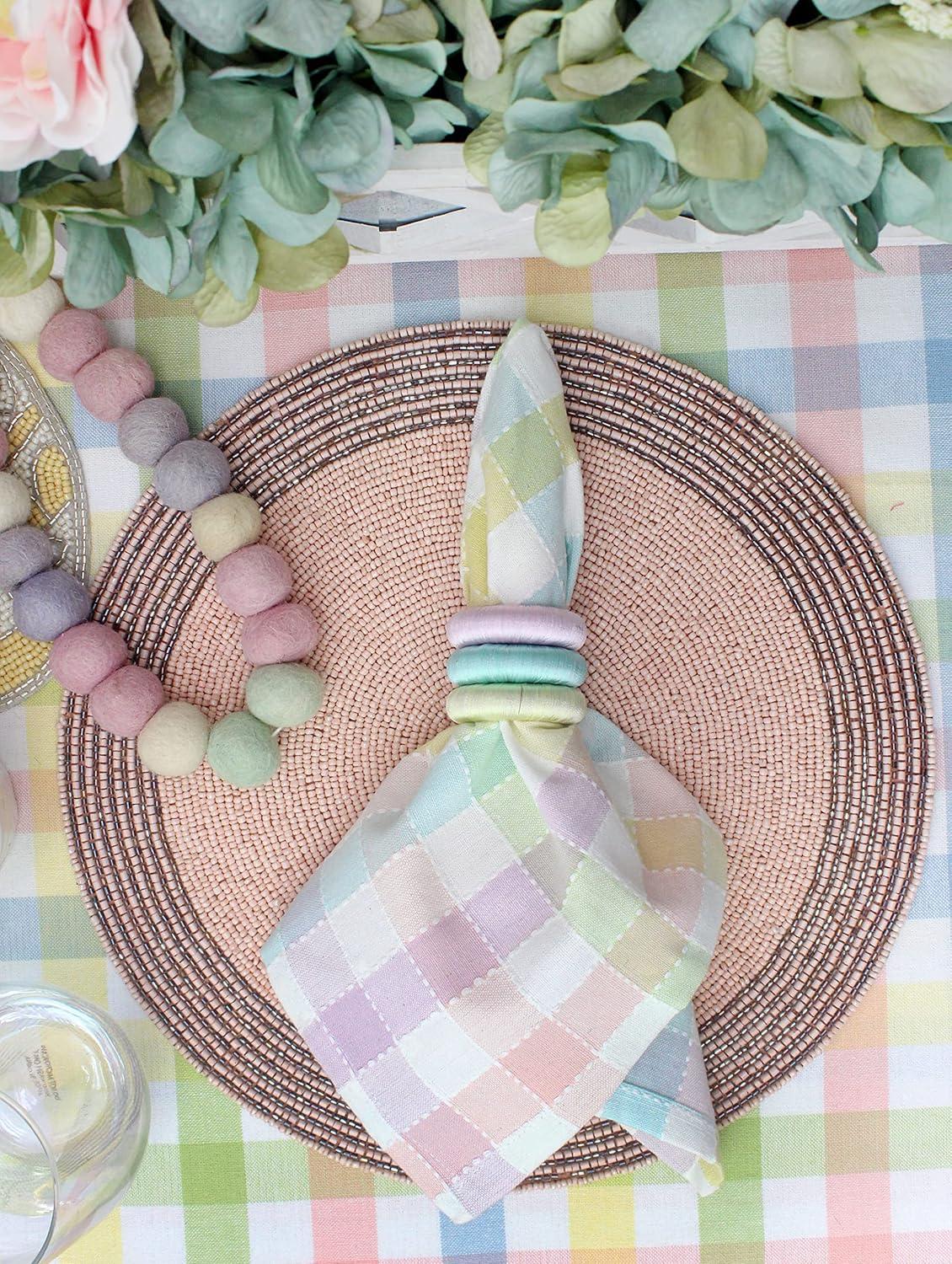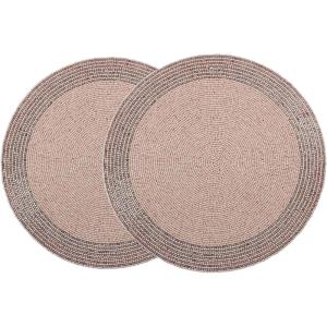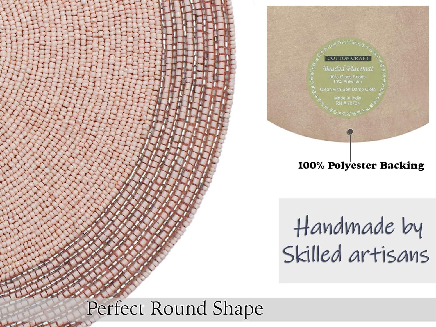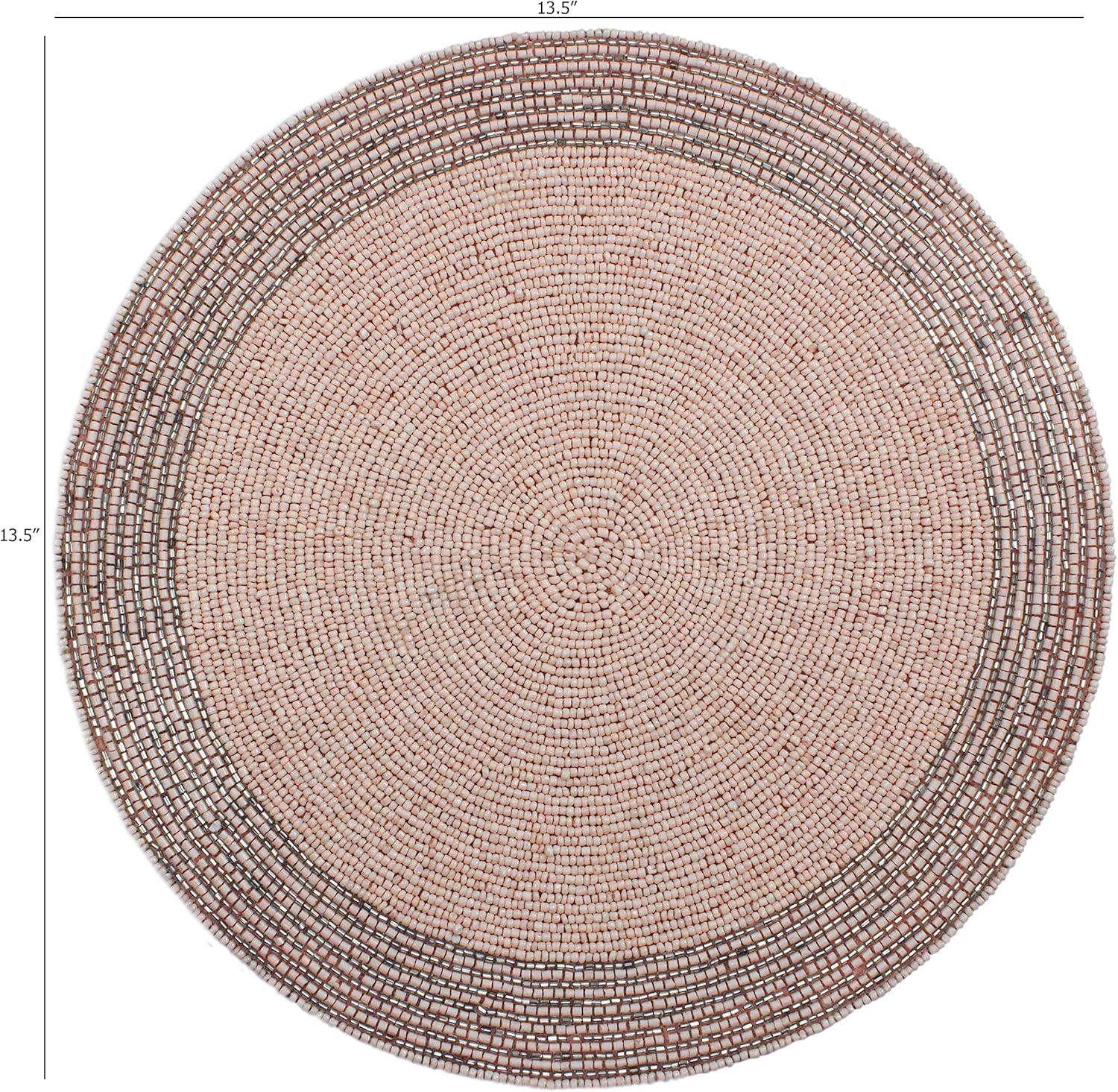 COTTON CRAFT Round Beaded Placemats – Set of 2 Glitz Handmade Charger Table Mats – Spring Easter Bunny Rabbit – Dining Table Brunch Lunch Dinner Celebration Party Table Décor – 13.5 inch – Pink Silver
