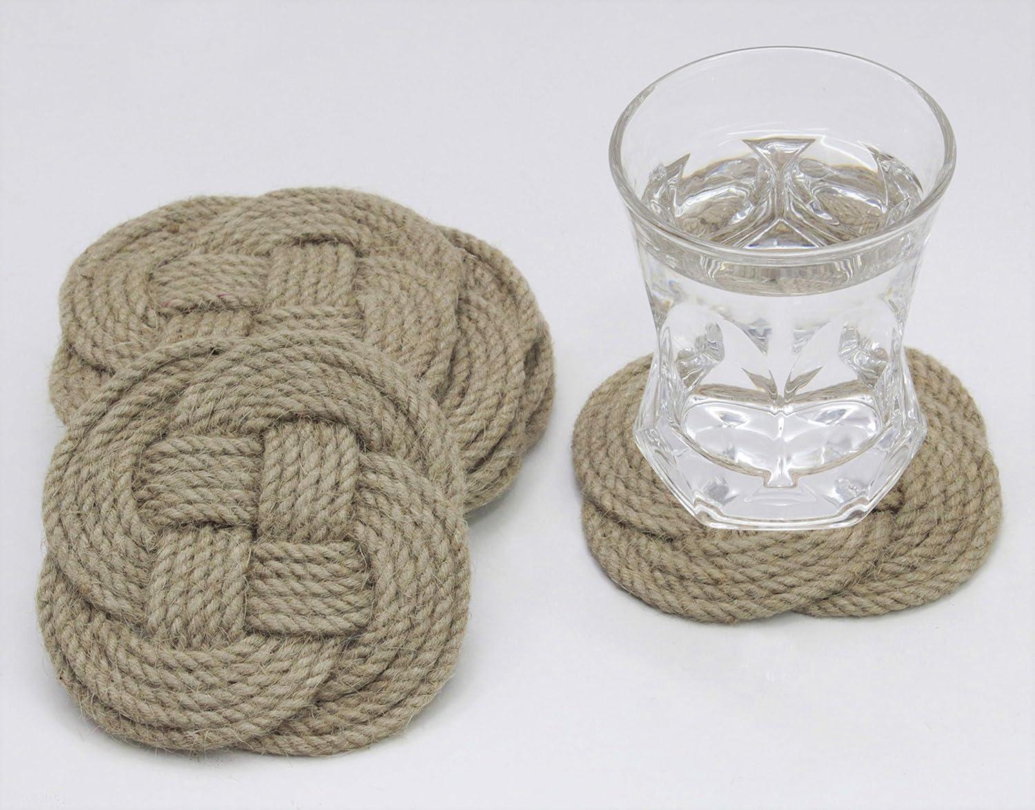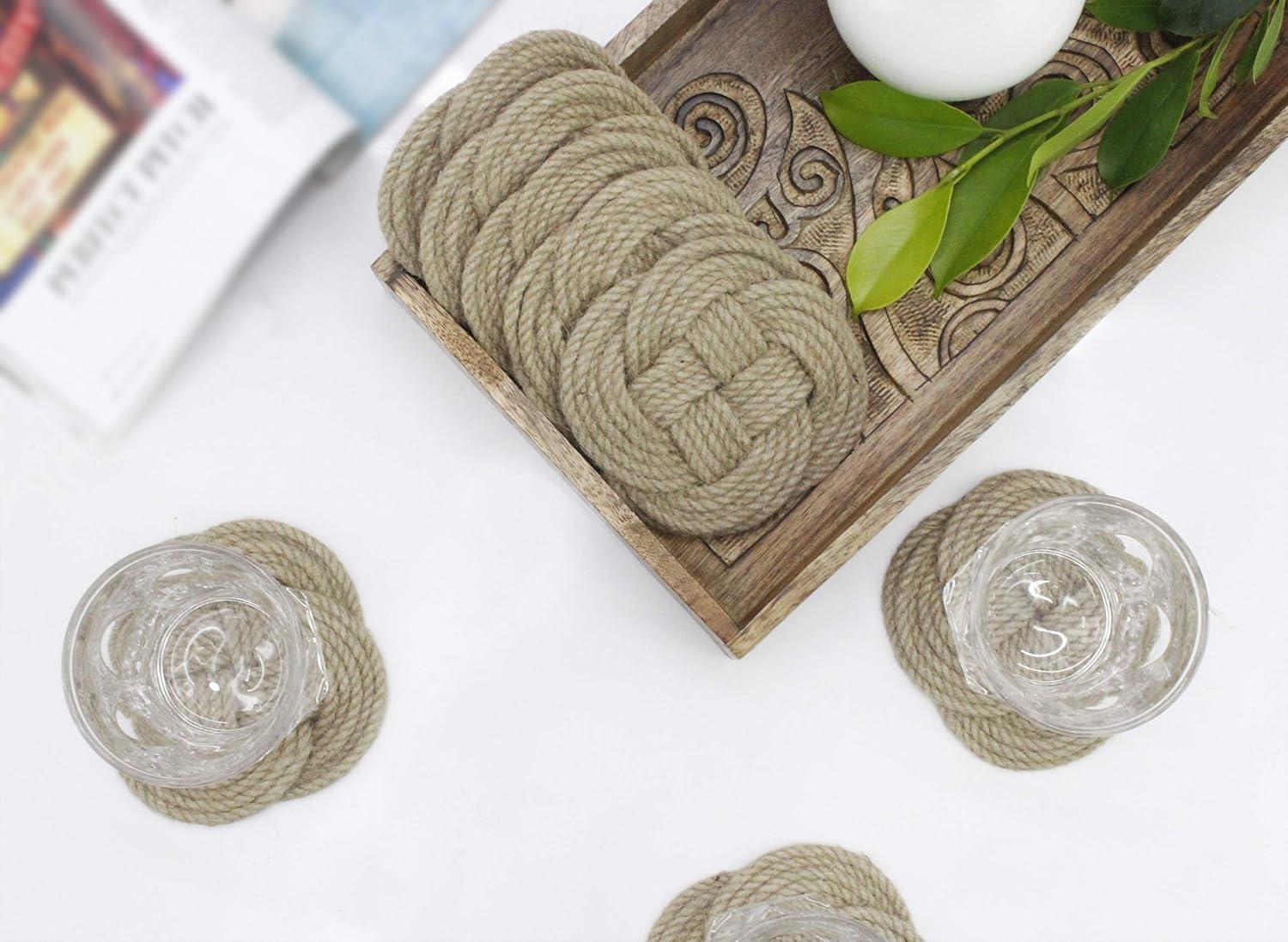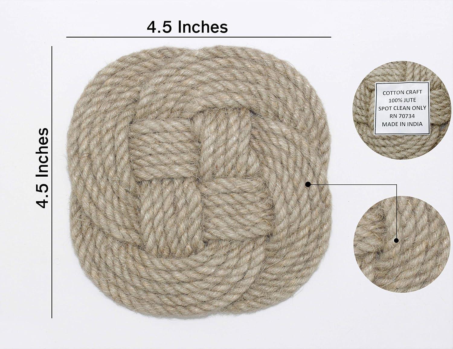 • COTTON CRAFT Shore Nautical Rope Set of 8 Jute Coasters, 4.5 Inch, Natural