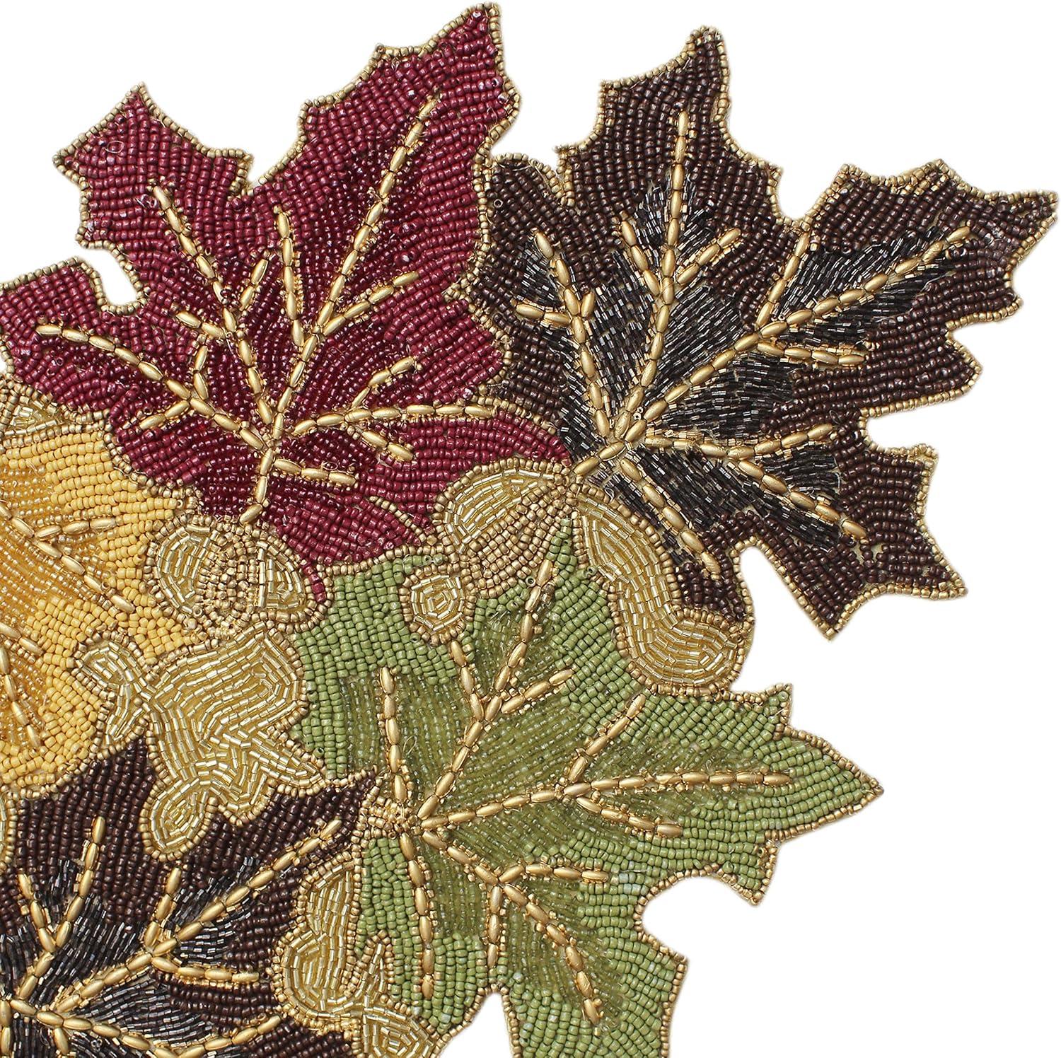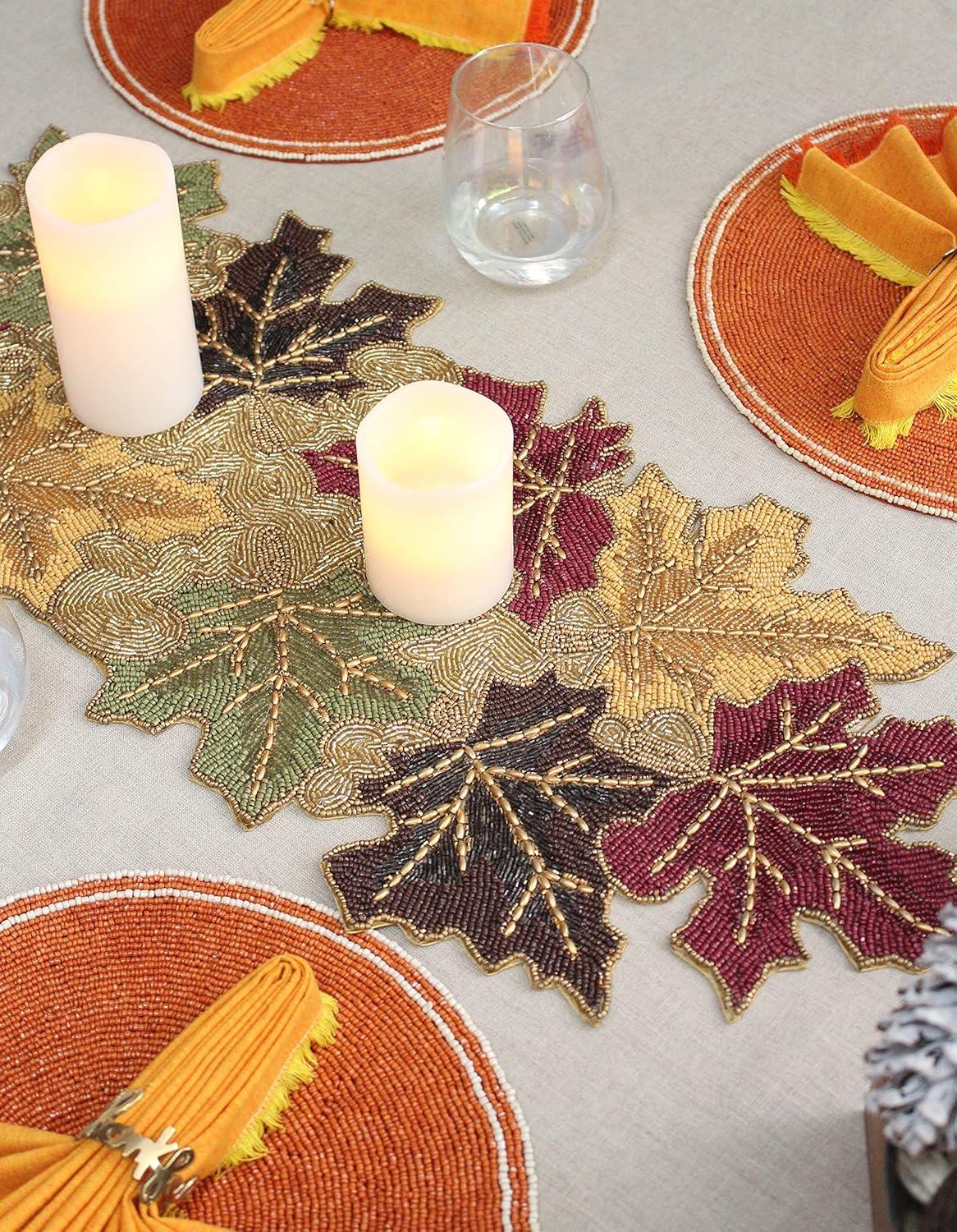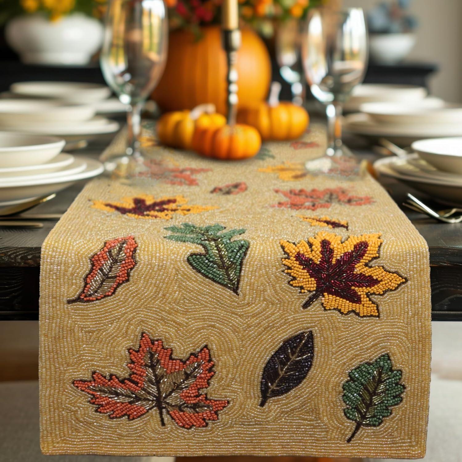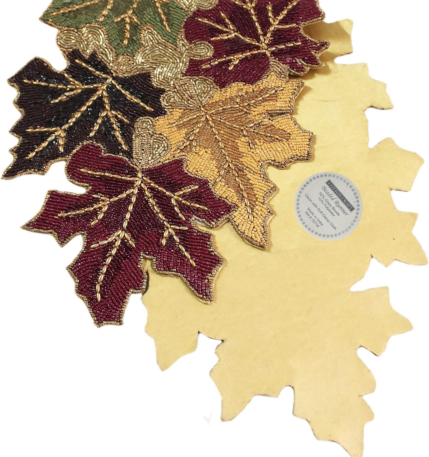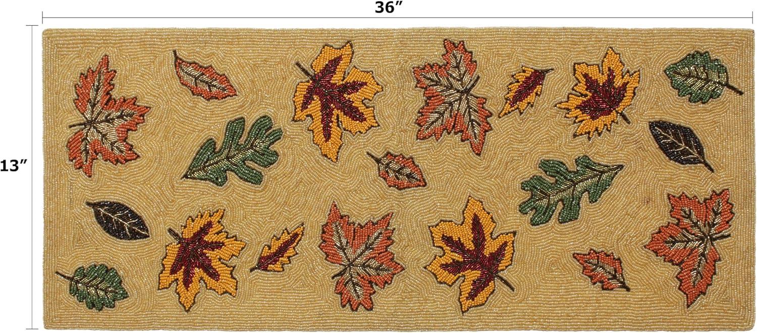 COTTON CRAFT Happy Hunting Handmade Beaded Table Runner – Easter Tulips Spring Floral Bunny Rabbit – Luncheon Dinner Celebration Festive Party Tabletop Décor Tablerunner – 13×36 – Easter Spring Multi(Scattered Leaves)