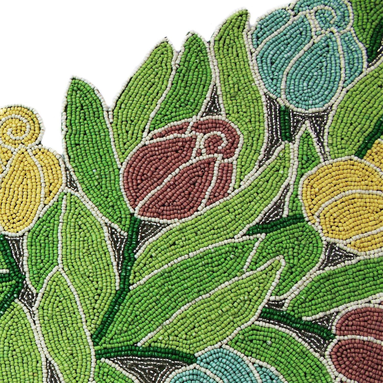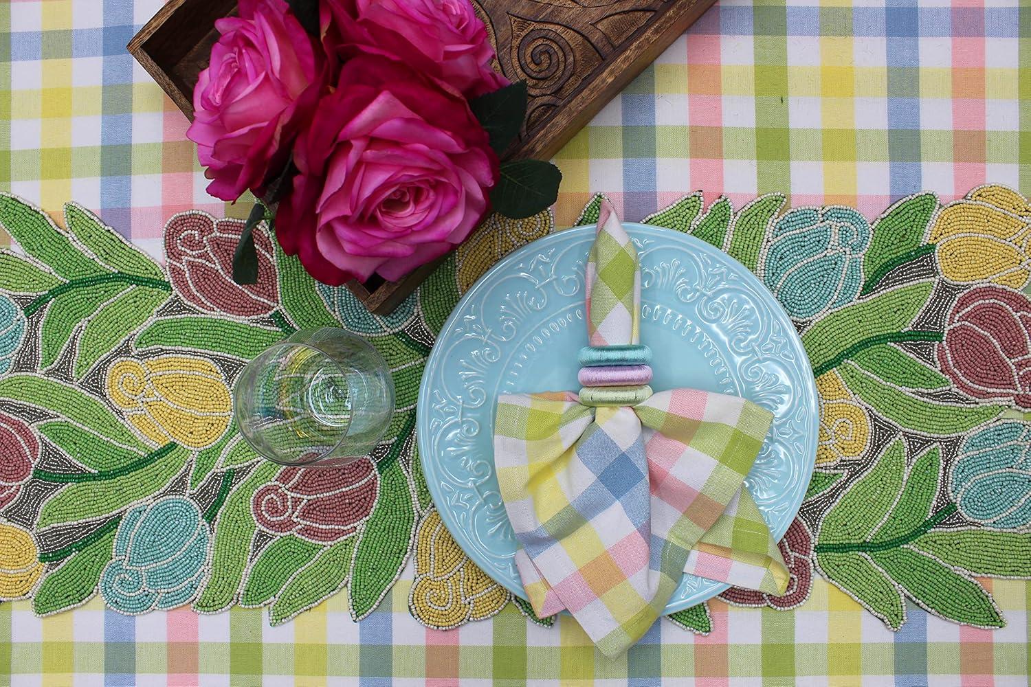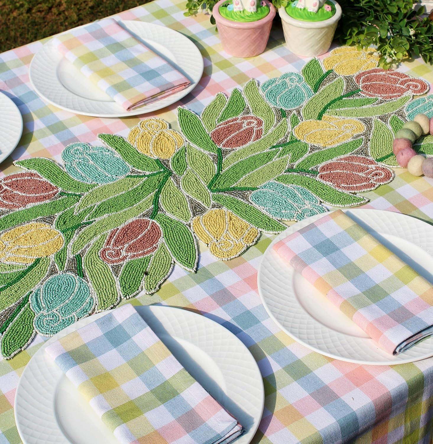 COTTON CRAFT Happy Hunting Handmade Beaded Table Runner – Easter Tulips Spring Floral Bunny Rabbit – Luncheon Dinner Celebration Festive Party Tabletop Décor Tablerunner – 13×36 – Easter Spring Multi(Tulips)