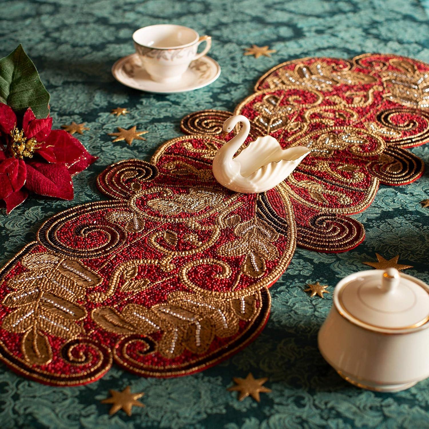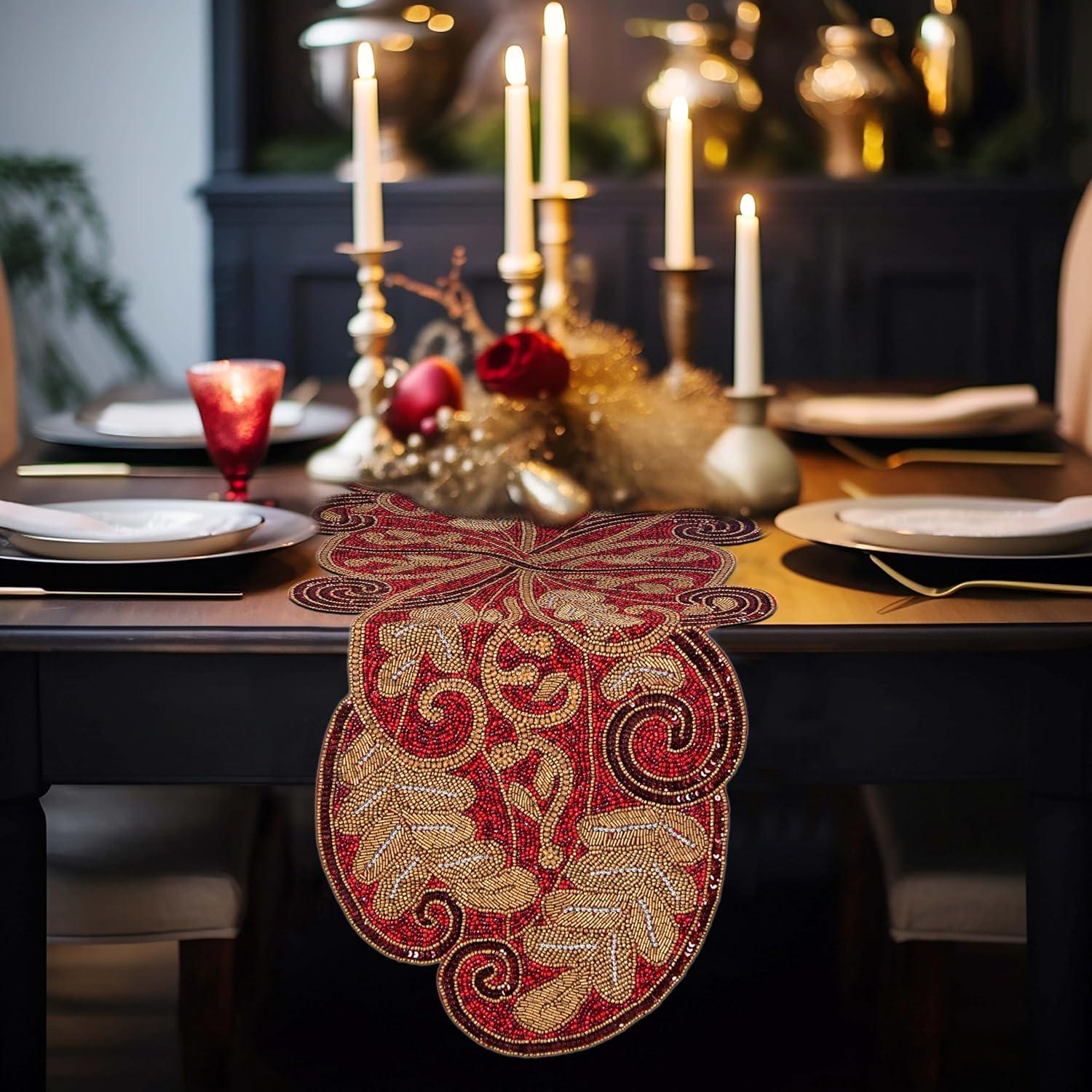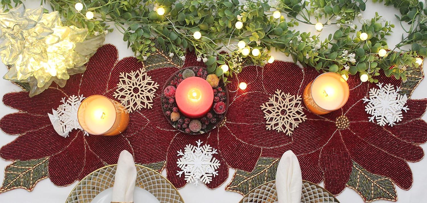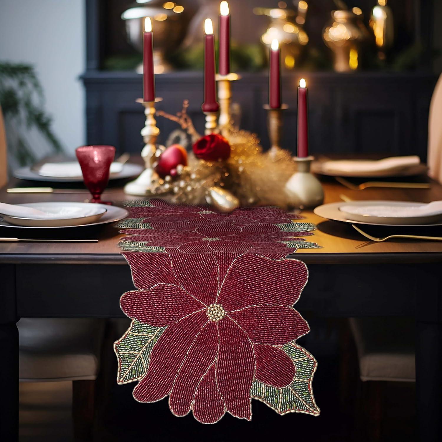 COTTON CRAFT Happy Hunting Handmade Beaded Table Runner – Easter Tulips Spring Floral Bunny Rabbit – Luncheon Dinner Celebration Festive Party Tabletop Décor Tablerunner – 13×36 – Easter Spring Multi(Poinsettia)
