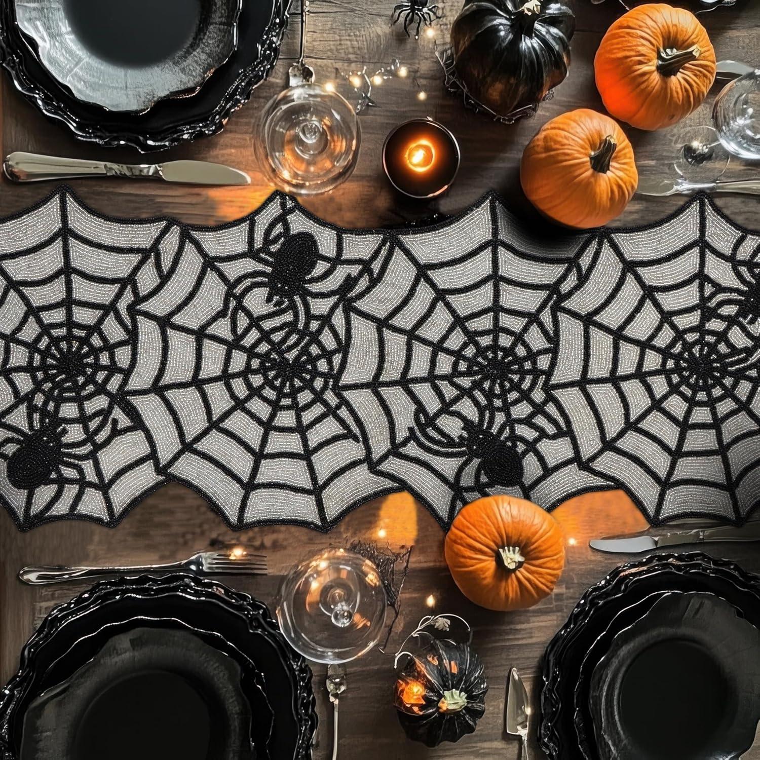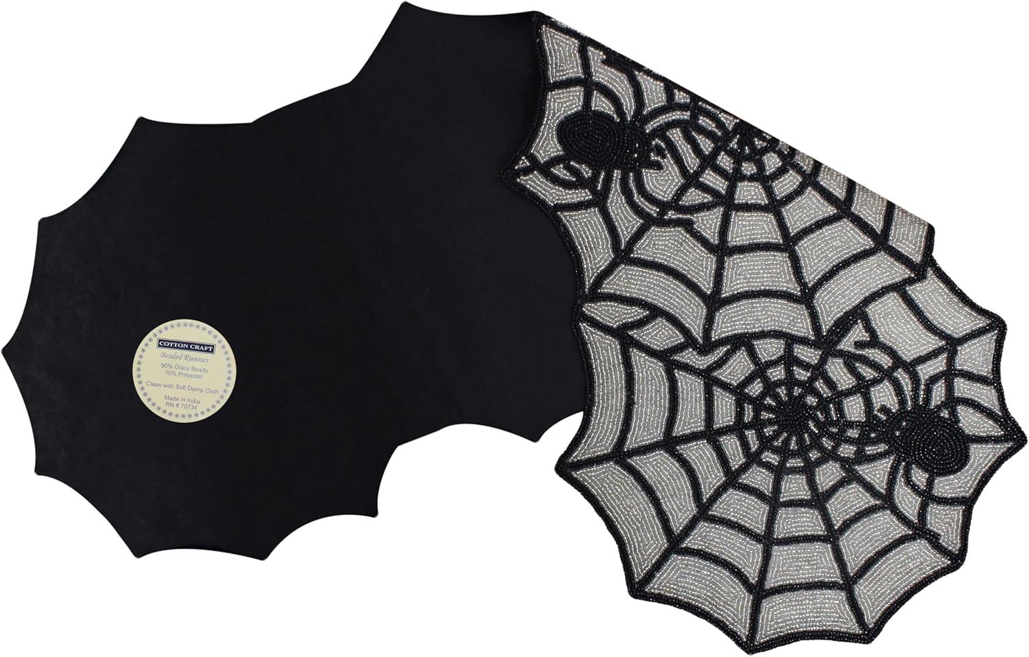 COTTON CRAFT Happy Hunting Handmade Beaded Table Runner – Easter Tulips Spring Floral Bunny Rabbit – Luncheon Dinner Celebration Festive Party Tabletop Décor Tablerunner – 13×36 – Easter Spring Multi(Spider Web)