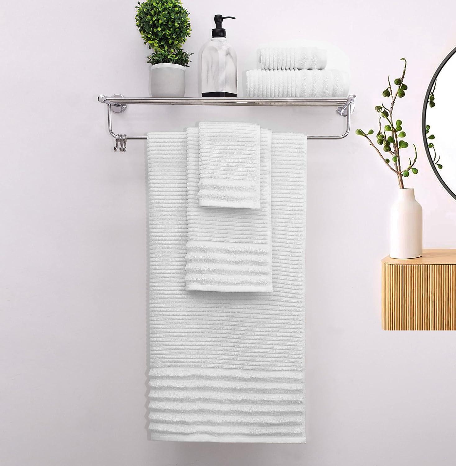 COTTON CRAFT 6 Piece Towel Set – 100% Cotton Plush 600 GSM Towels – Sculpted Super Zero Twist Pleated Ribbed Bathroom Towel Set – Soft Absorbent Luxury – 2 Bath Towel 2 Hand Towel 2 Washcloth – White