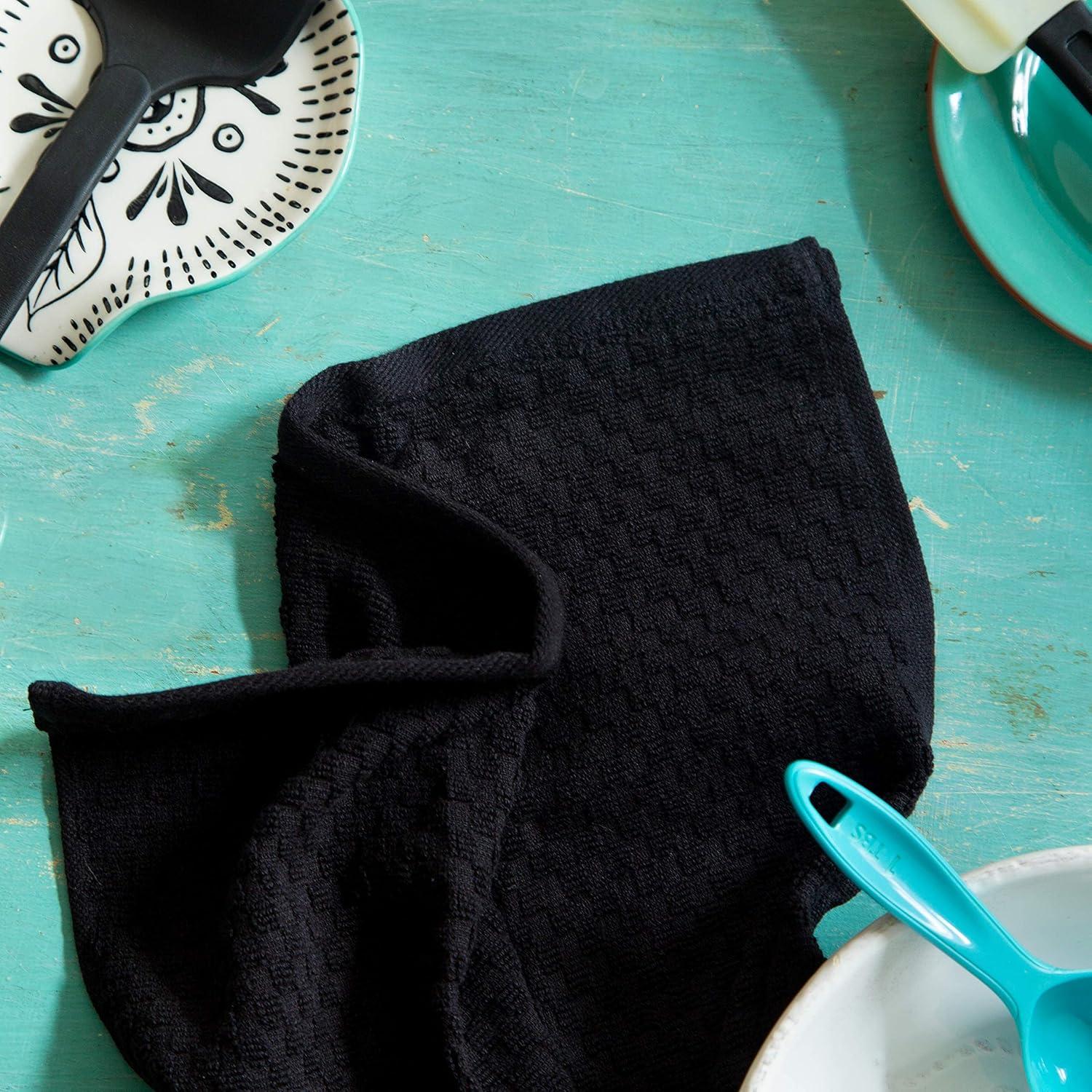 COTTON CRAFT Amazing Kitchen Towels – Set of 12 Terry Towels – 100% Cotton Euro Café Waffle Weave Dish Towel Set – Soft Absorbent Quick Dry Low Lint Reusable Pantry Bar Cleaning Cloth – 16×28 – Black(Black)