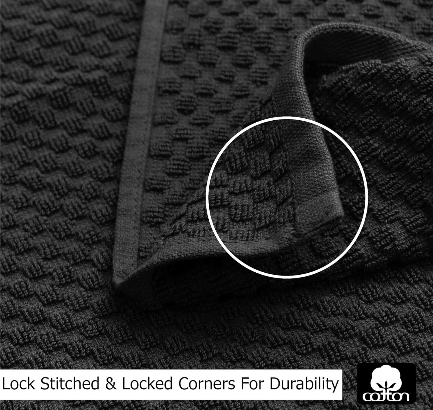 SET CONTENTS: Each set includes twelve (12) COTTON CRAFT Waffle Weave Kitchen Towels, each measuring 16 inches by 28 inches (16″x28″). 420 GSM. Color – Black.