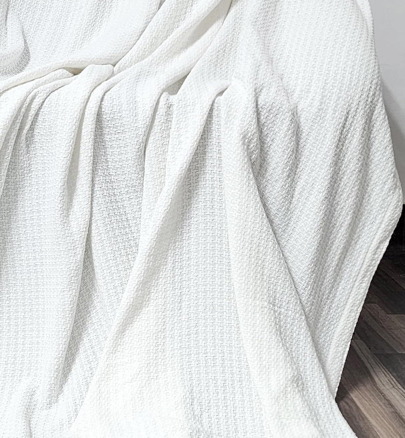 COTTON CRAFT Basket Weave Blanket – 100% Cotton 330 GSM Ultra Soft Thermal Blanket – All Season Light Breathable Skin Friendly Cooling Luxury Throw Blanket – Sofa Bed Travel Dorm – 90×102 King – White(White)