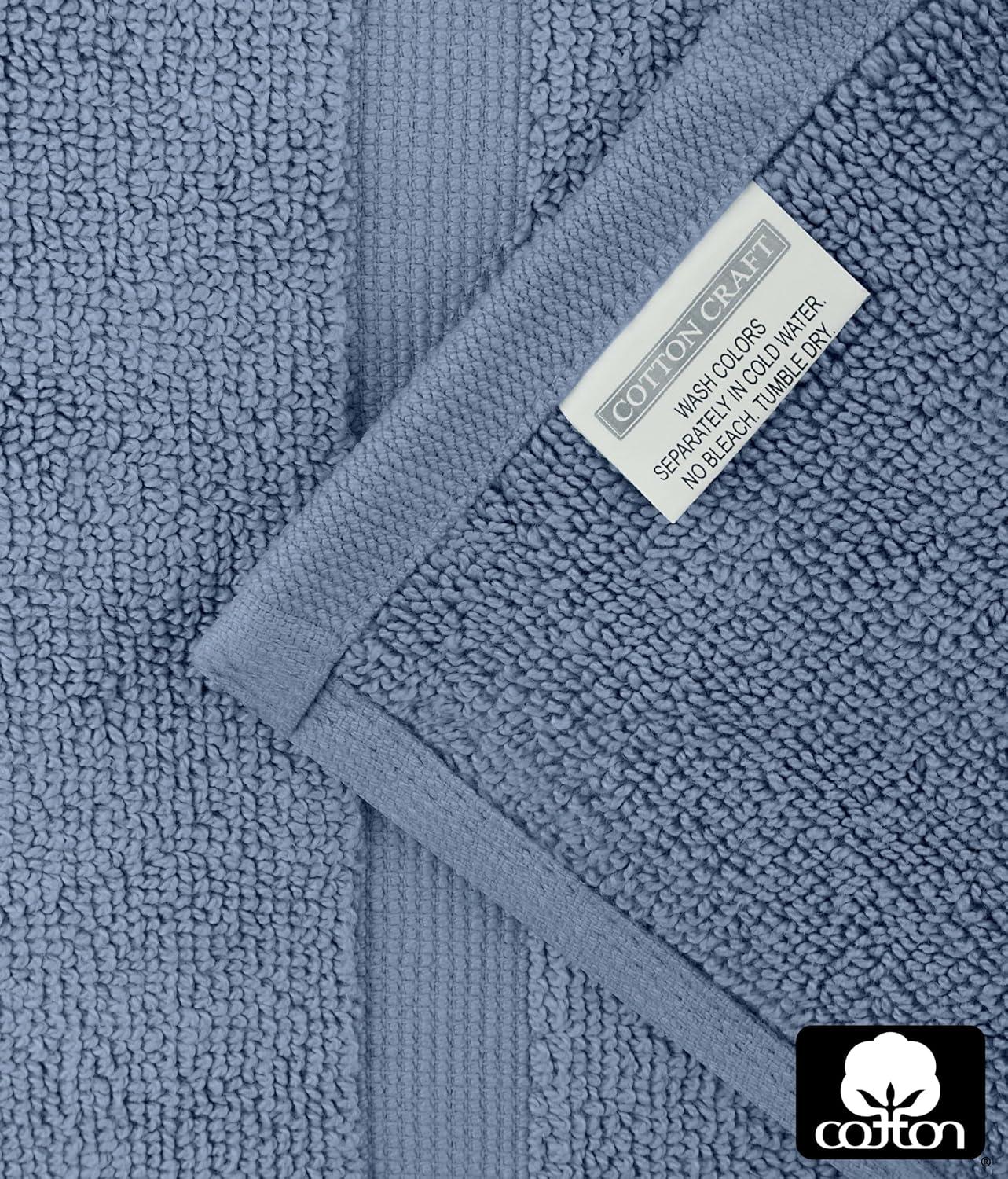 COTTON CRAFT Bath Mats – 2 Pack 100% Cotton 21×30 Inches – Ultra Absorbent – Plush 900 GSM – Banded Border Luxury Towel Rug – Step Out Tub Shower Floor Mat -Not a Bathroom Rug – White(Azure Blue)