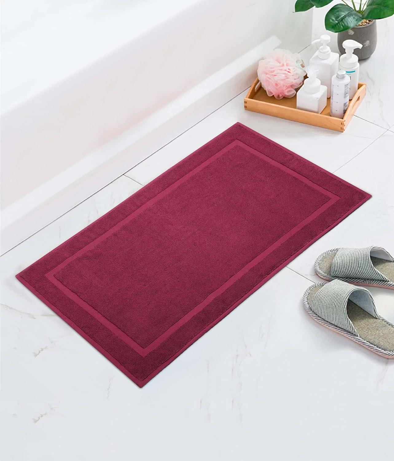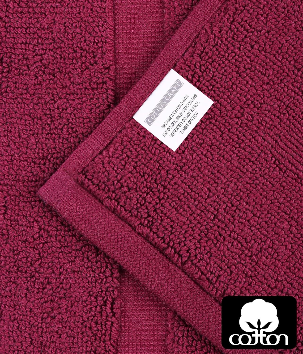 COTTON CRAFT Bath Mats – 2 Pack 100% Cotton 21×30 Inches – Ultra Absorbent – Plush 900 GSM – Banded Border Luxury Towel Rug – Step Out Tub Shower Floor Mat -Not a Bathroom Rug – White(Burgundy)