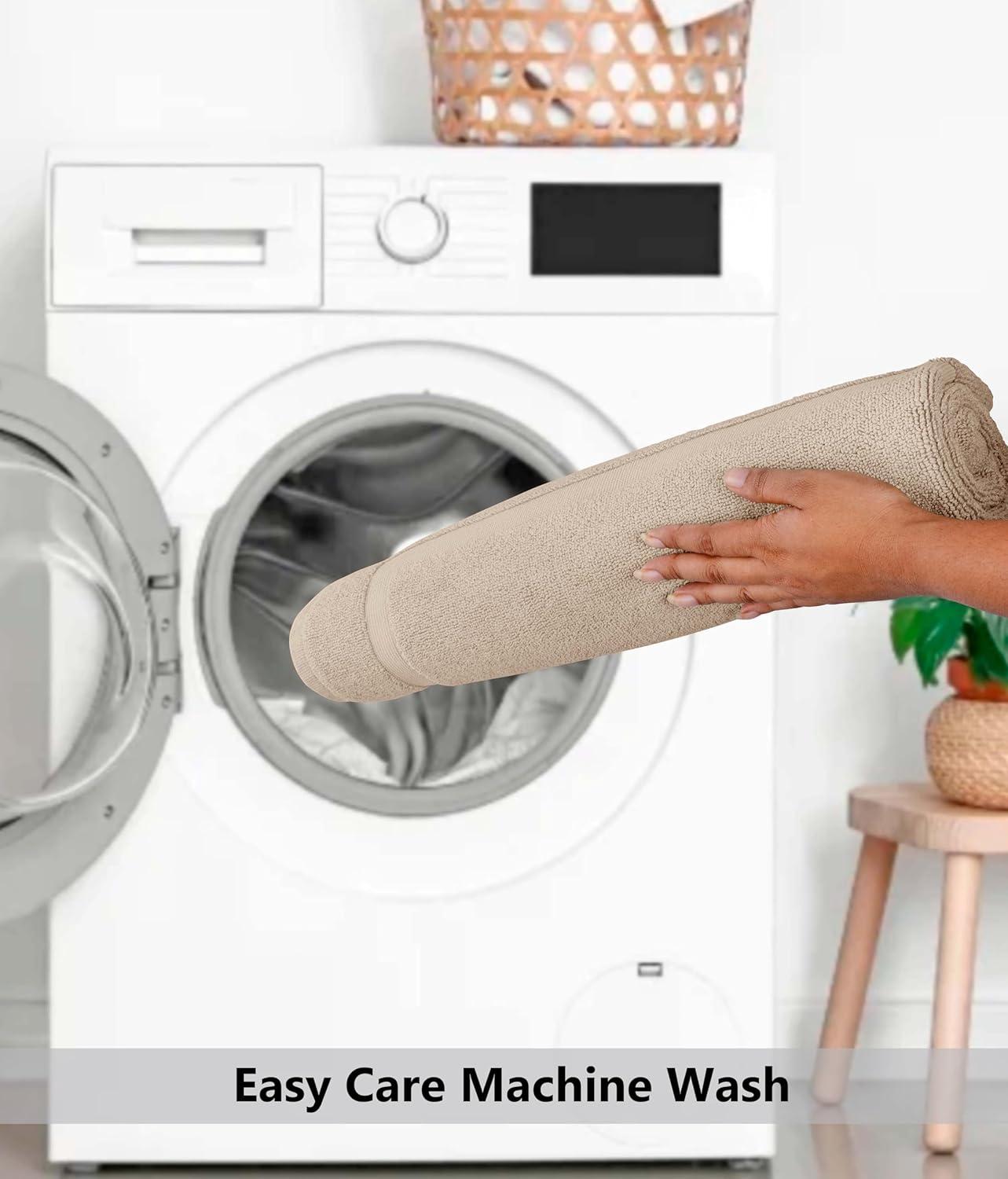 Heavyweight, Highly Absorbent, and Quick Dry Bathroom Mats – 900 grams per square meter construction equals 380 grams or 13.40 ounces for each mat. The thick cotton fibers quickly soak up moisture while allowing fast air circulation, helping the mat dry faster and stay fresher between uses.