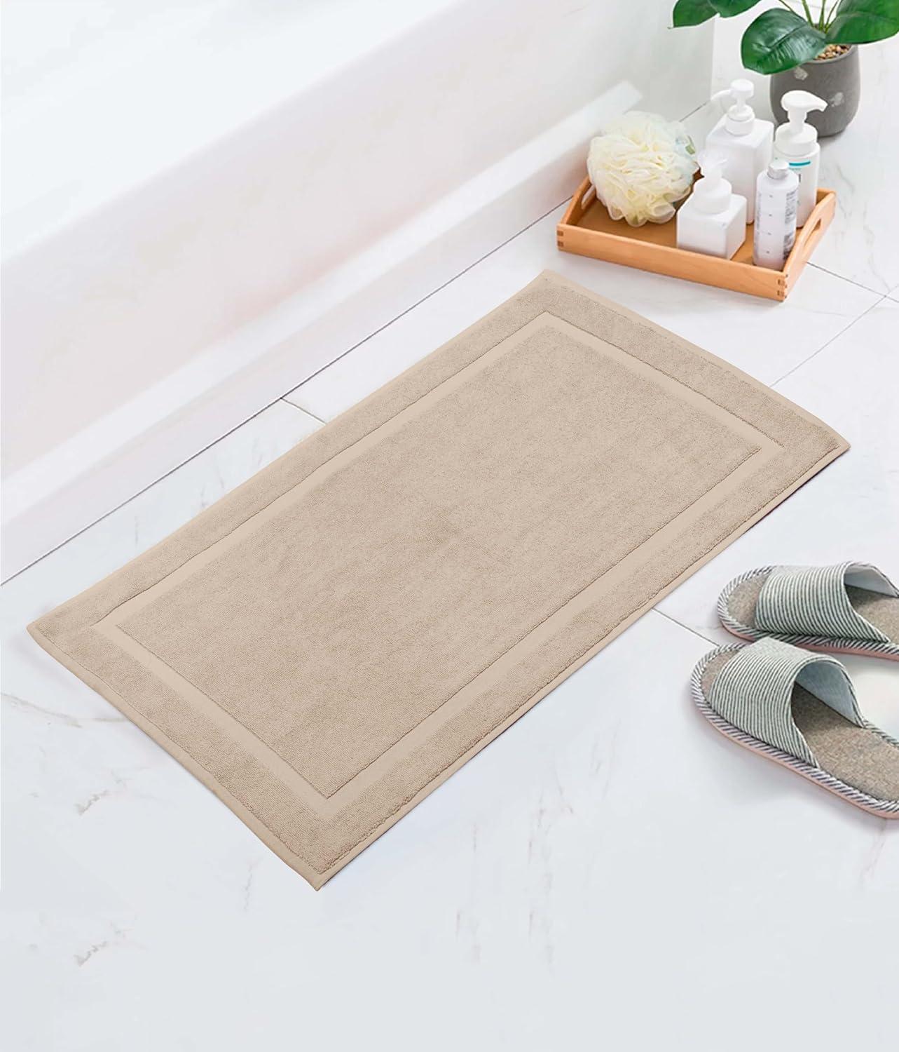 High Quality Bath Rug – Woven on European Luxury towel looms from 100 Percent Pure 2 Ply Ringspun Cotton with sewn edges for long wear, durability, and low lint. This bath mat is not backed. Recommended to use with an anti-skid mat sold elsewhere on Amazon.