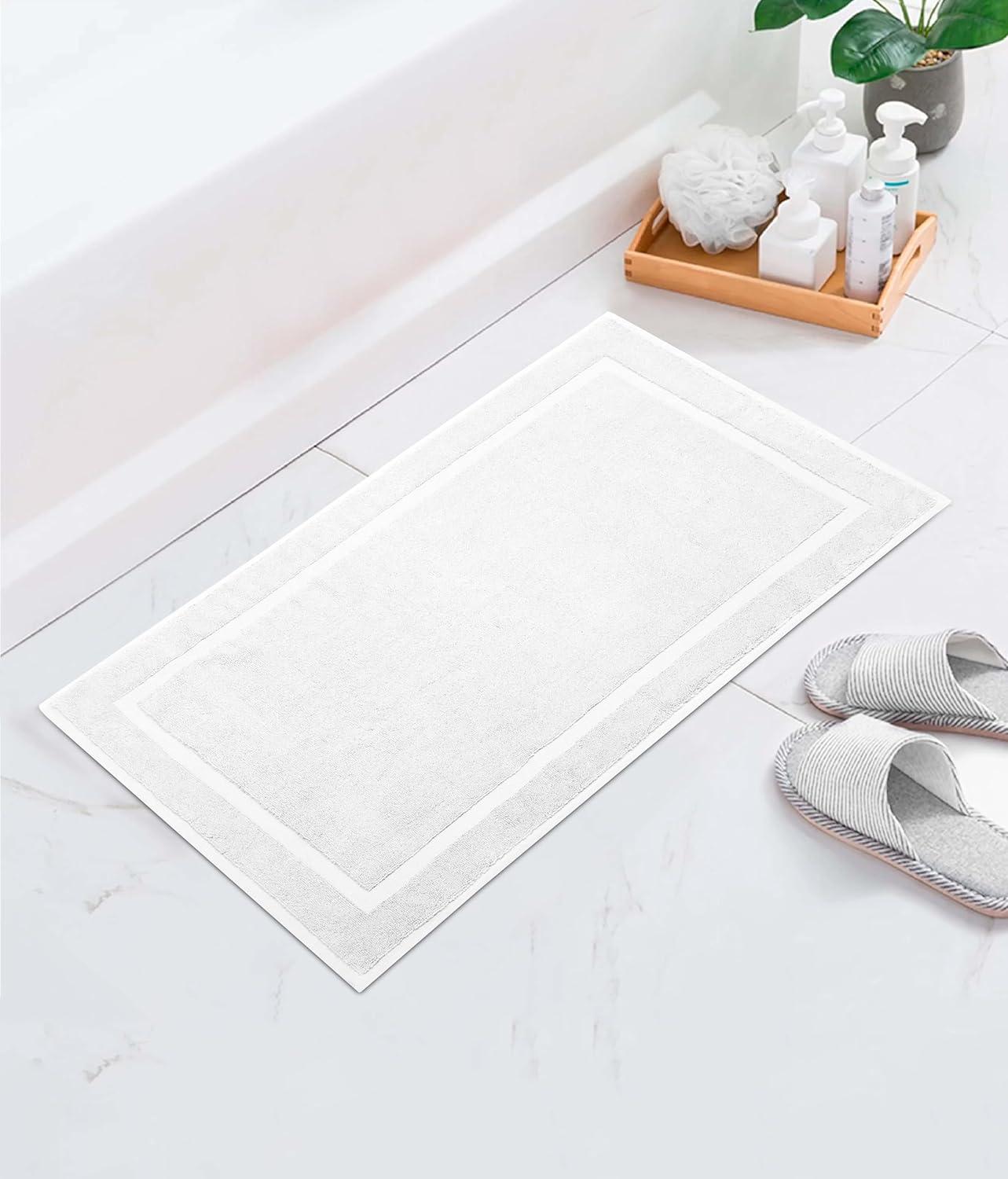 COTTON CRAFT Bath Mats – 2 Pack 100% Cotton 21×30 Inches – Ultra Absorbent – Plush 900 GSM – Banded Border Luxury Towel Rug – Step Out Tub Shower Floor Mat -Not a Bathroom Rug – White(White)