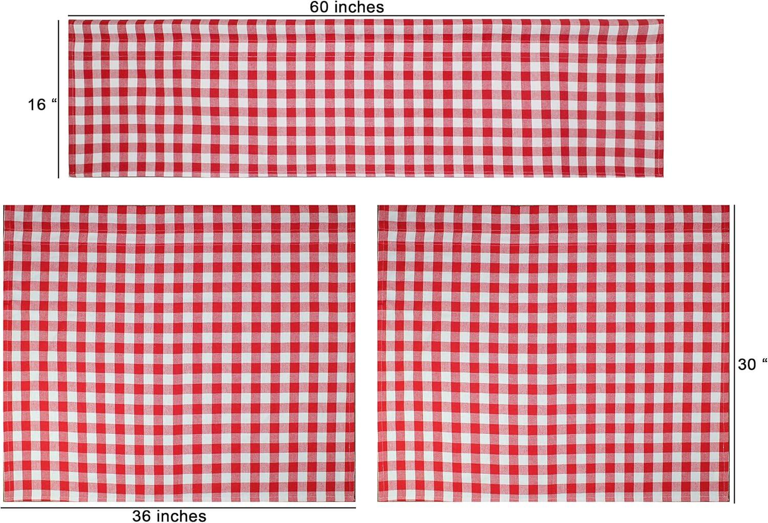 COTTON CRAFT Café Kitchen Window Curtain 3 Pc – Tier Curtains with Valance – Gingham Buffalo Check 100% Cotton Window Panel Treatment – Farmhouse Country Rustic Laundry Bedroom – 30×36 / 16×60 – Black(Red & White)