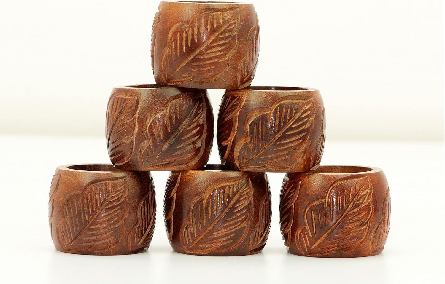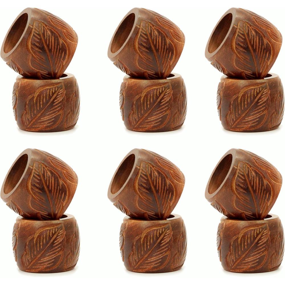COTTON CRAFT Carved Leaves Handmade Wood Dining Table Napkin Rings – Set of 12 – Halloween Harvest Autumn Fall Thanksgiving Holiday Christmas Xmas Celebration Festive Party Gift Décor – Natural