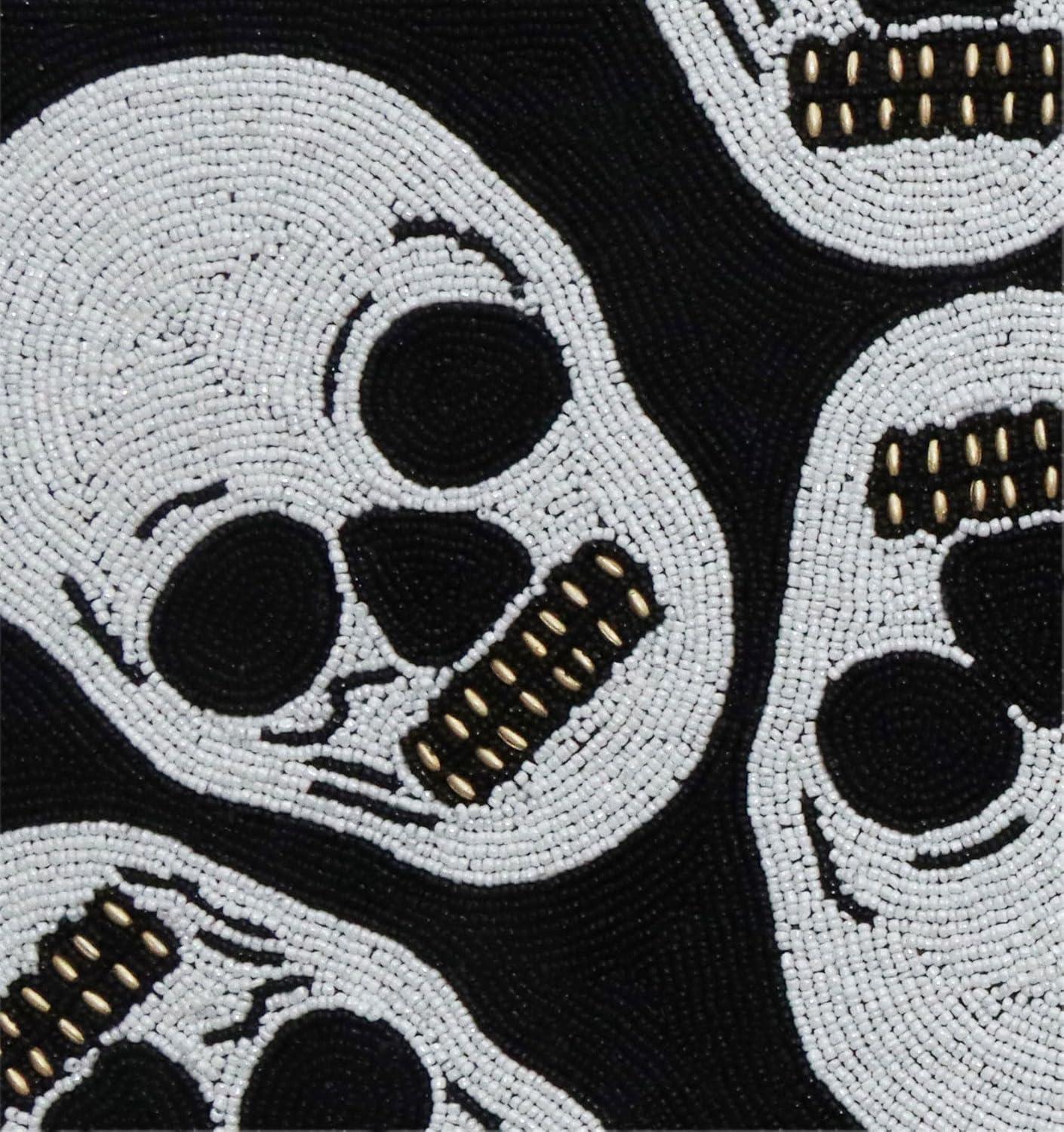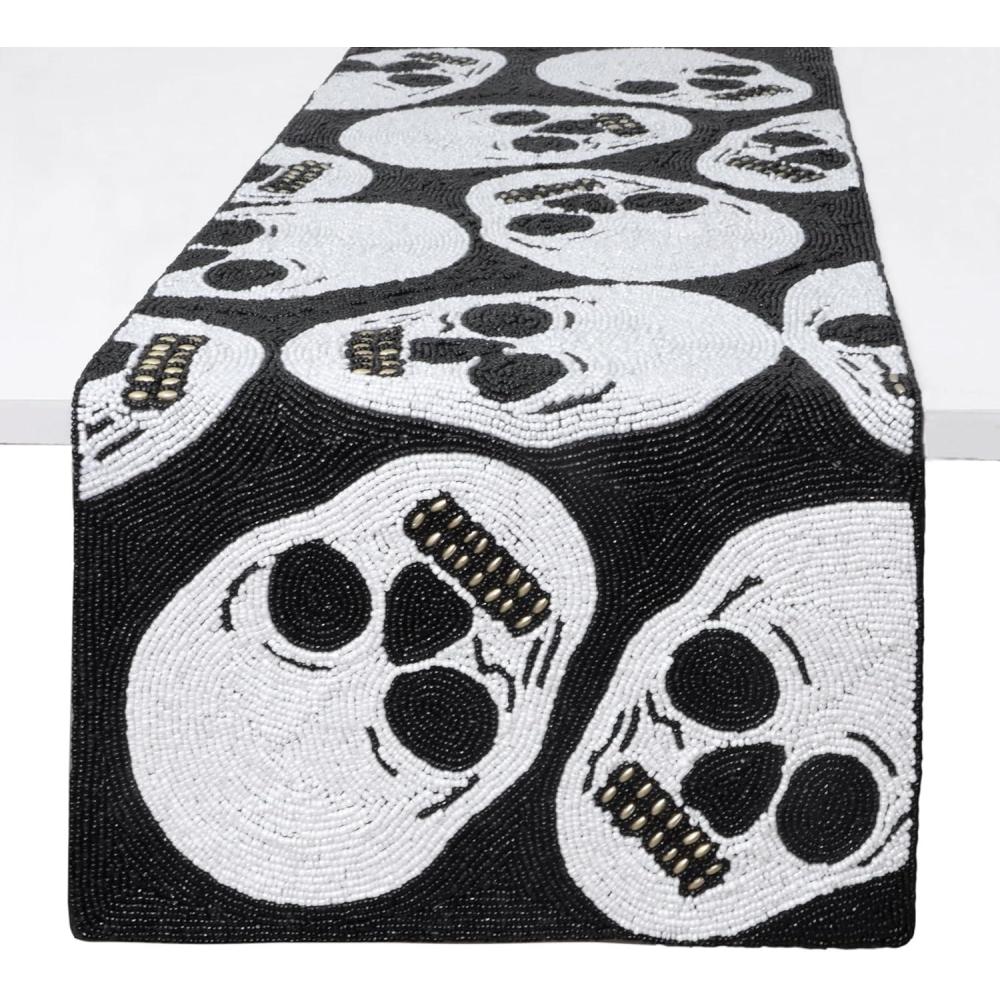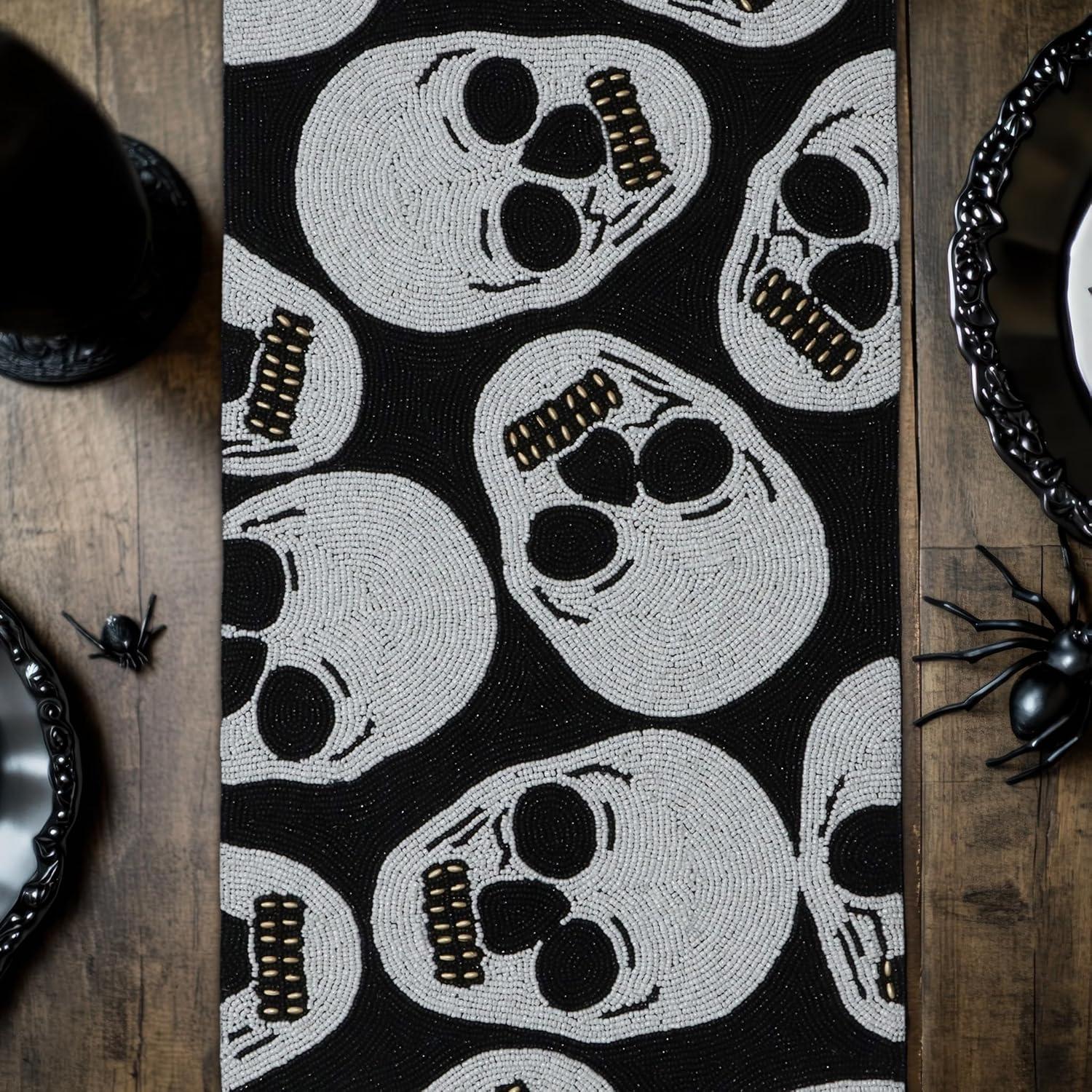 COTTON CRAFT Christmas Beaded Table Runner – Poinsettia – Xmas Holiday Harvest Autumn Fall Thanksgiving Celebration Festive Party Handmade Kitchen Dining Tabletop Décor Tablerunner – 13×36 – Red Green(Skull)