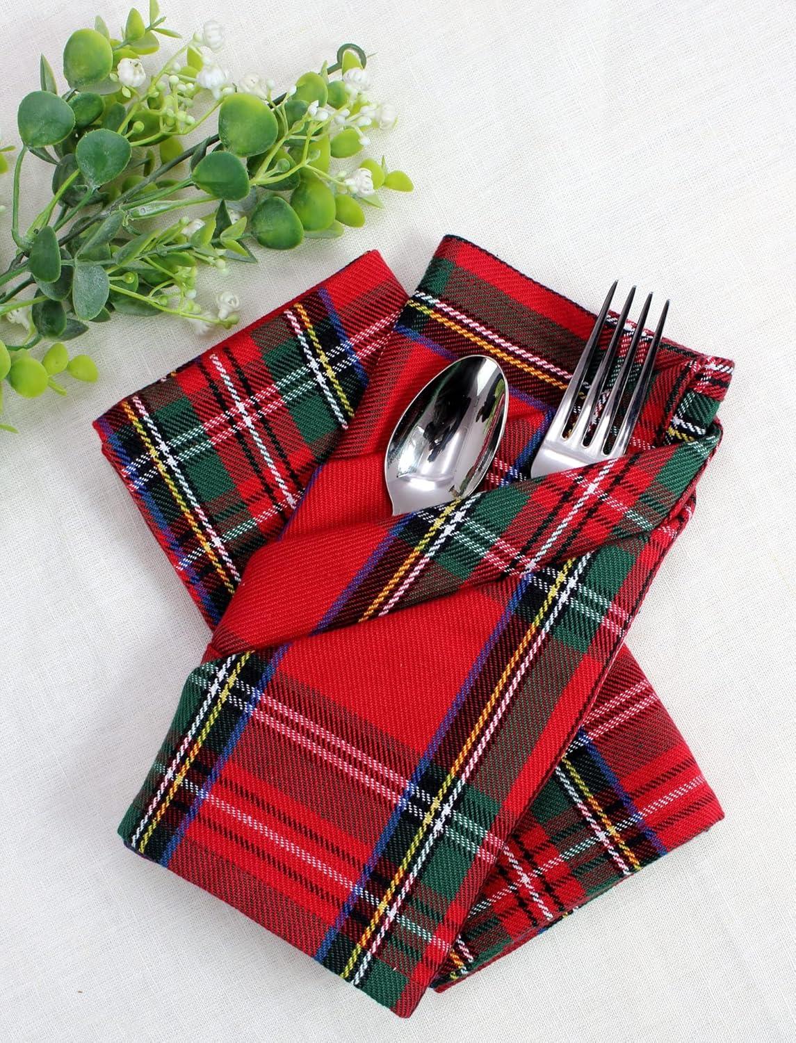 COTTON CRAFT Christmas Holiday Napkins -12 Pack – Cotton Cloth Table Napkins – Reusable Washable – Lunch Dinner Party Celebration Decorative Napkin Festive Gift Bag -17×17 White & Metallic Gold Stripe(Red Green Plaid)