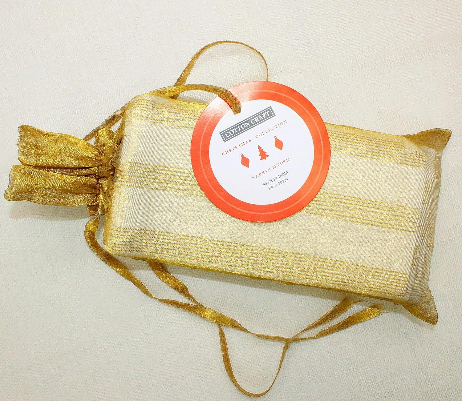 SET CONTENTS: Set includes twelve (12) COTTON CRAFT Cotton Lurex Dinner Napkins with Bonus Tissue gift bag , White Gold , each measuring 17 inches x 17 inches