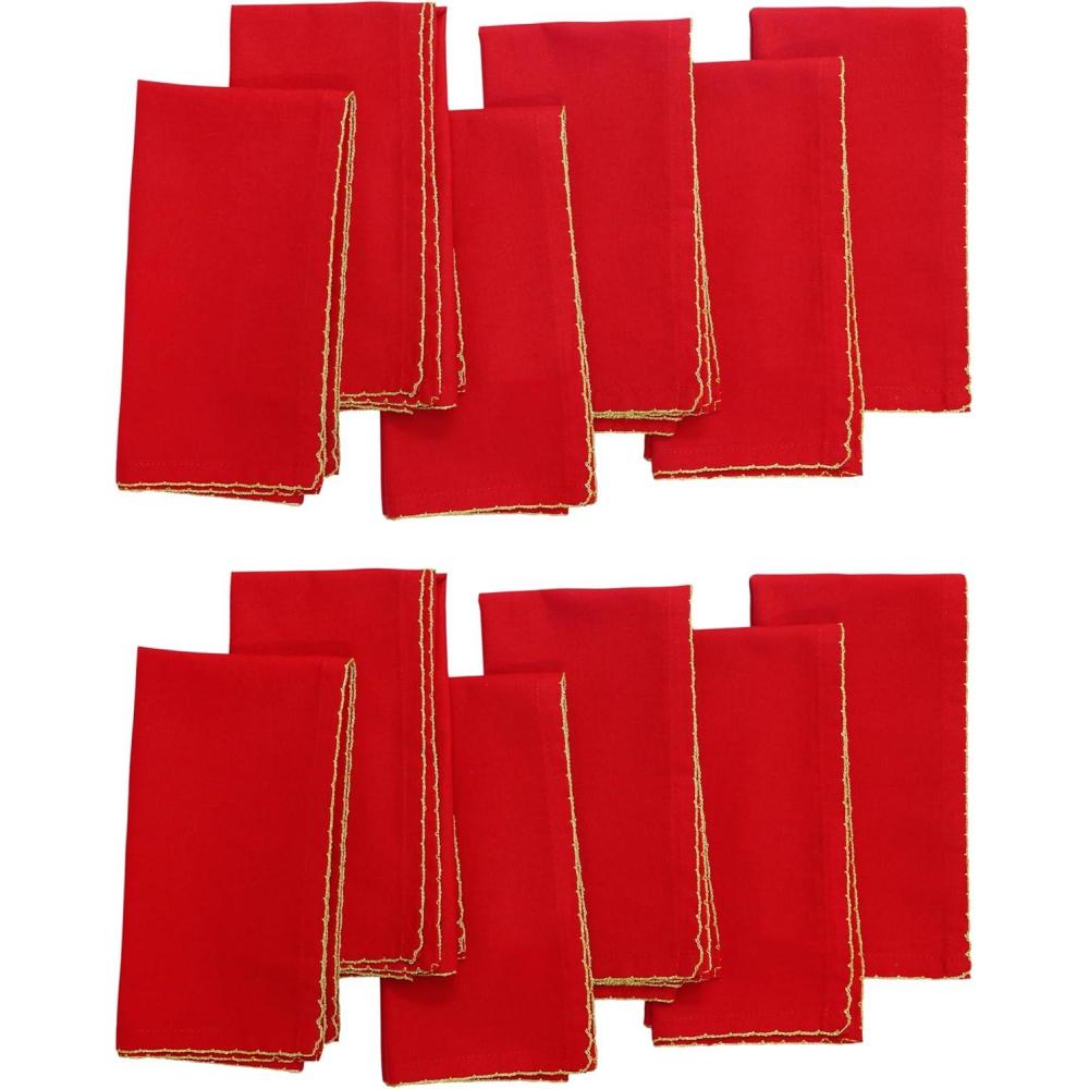 COTTON CRAFT Christmas Holiday Napkins -12 Pack – Cotton Cloth Table Napkins – Reusable Washable – Lunch Dinner Party Celebration Decorative Napkin Festive Gift Bag -17×17 White & Metallic Gold Stripe(Red Gold Lace)
