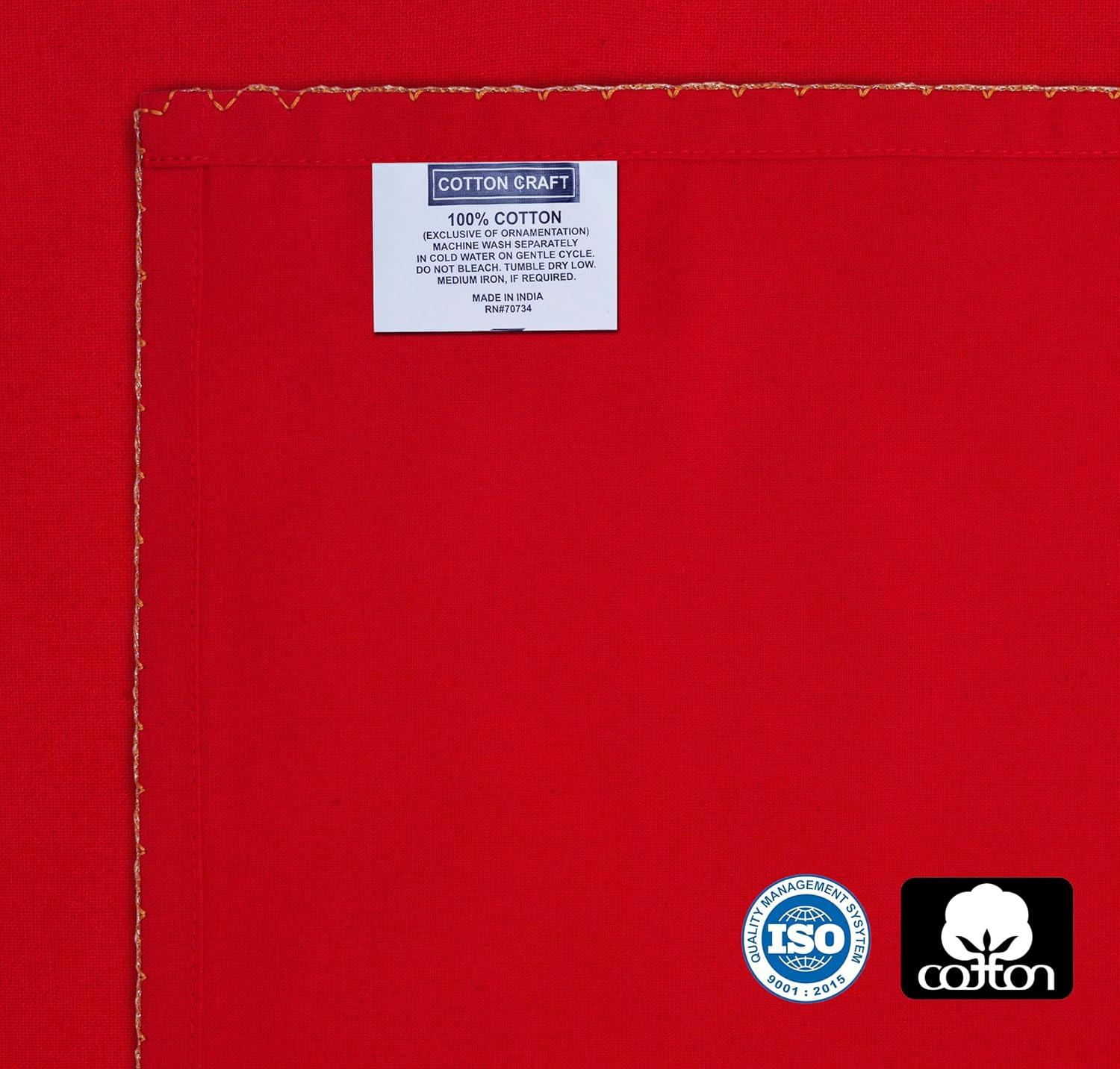SET CONTENTS: Each set includes twelve (12) COTTON CRAFT Classic Pure Cotton Dinner Napkins in Red, each measuring 18 inches x 18 inches