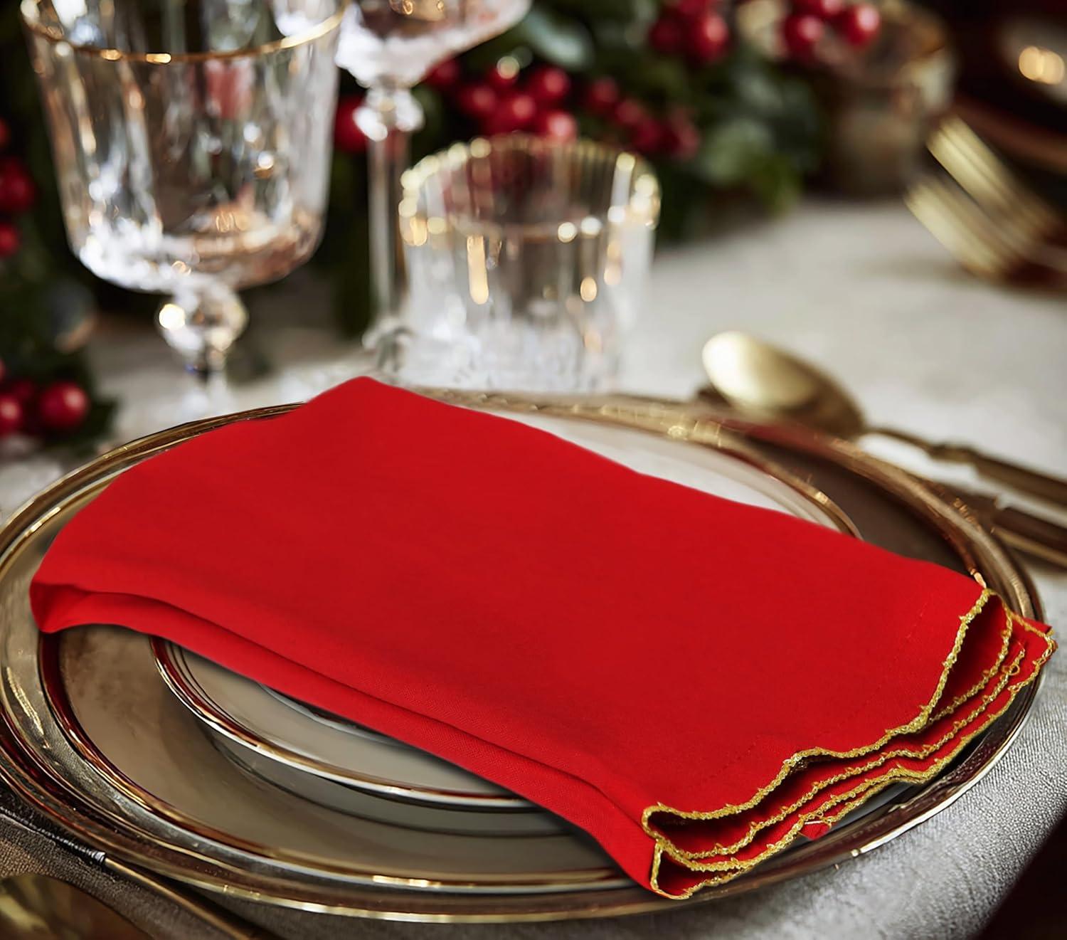 COTTON CRAFT Christmas Red Napkins -12 Pack 100% Cotton Dinner Napkins – All Year Xmas Fall Thanksgiving Celebration Party Gift Holiday Table Napkin – Soft Washable Reusable Cloth Napkin -18×18(Red Gold Lace)