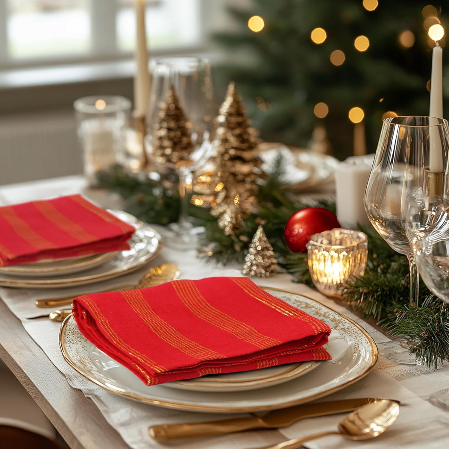 COTTON CRAFT Christmas Red Napkins -12 Pack 100% Cotton Dinner Napkins – All Year Xmas Fall Thanksgiving Celebration Party Gift Holiday Table Napkin – Soft Washable Reusable Cloth Napkin -18×18(Red Gold Stripes)