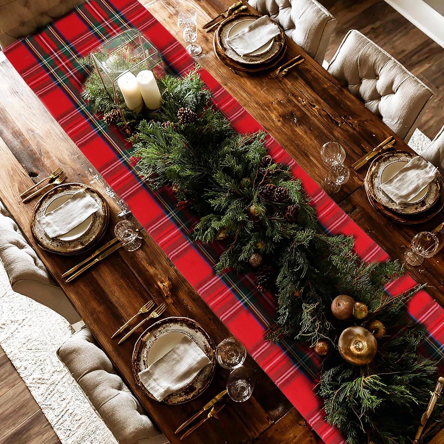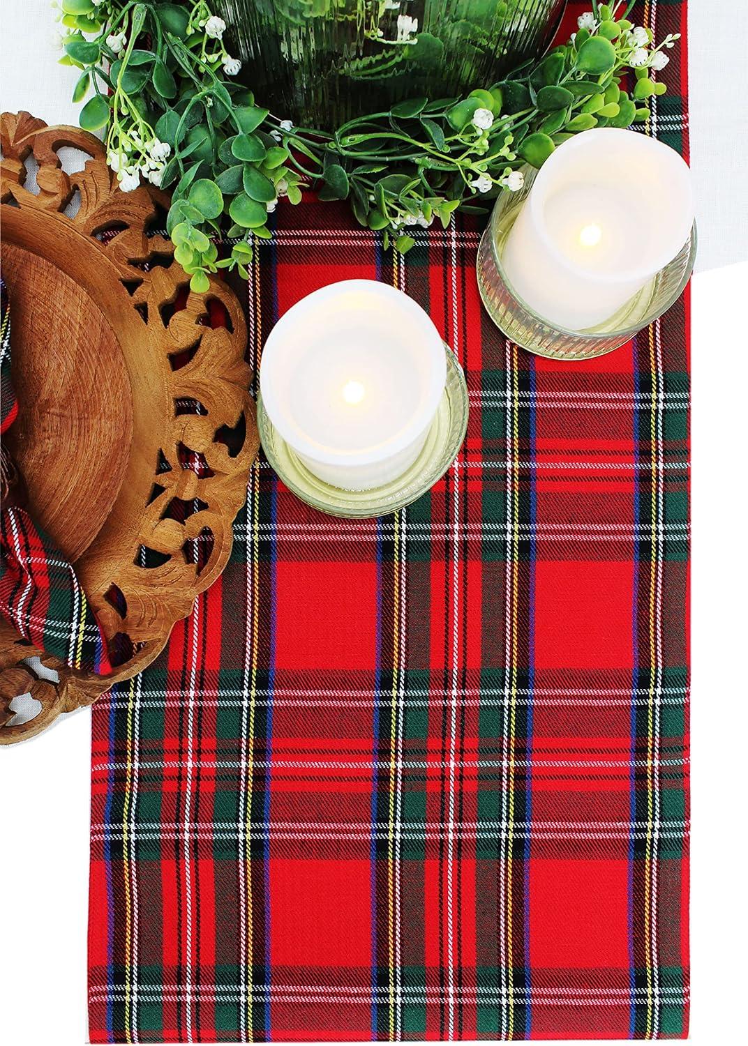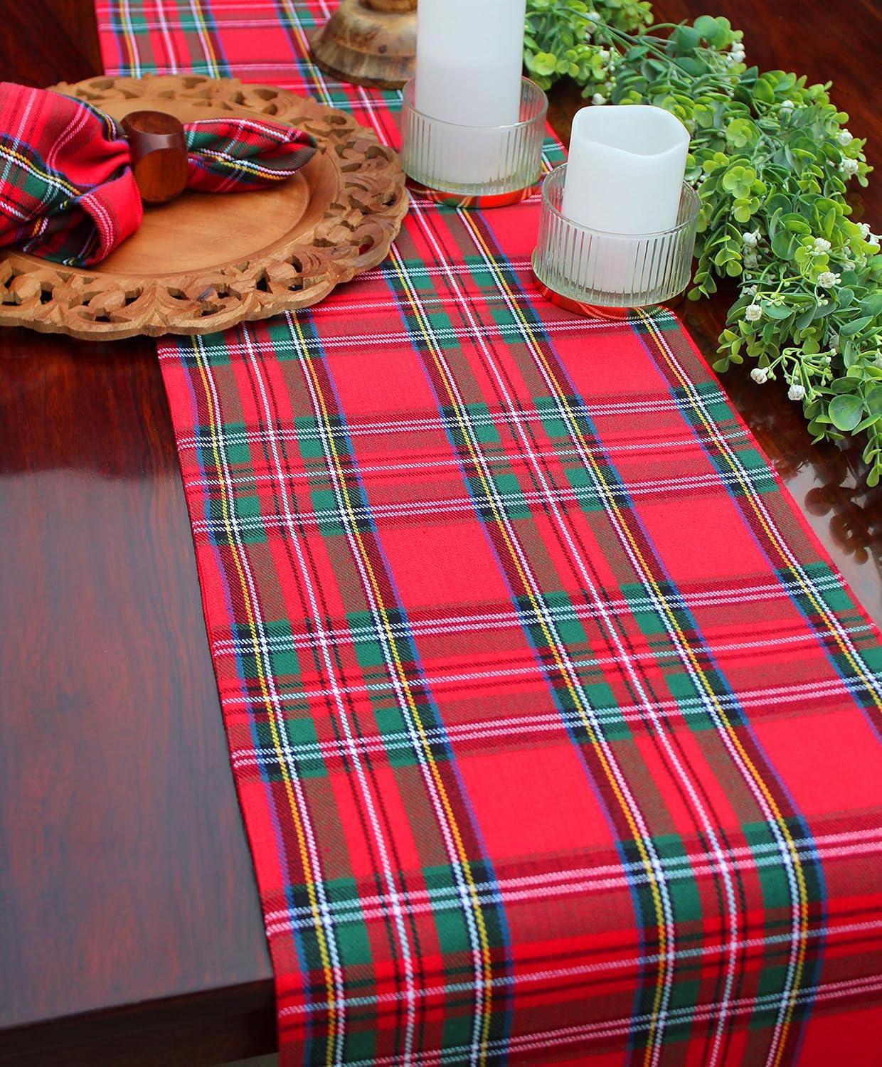 COTTON CRAFT Christmas Table Runner – Xmas Tartan Plaid Festive Tablerunner – Pure Cotton Gingham Buffalo Check Reusable Decorative Holiday Party Celebration Table Décor – 13×72 Inch – Red Green Multi(Red Green Multi Plaid)