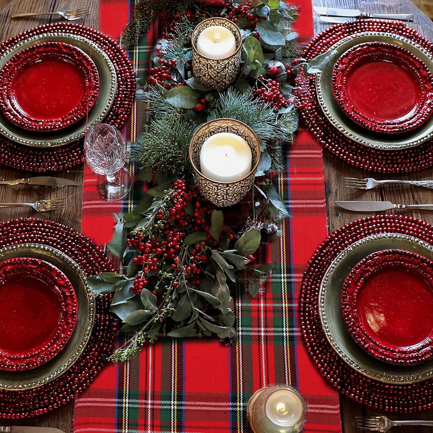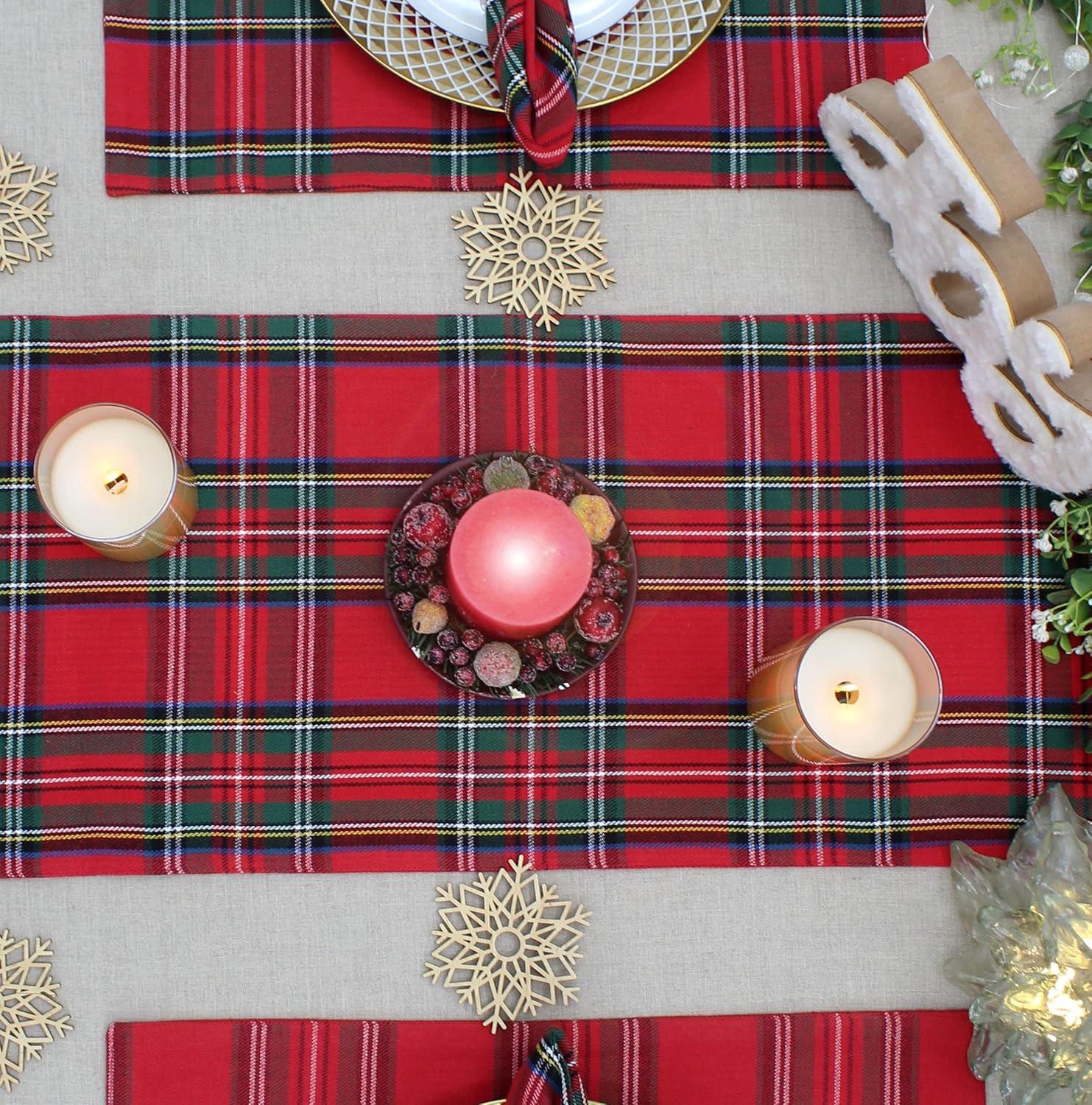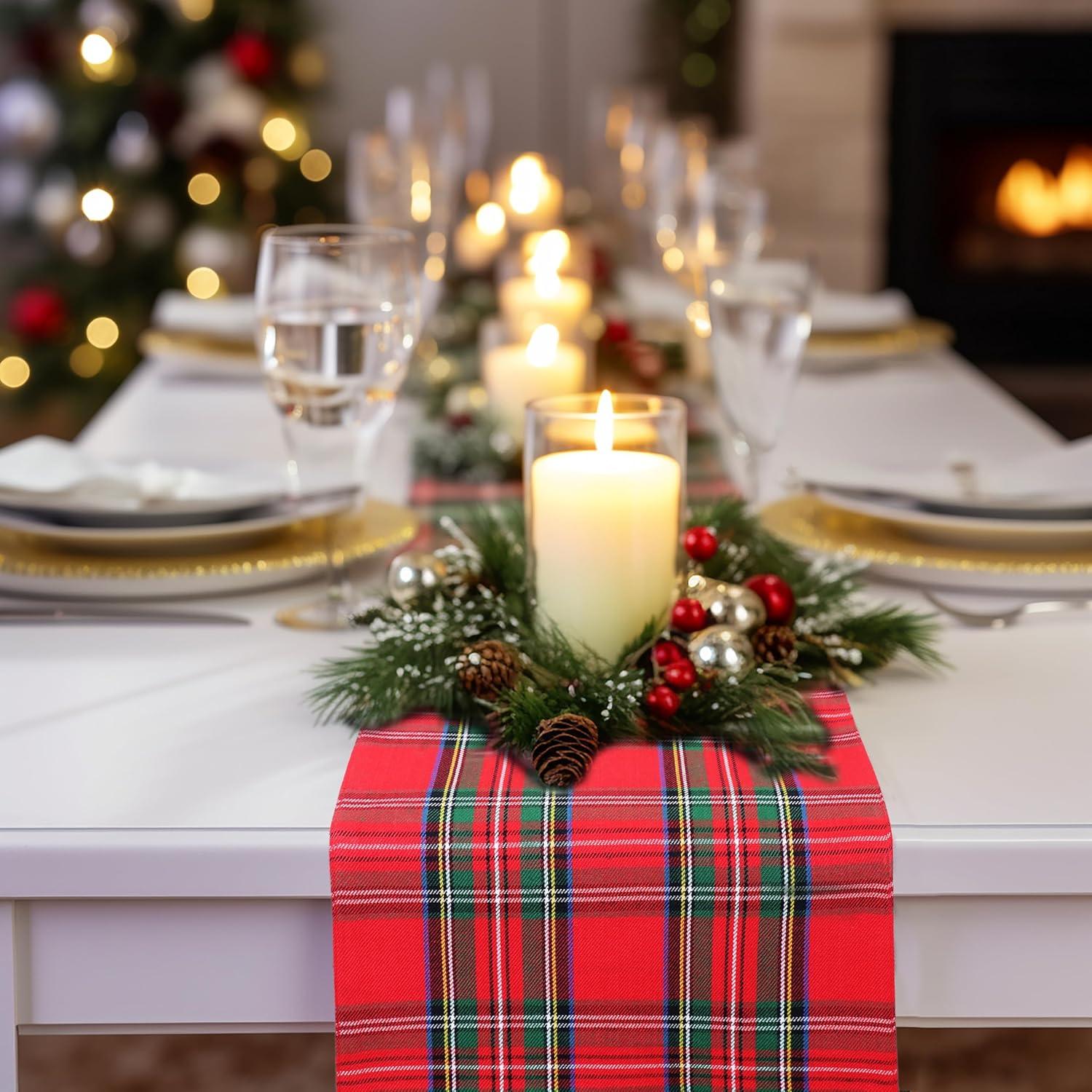 COTTON CRAFT Christmas Table Runner – Xmas Tartan Plaid Festive Tablerunner – Pure Cotton Gingham Buffalo Check Reusable Decorative Holiday Party Celebration Table Décor – 13×72 Inch – Red Green Multi(Red Green Multi Plaid)