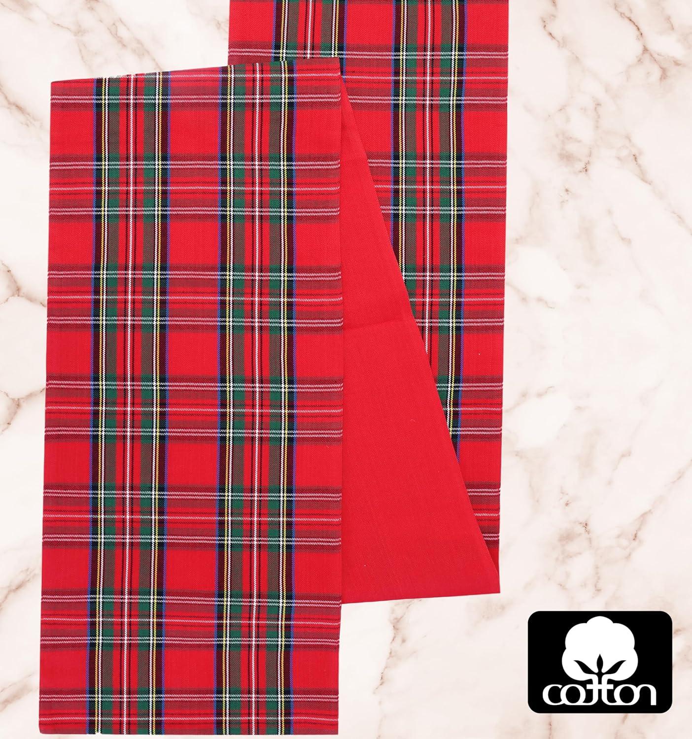 SET INCLUDES: One (1) COTTON CRAFT Gingham Buffalo Check Pure Cotton Table Runner in Red Green Multi, each measuring 13 inch x 72 inch