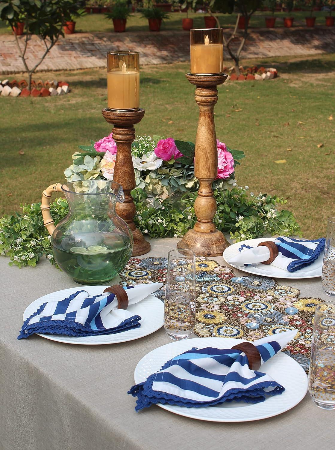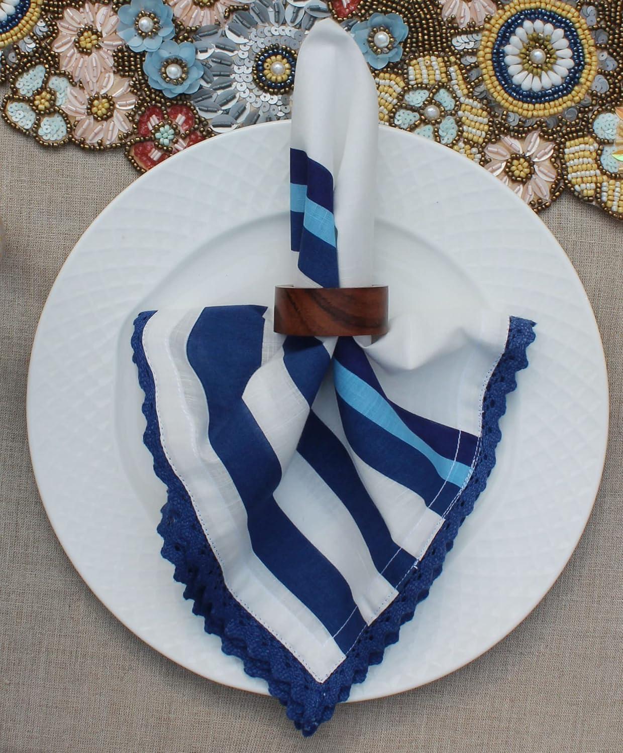 COTTON CRAFT Cloth Napkin – Set of 12 Pure Cotton Slub Harvest Orange Lace Trim Dinner Napkins – Fall Thanksgiving Xmas Holiday Table Celebration Festive Party Thick Washable Reusable Napkin -18×18(Lace – Blue)