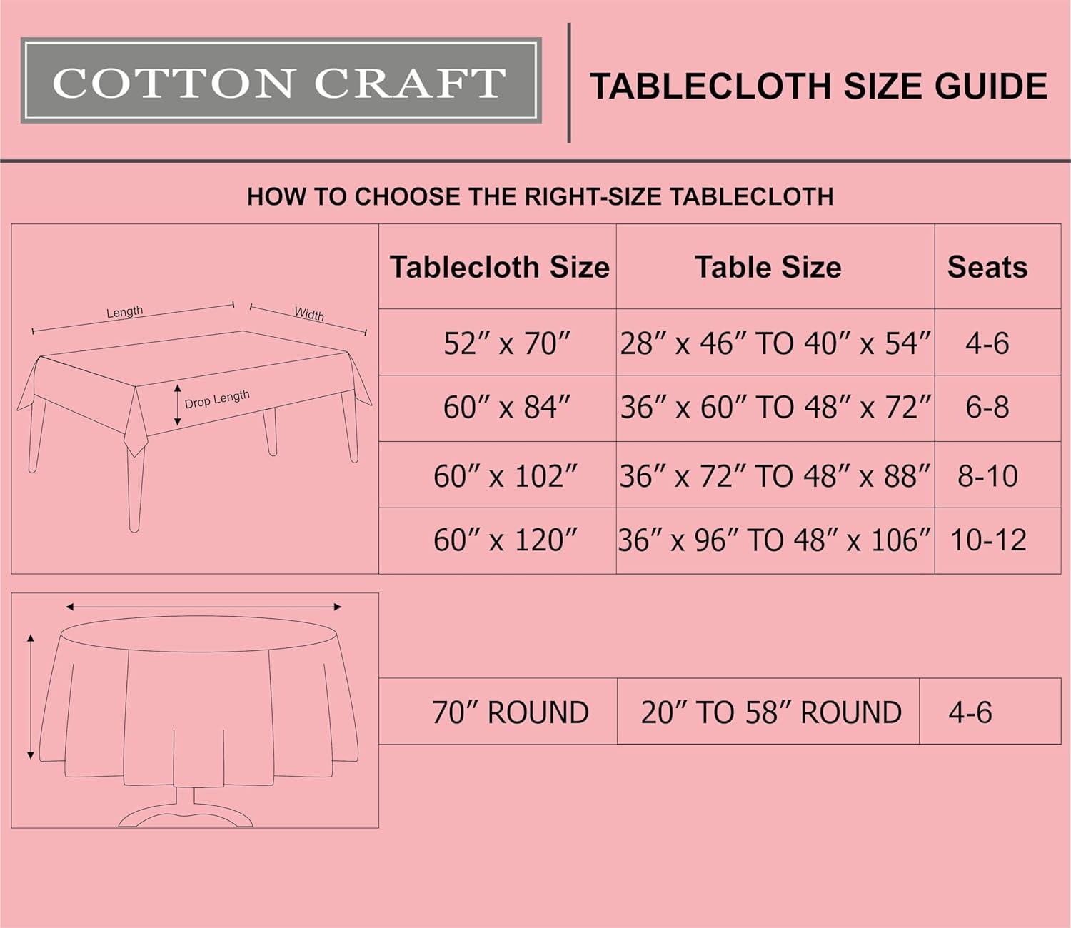 CARE INSTRUCTIONS: All COTTON CRAFT table cloths are machine washable and dryer safe