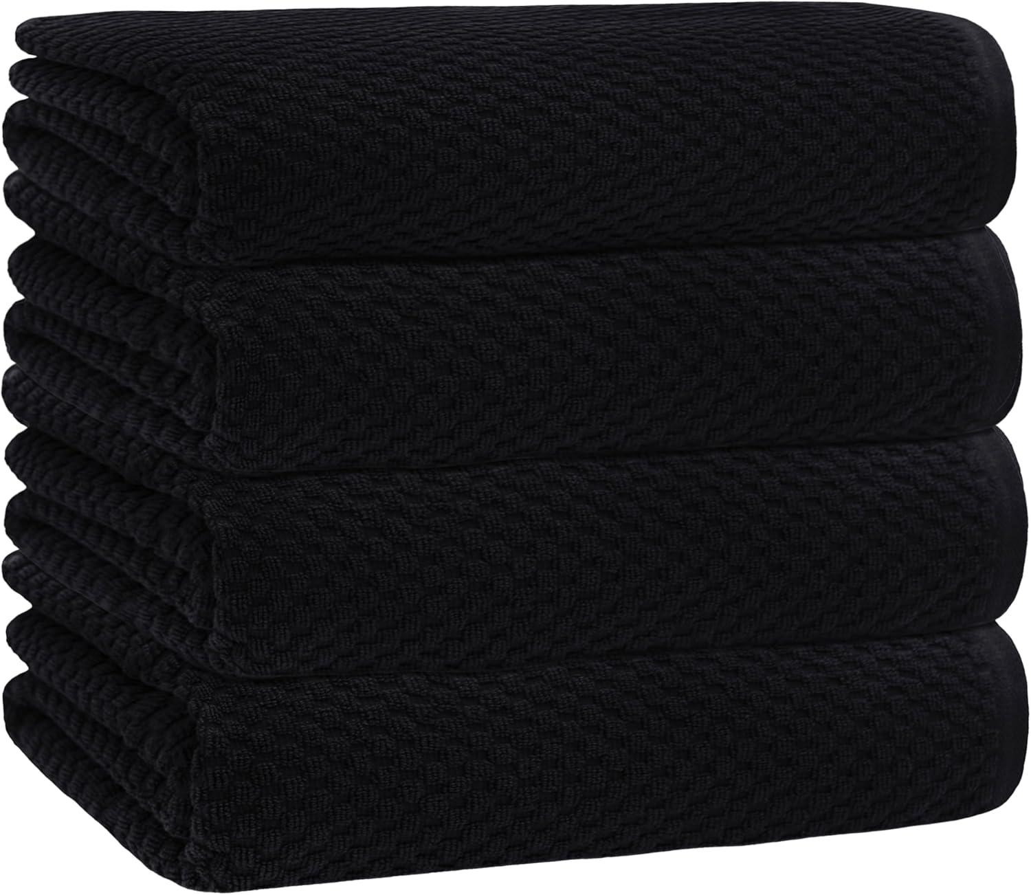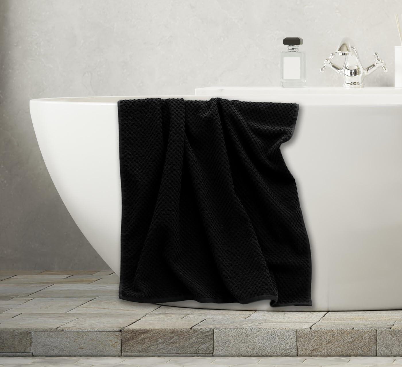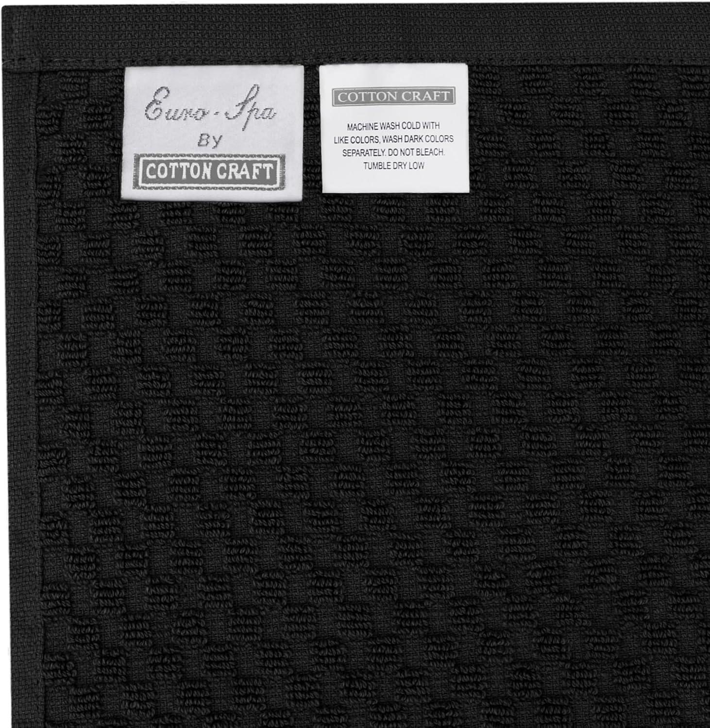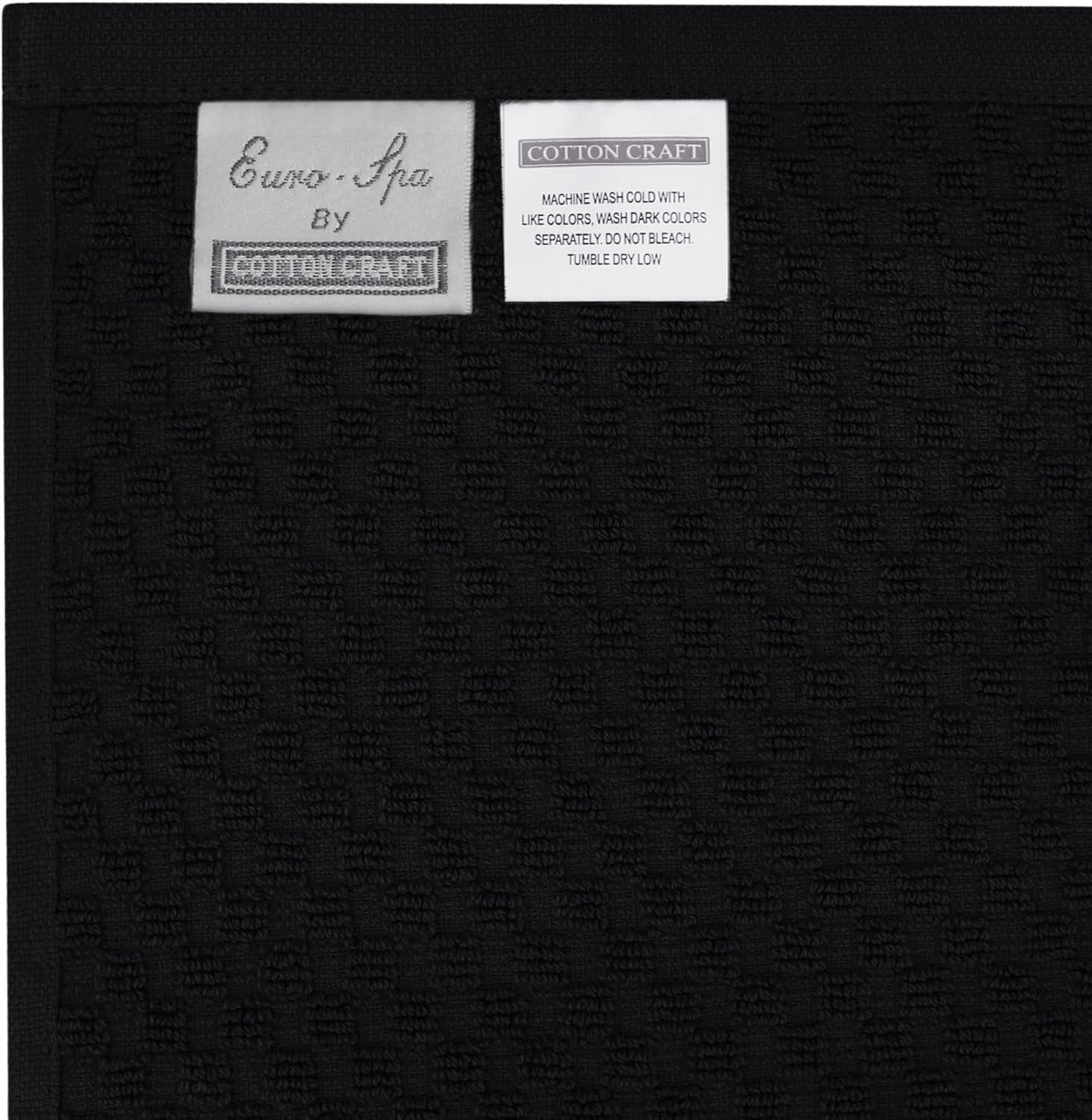 COTTON CRAFT- Euro Spa Set of 4 Luxury Waffle Weave Bath Towels, Oversized Pure Ringspun Cotton, 30 inch x 56 inch, White(Black)