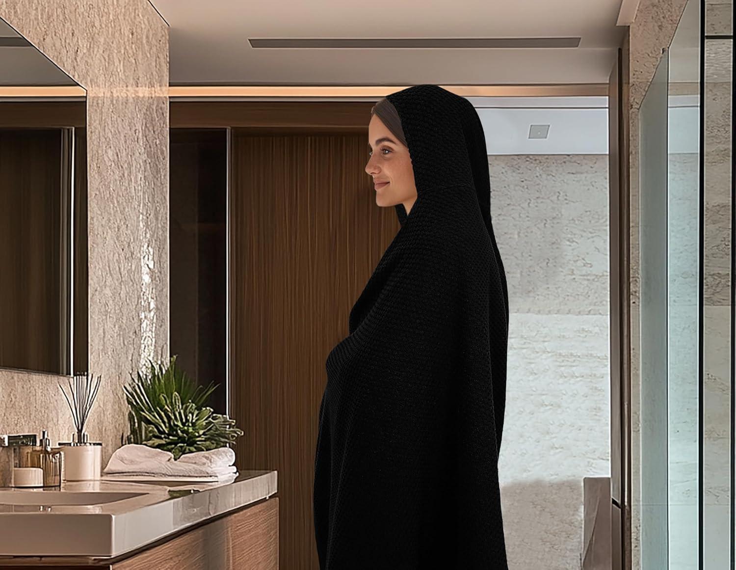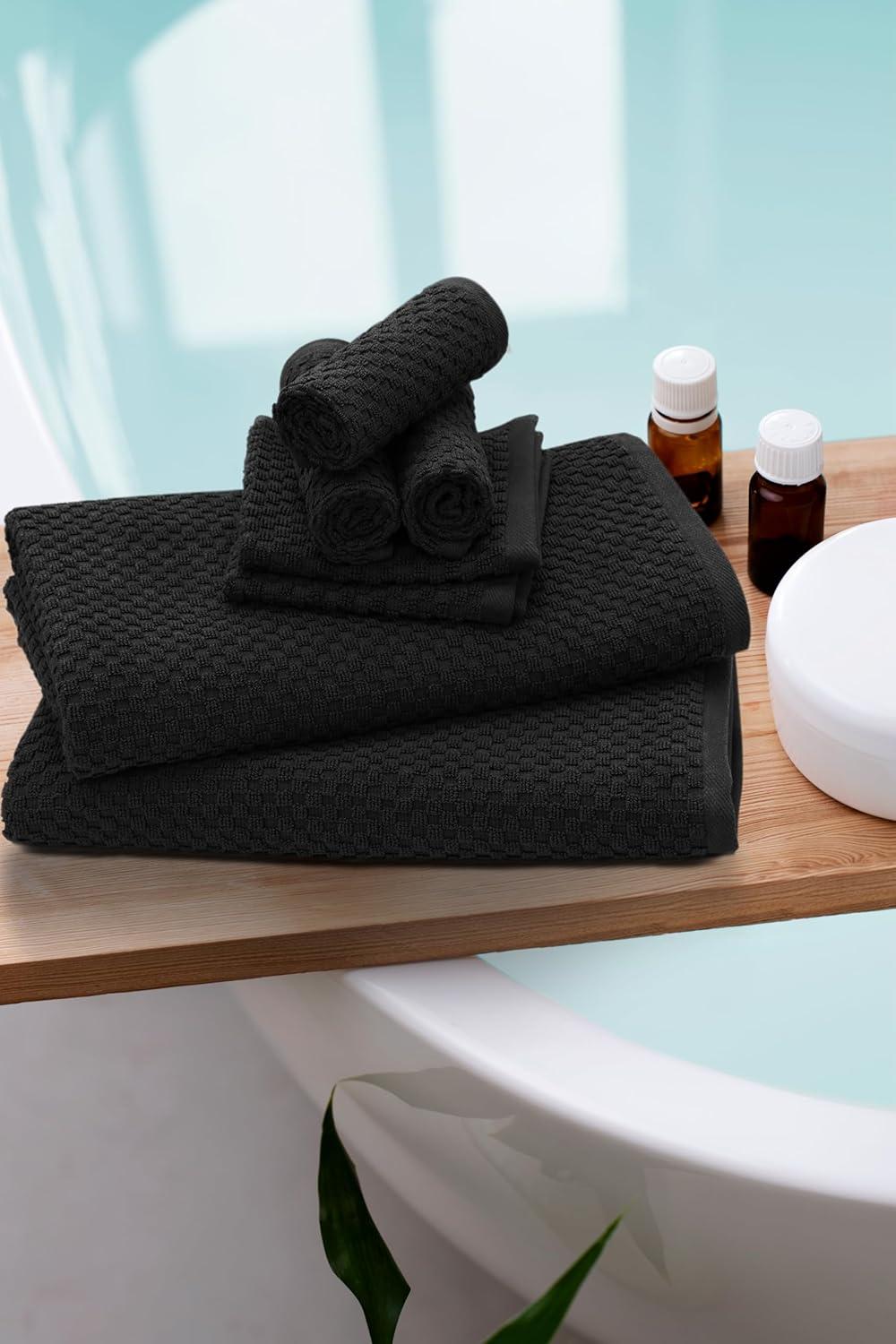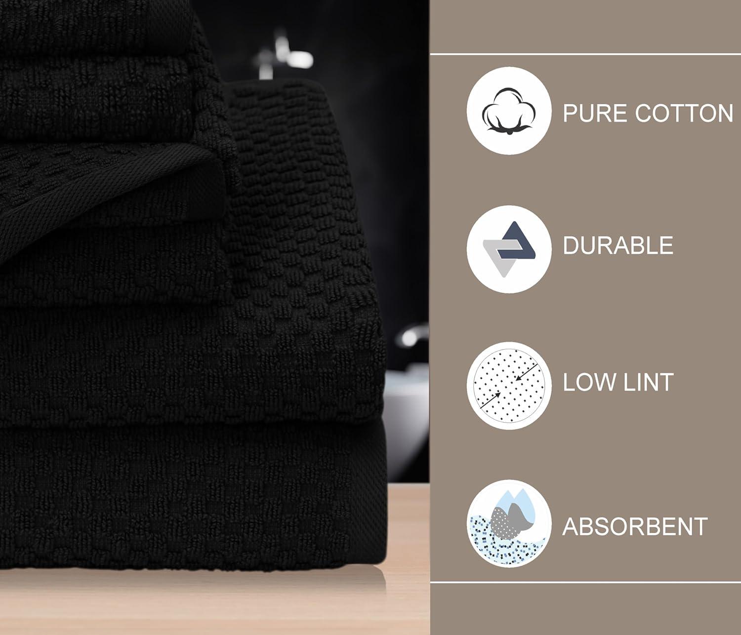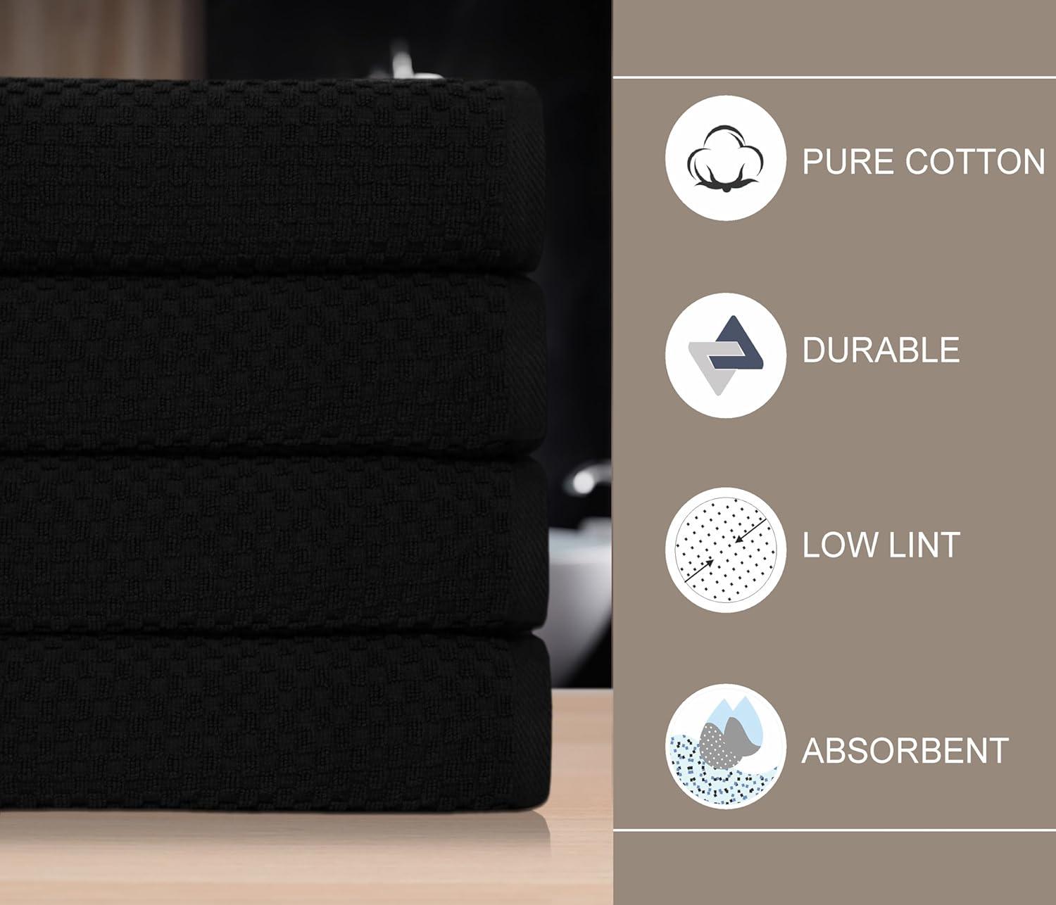 COTTON CRAFT- Euro Spa Set of 4 Luxury Waffle Weave Bath Towels, Oversized Pure Ringspun Cotton, 30 inch x 56 inch, White(Black)