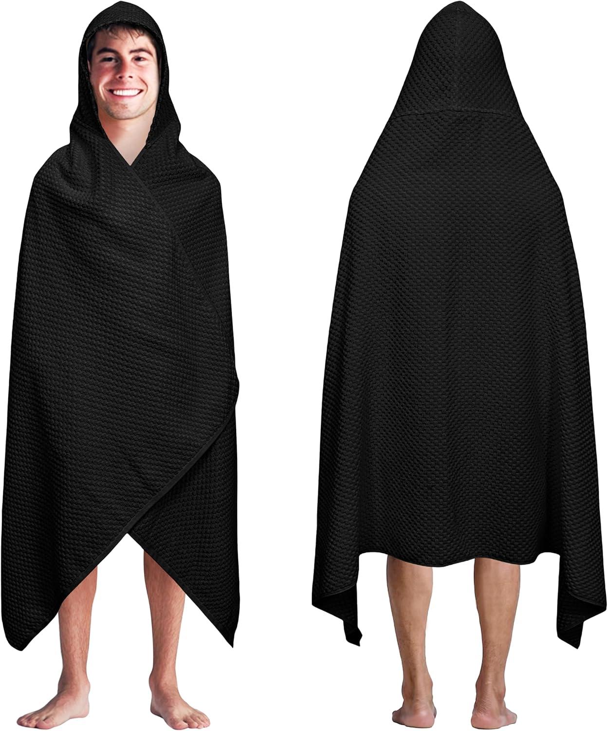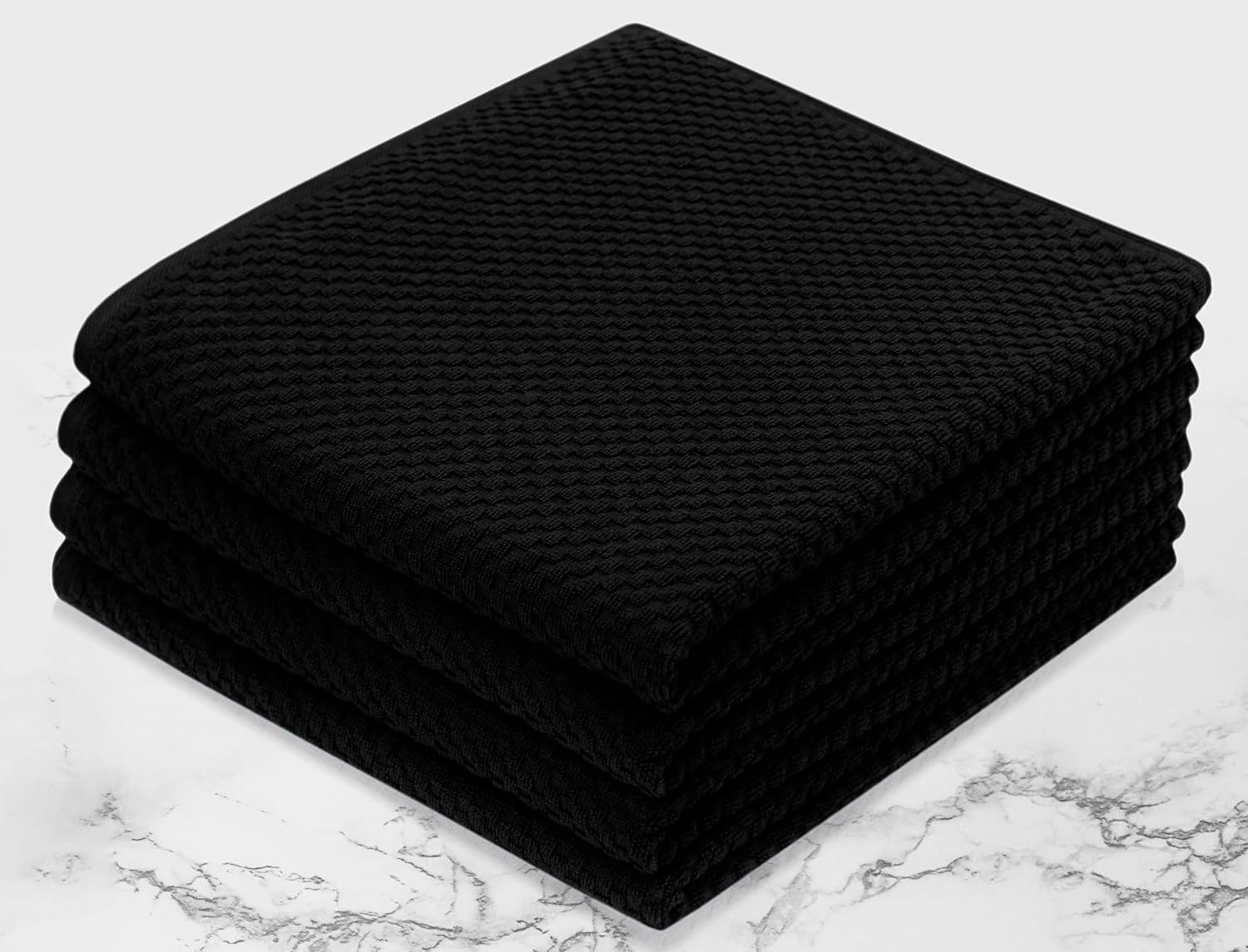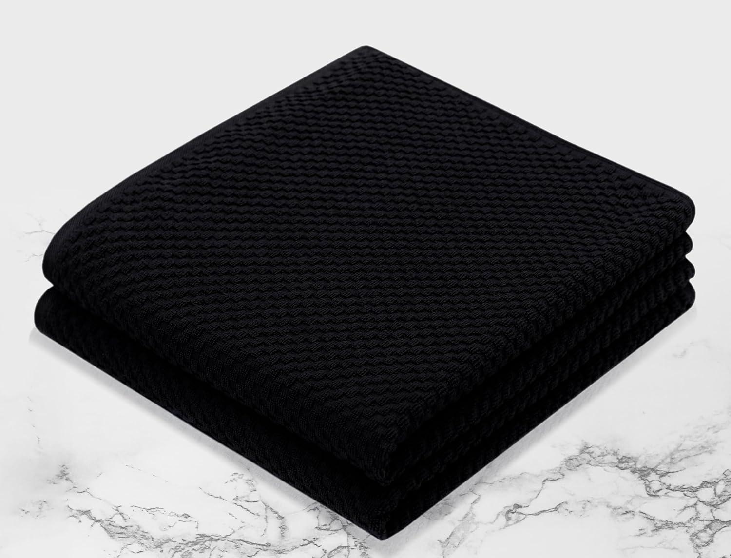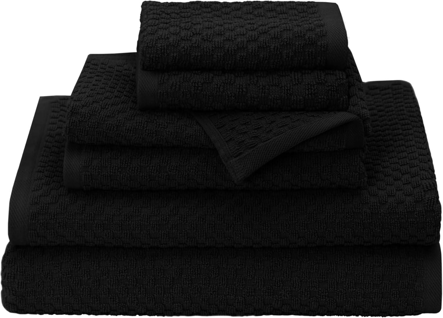 COTTON CRAFT- Euro Spa Set of 4 Luxury Waffle Weave Bath Towels, Oversized Pure Ringspun Cotton, 30 inch x 56 inch, White(Black)
