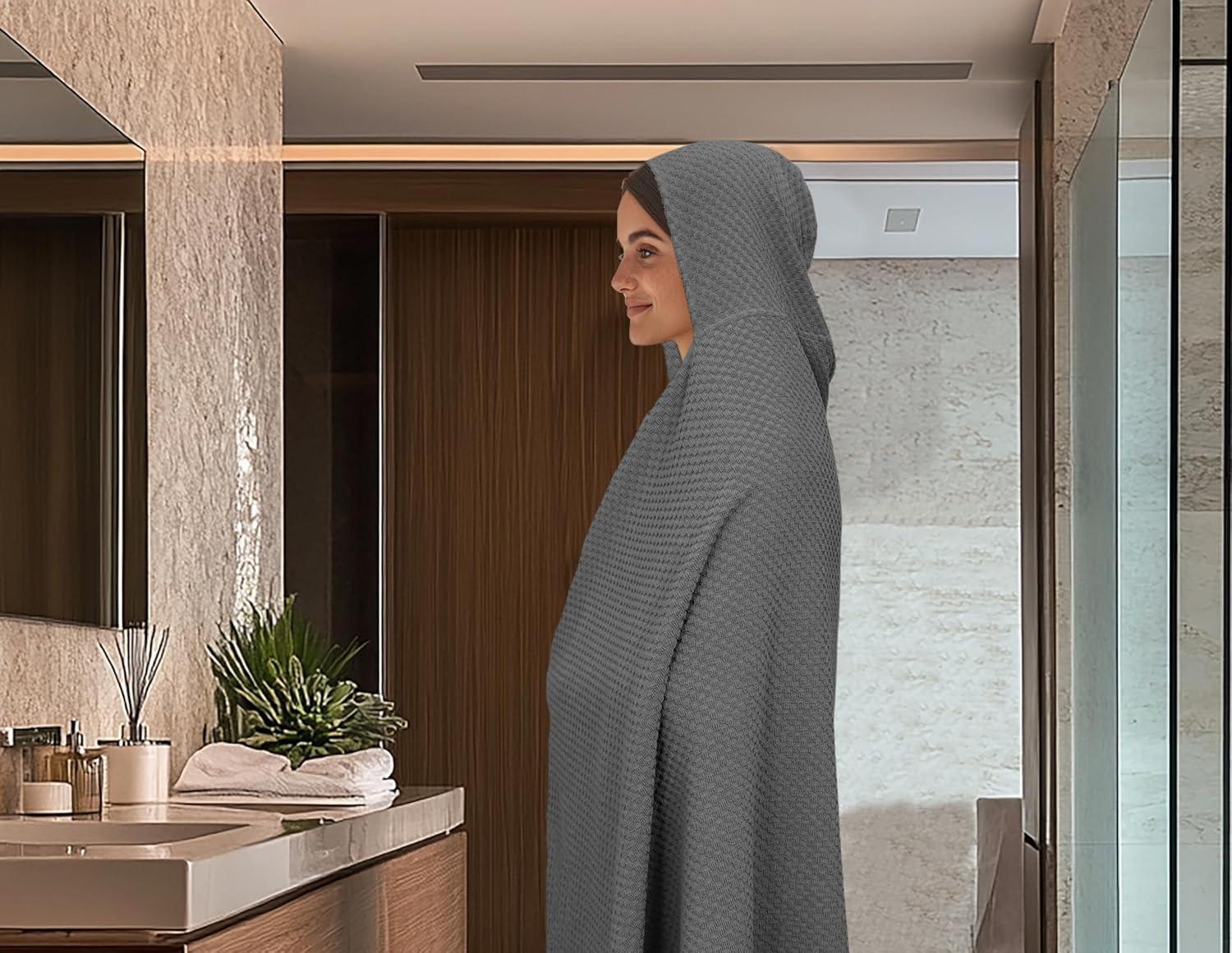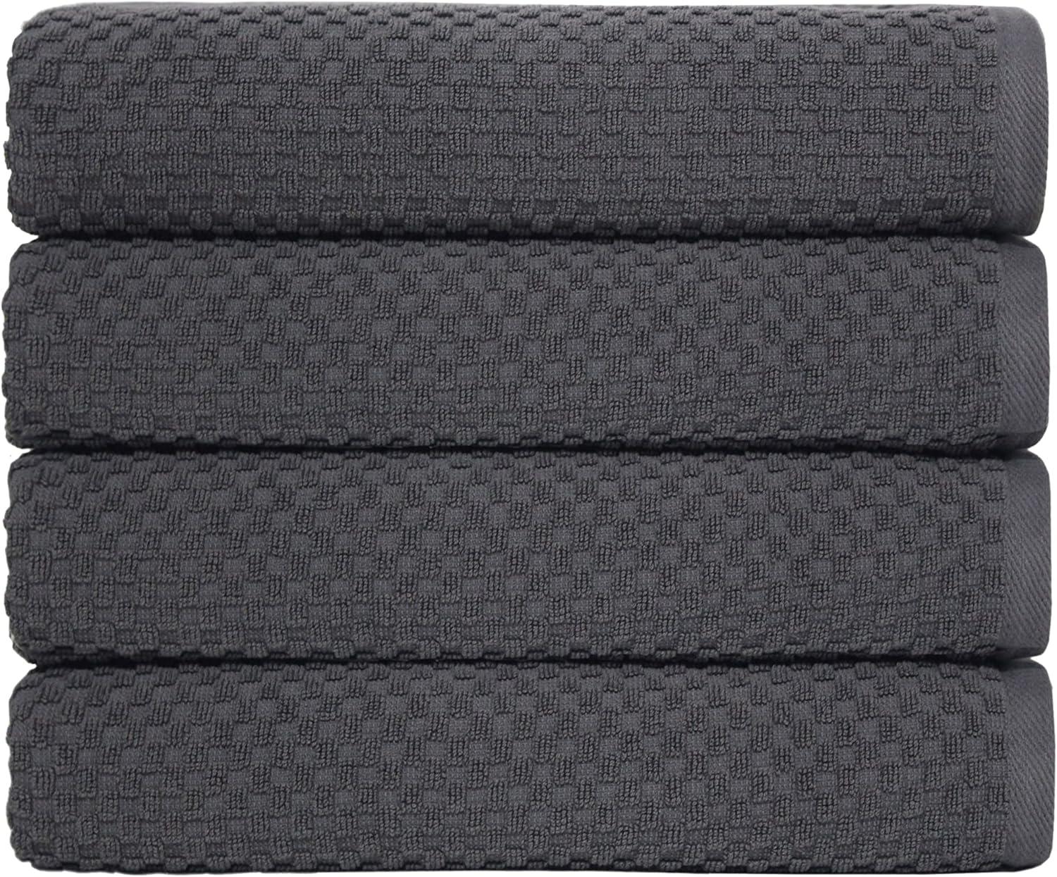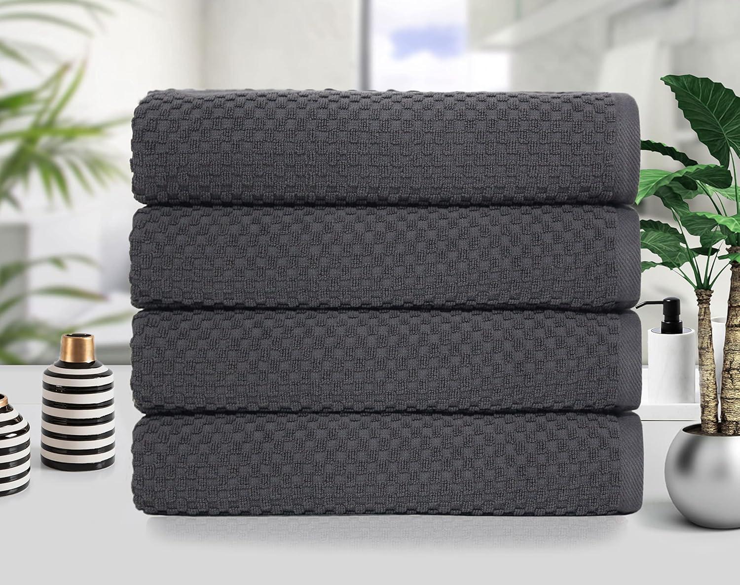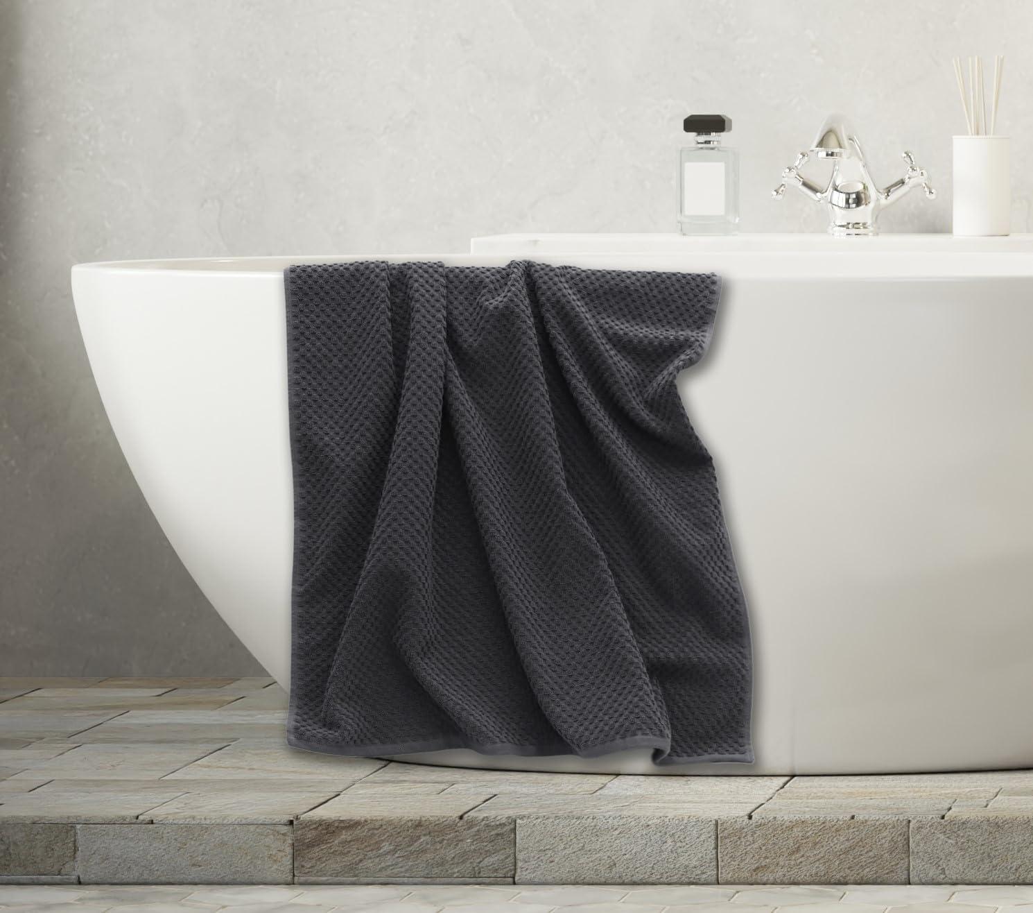 COTTON CRAFT- Euro Spa Set of 4 Luxury Waffle Weave Bath Towels, Oversized Pure Ringspun Cotton, 30 inch x 56 inch, White(Grey)